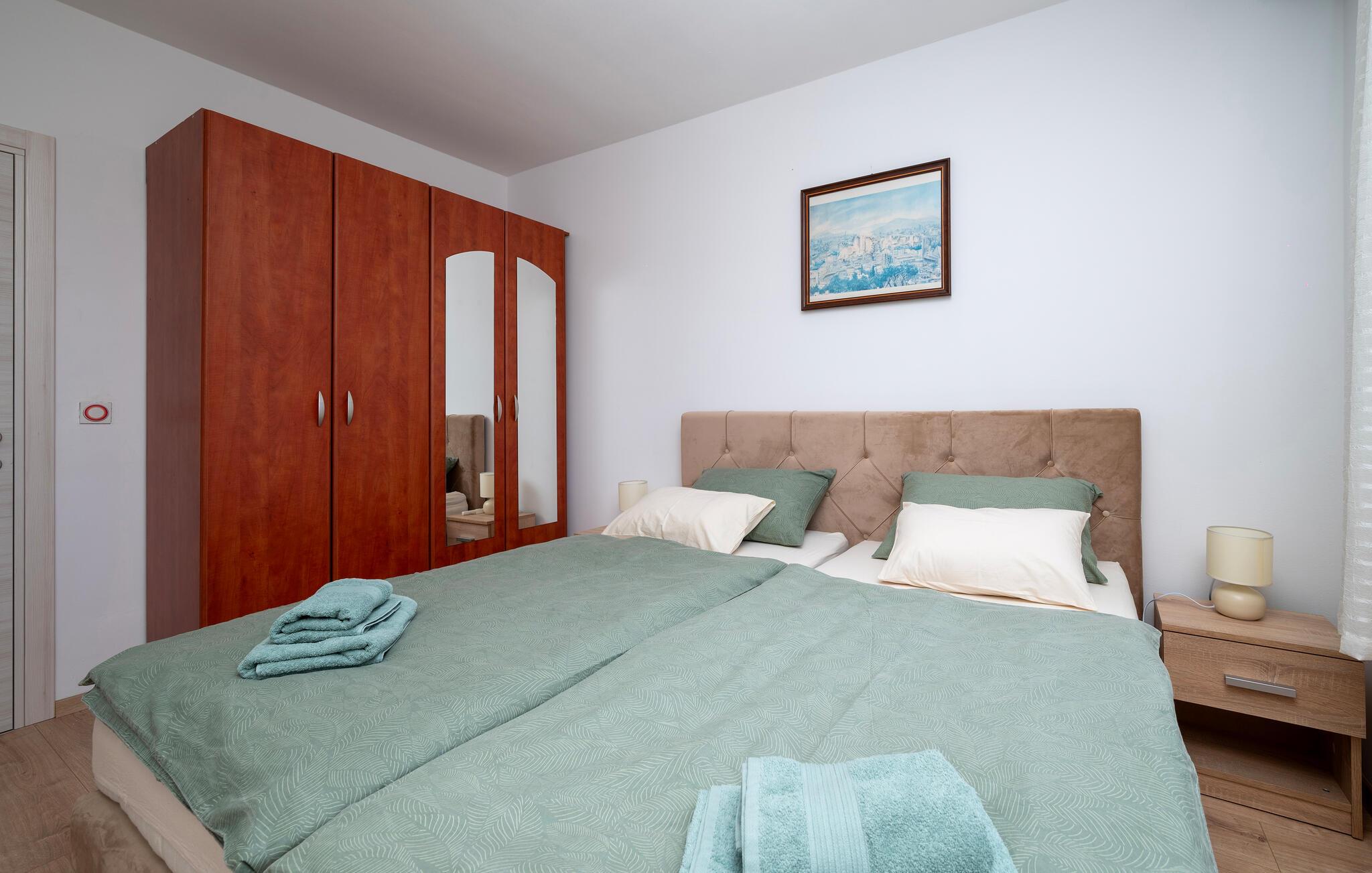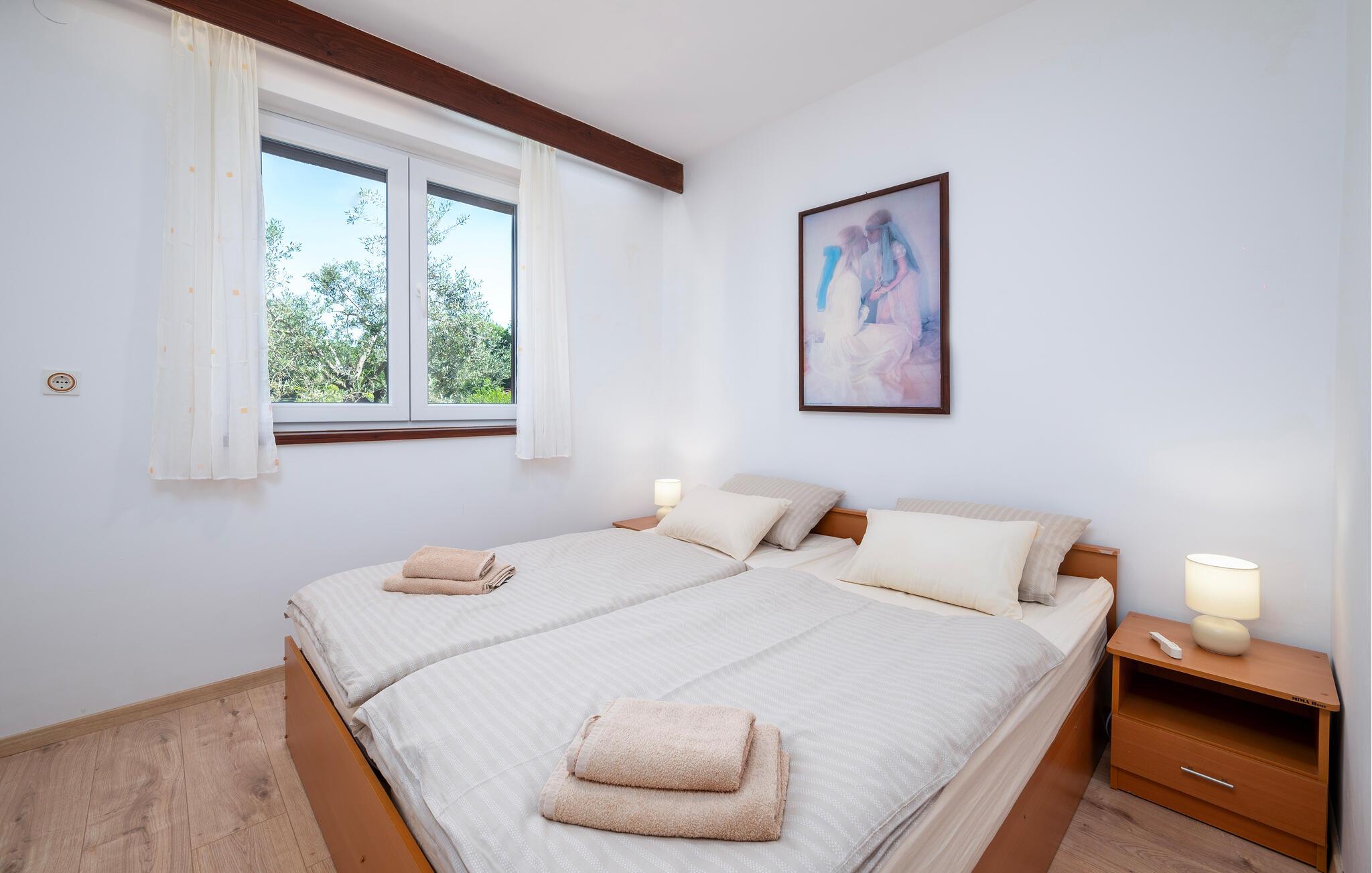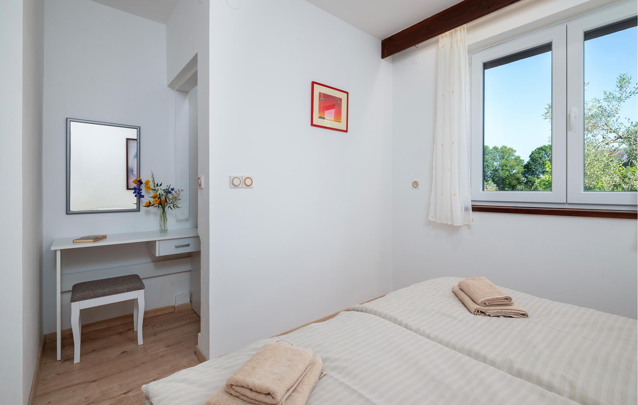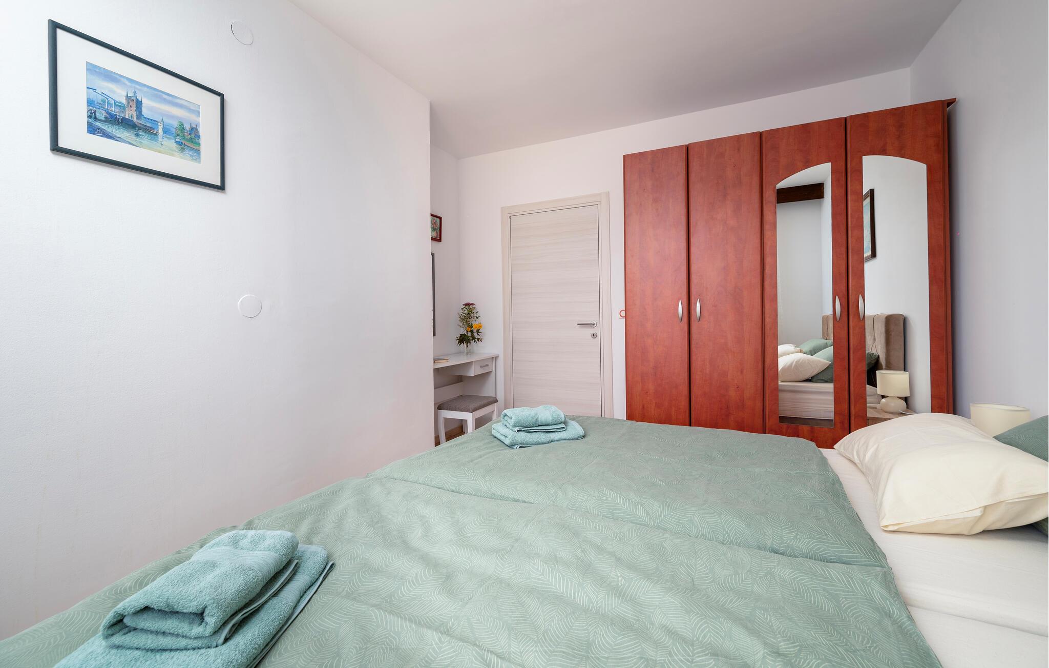 Denne ferielejlighed ligger i et familiehus i Valbandon, nær Fazana. Den velindrettede feriebolig har alle de bekvemmeligheder, I kan ønske jer til jeres ferie. Find ro i soveværelserne og brug stuen som lejlighedens hjerte, hvor I kan samles om at lave mad, nyde måltiderne og slappe af.