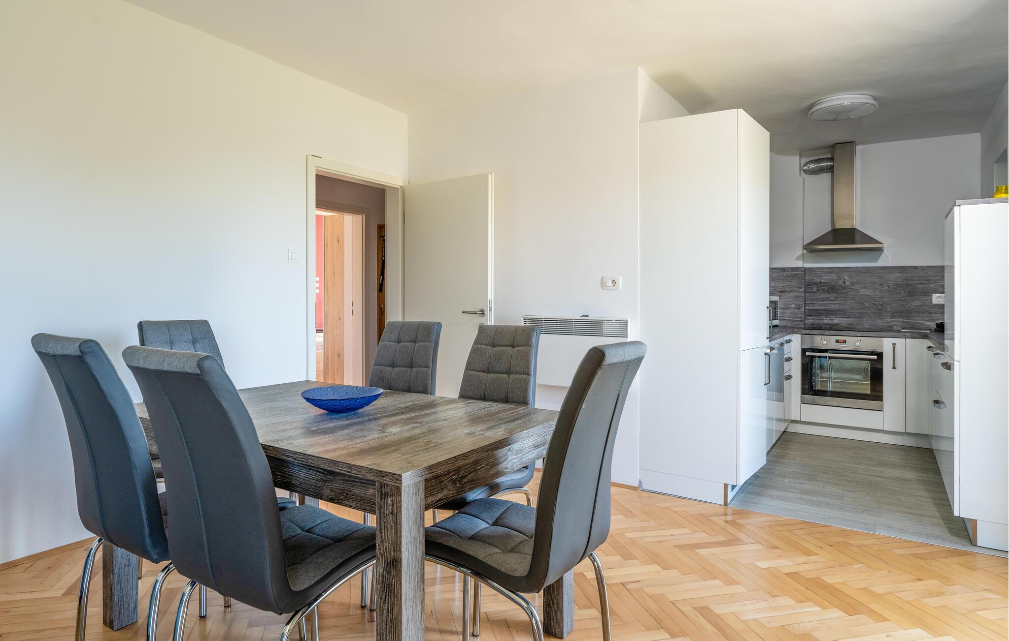 I denne smagfuldt indrettede ferielejlighed i Fazana kan I forvente en afslappet og moderne atmosfære, der straks giver jer en følelse af at være hjemme. De lyse rum og den venlige indretning skaber den perfekte stemning til at slappe af efter en lang dag med oplevelser. Nyd den friske luft på jeres egen balkon med havudsigt, eller slap af på terrassen med pergola, hvor komfortable møbler indbyder til hyggelige stunder i det fri. Her finder I alt, hvad der skal til for en vellykket familieferie.