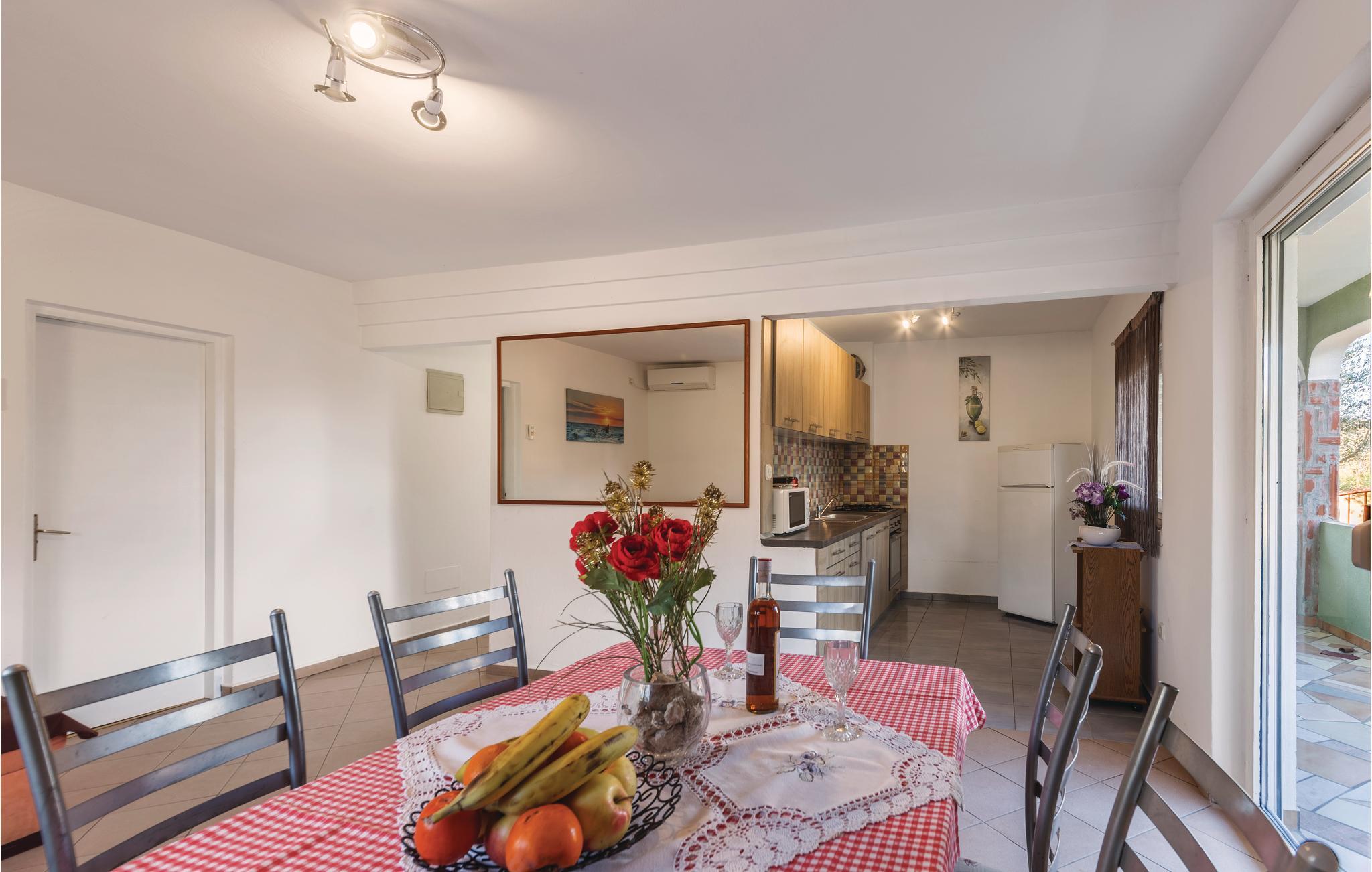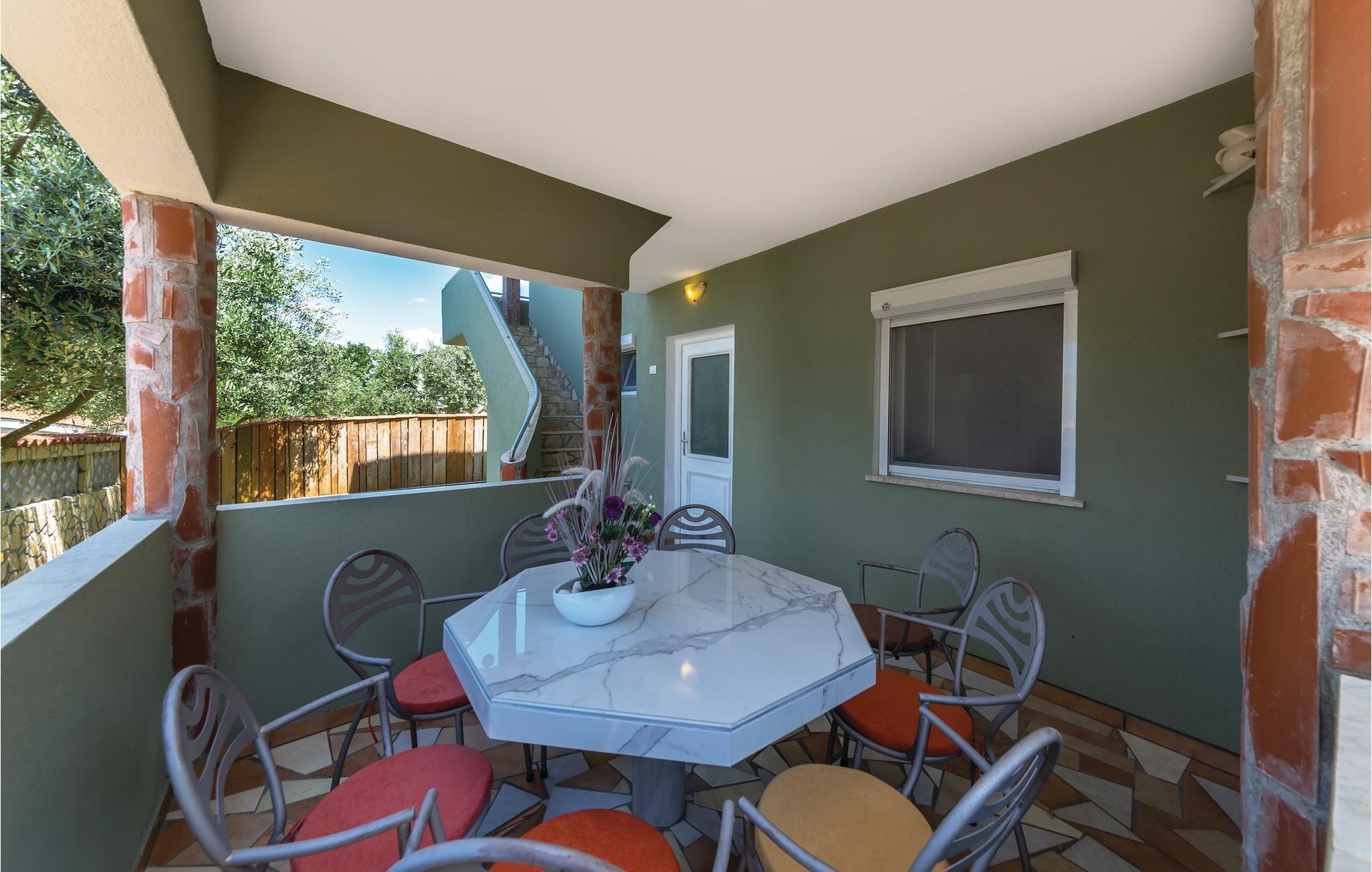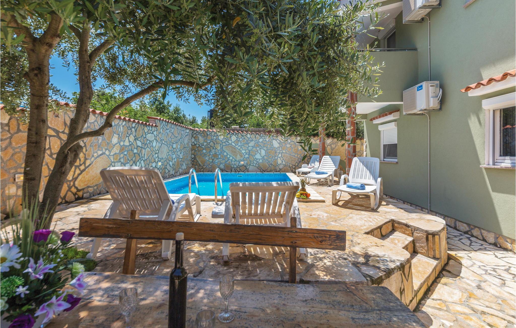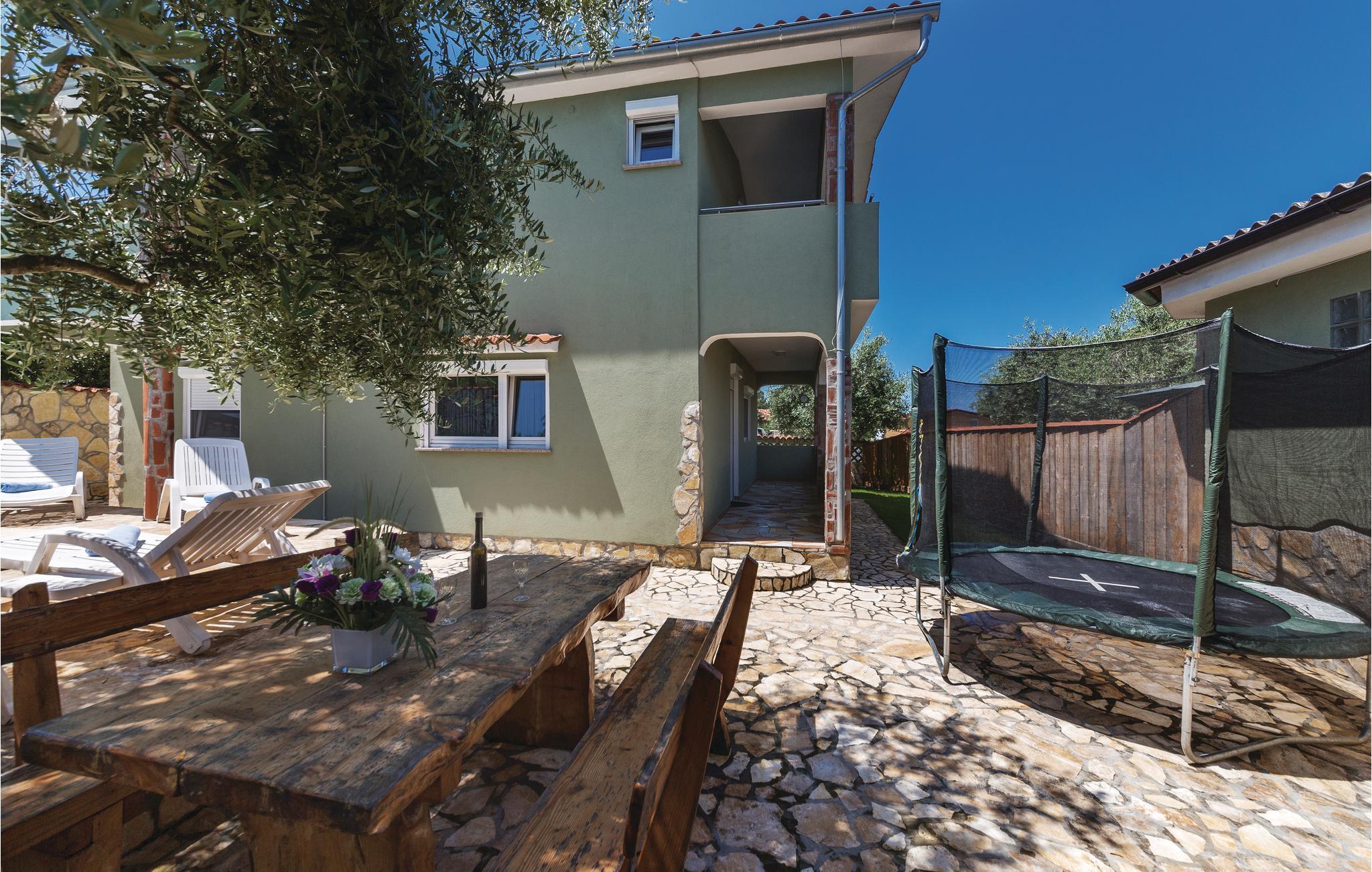Dette feriehus ligger i den lille fredelige by Peroj. Der er en separat indgang til 1. sal, hvor der er to soveværelser og et badeværelse. I stueplan er der to soveværelser, køkken/stue og badeværelse, på første sal to soveværelser og et badeværelse. På den indhegnede grund med oliventræer, er der også en swimmingpool og en grill. Fra terrassen på første sal er der delvis udsigt ud over havet, hvor I kan drikke en kop kaffe i skønne mediterrane omgivelser. I bor kun få minutter fra stranden med strandbarer. Vi anbefaler jer at besøge den populære fiskerby Fazana og nationalparken Brijuni.