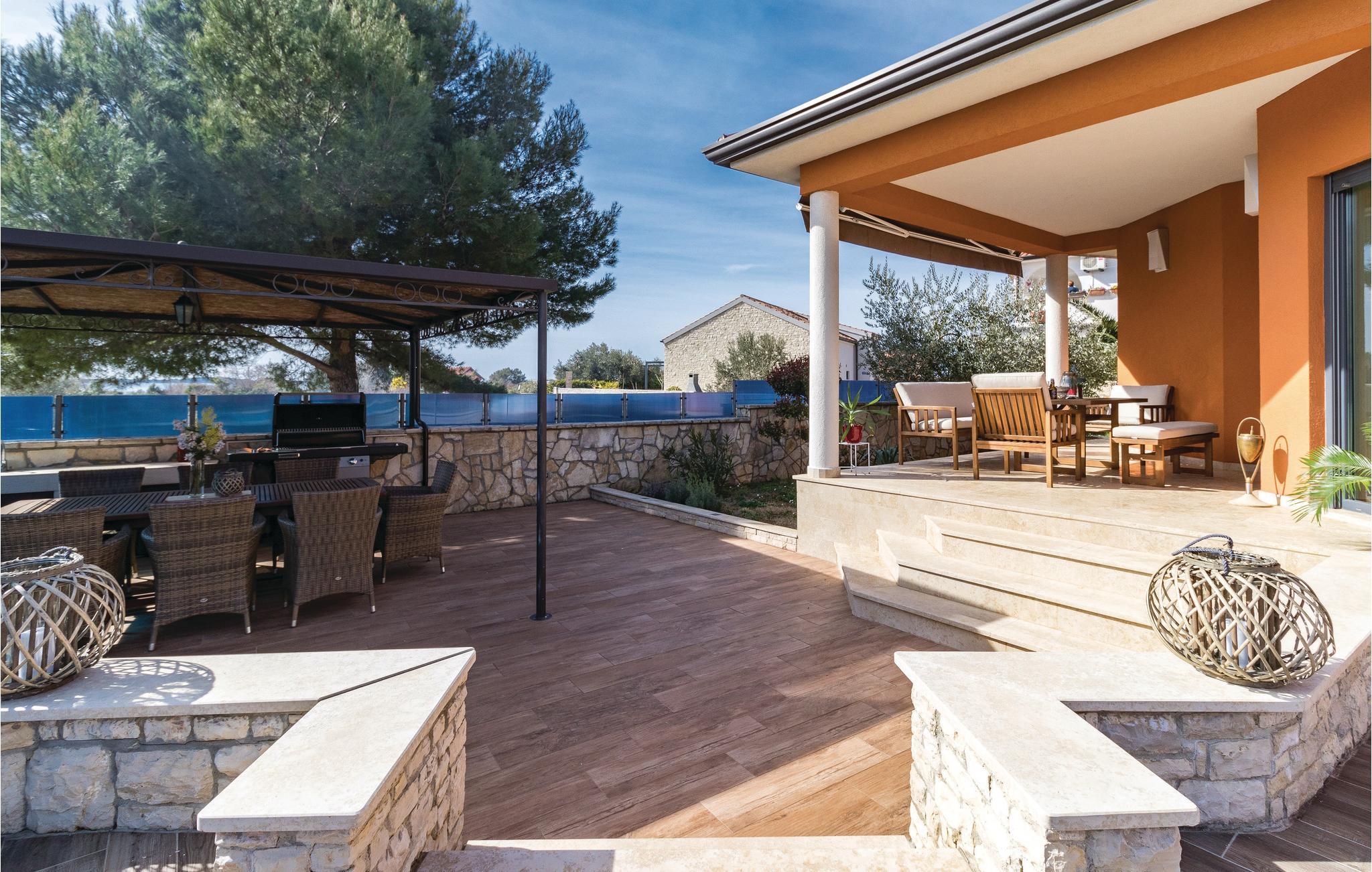 Dette elegant indrettede feriehus ligger i Peroj, hvor der også ligger en romersk udgravningsplads. Fra den lyse stueetage er der udgang til en terrasse, der er forbundet med poolen. Ovenpå er der to soveværelser, hvoraf det ene har egen balkon med udsigt til solnedgangen og nationalparken og øgruppen Brijuni. I underetagen er der en egnstypisk konoba, hvor I kan hygge jer sammen med god mad. Der er kun få minutters gang til den nærmeste strand og den smukke promenade, der fører til den maleriske by Fažana med mange istriske restauranter. Derfra organiseres bådture til nationalparken Brijuniøerne. I kan også besøge den historiske by Pula med utallige romerske seværdigheder. Der er et SUP-board tilgængeligt for de sportsglade gæster.