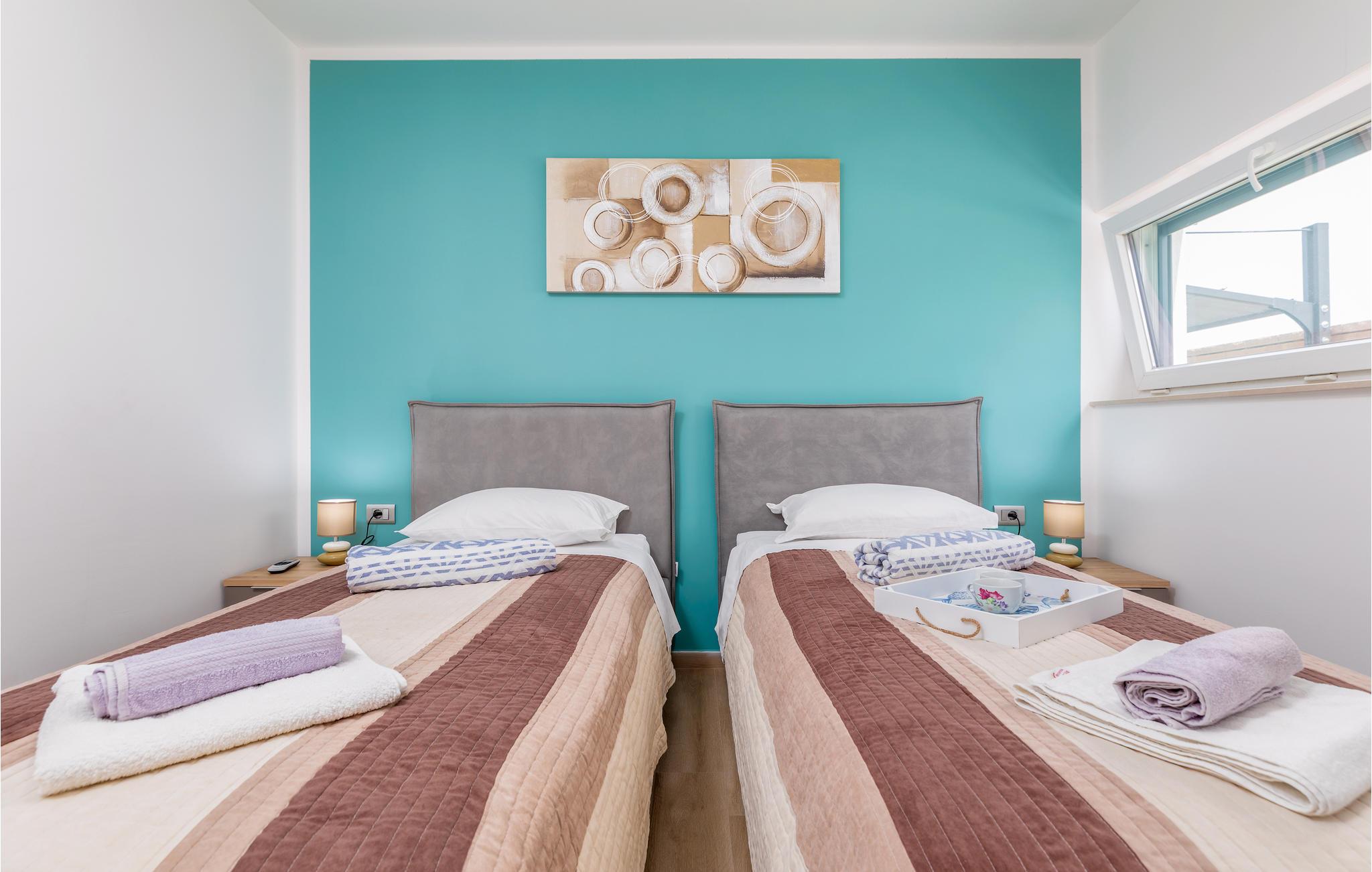 Tilbring jeres ferie med familie eller venner i dette smukke sommerhus med pool. Det venter sine gæster i Peroj nær Fažana. Husets interiør er moderne og tilbyder alt hvad I behøver for et behageligt ophold. Med 2 soveværelser og 2 badeværelser kan feriehuset rumme 5 personer, og 1 kæledyr er også velkommen.