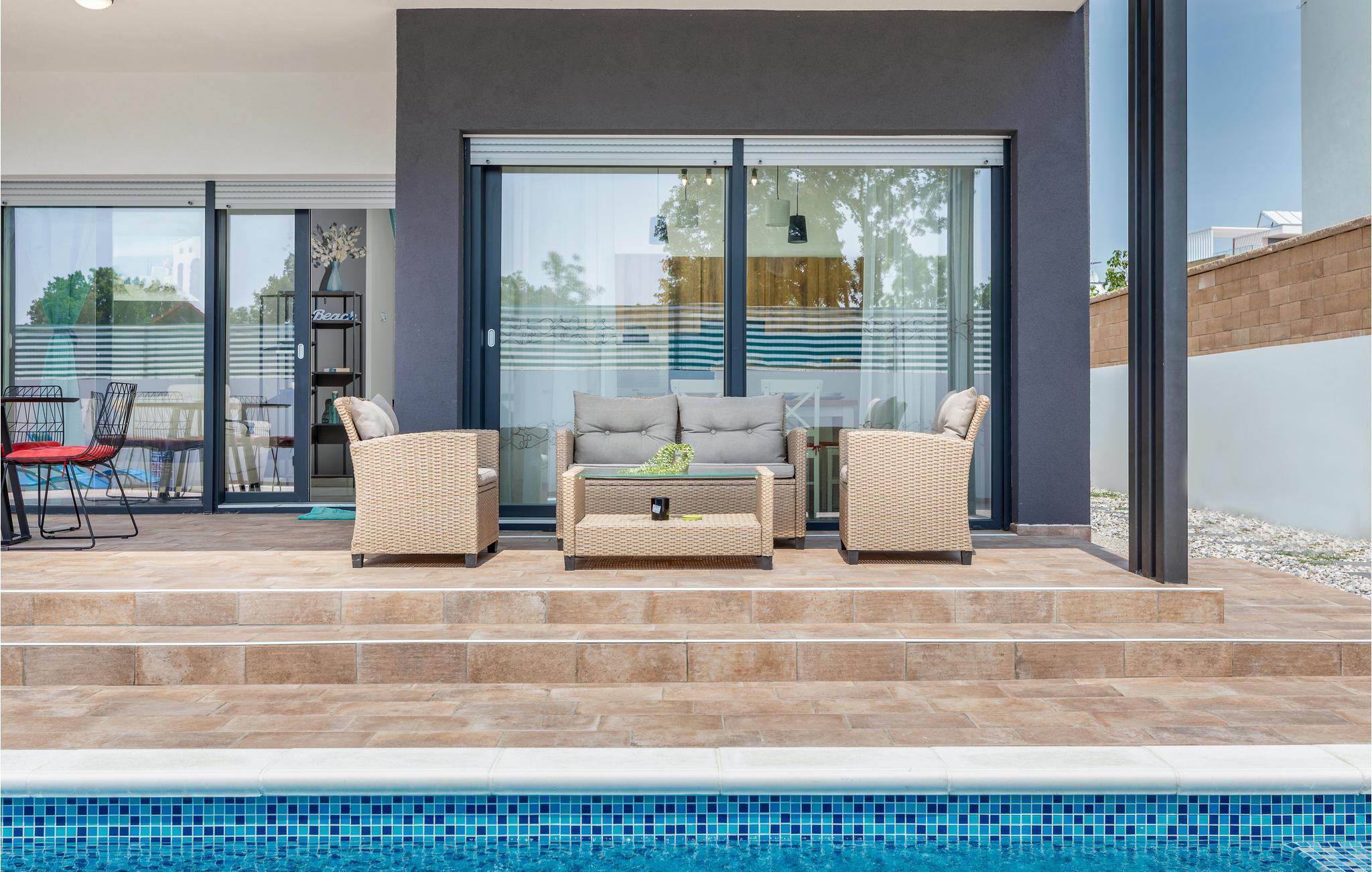 Nyd at solbade på poolterrassen og slappe af sammen med jeres kære, mens I forbereder lækre grillretter.