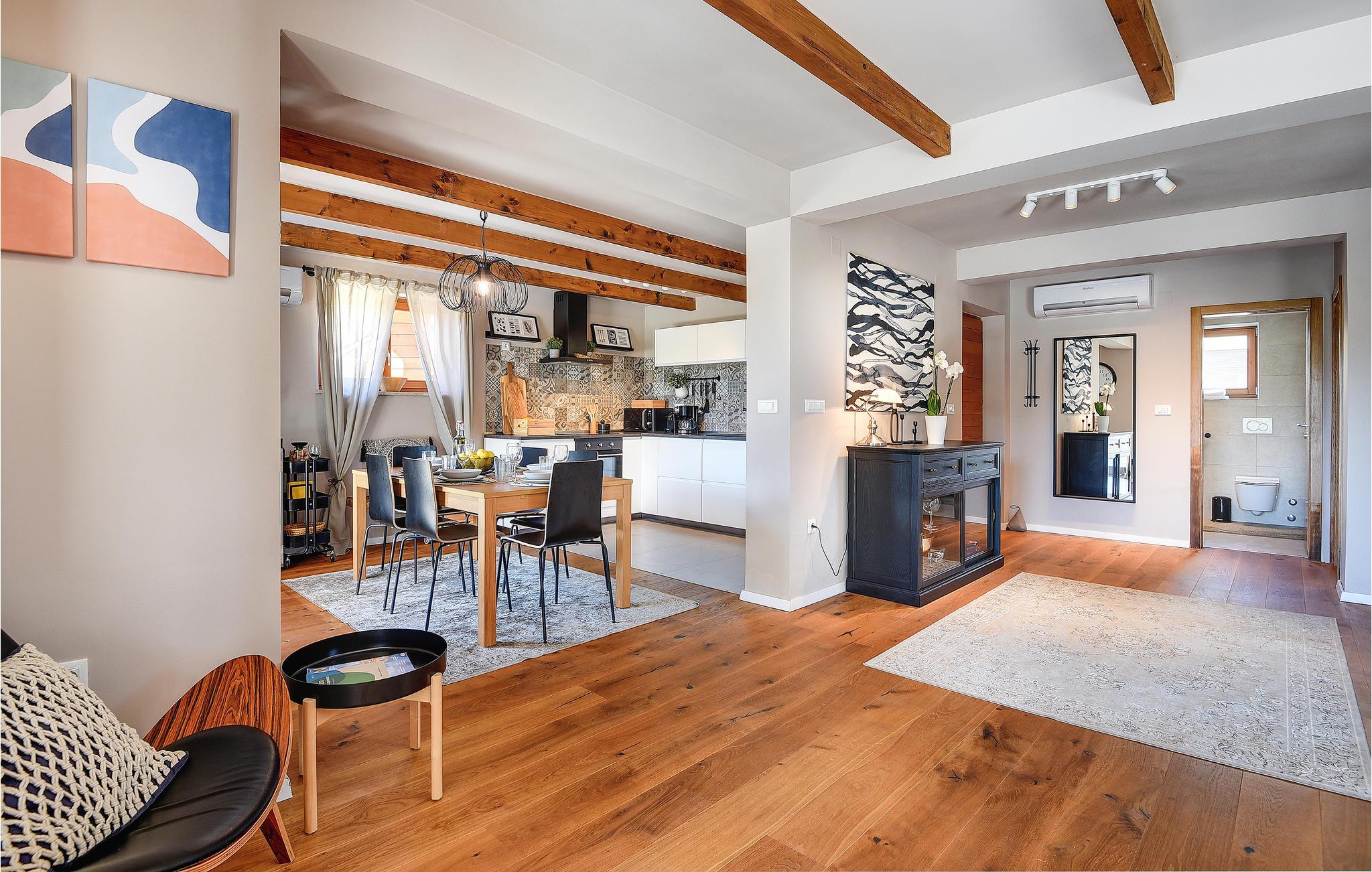 Lad turen gå til Istrien og glæd jer til ferien i dette stilfulde og komfortable hus, som udmærker sig med en beroligende atmosfære. De to etager i det dejlige hus giver jer straks et smil på læben og indbyder til at bruge kvalitetstid foran pejsen eller lave til at lave mad sammen. Møblementet og indretningen af værelserne er udsøgt og giver jer mulighed for at hygge jer til den store guldmedalje.