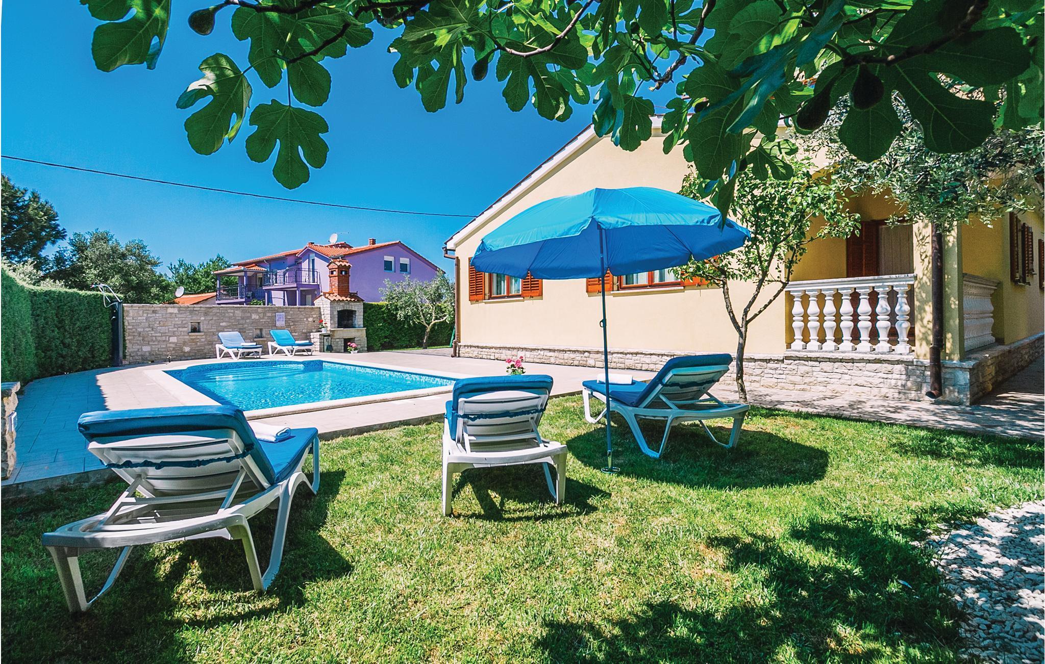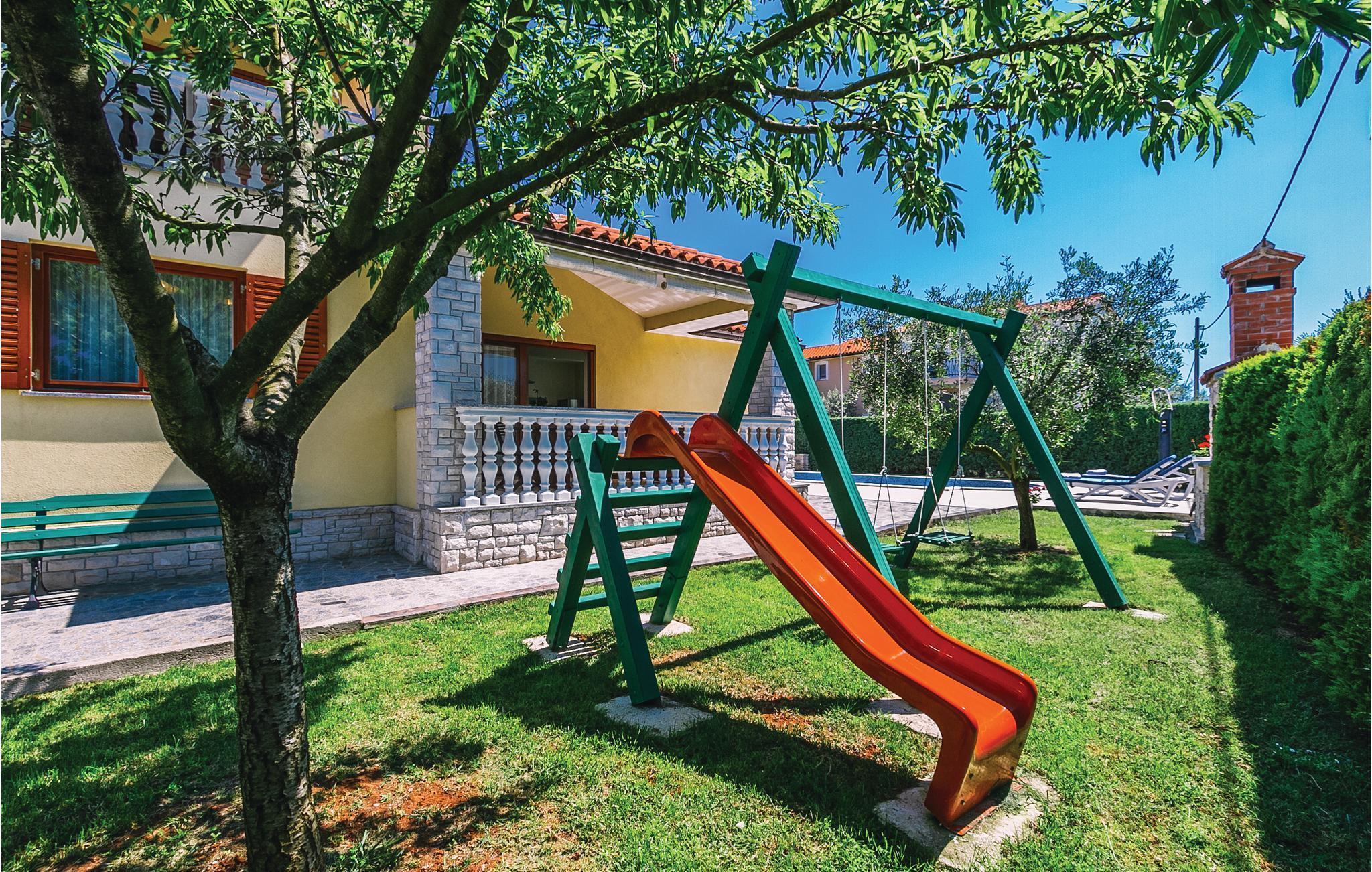 Dette moderne sommerhus ligger i det fredelige område omkring Valbandon, der er en lille by kun få minutter fra stranden. Huset er funktionelt indrettet, og består af fire boligenheder, de er forbundet med en indvendig trappe. Således er der god privatsfære til flere familier på ferie sammen. Haven har en velplejet græsplæne, som børnene kan lege på. I nærheden ligger fiskerbyen Fazana, der har en smuk promenade og mange gode restauranter. Fra Fazana går der dagligt udflugtsbåde til præsidentøen Brijuni, der er et yndet mål for dem, der gerne vil slappe af. Nationaleparken Brijuni byder også på flere gode og udfordrende golfbaner. Få minutters kørsel fra huset kommer I til Pula, hvor der findes flere interessante monumenter fra romertiden, deriblandt amfiteateret, hvor der hver sommer afholdes filmfestival og flere koncerter.