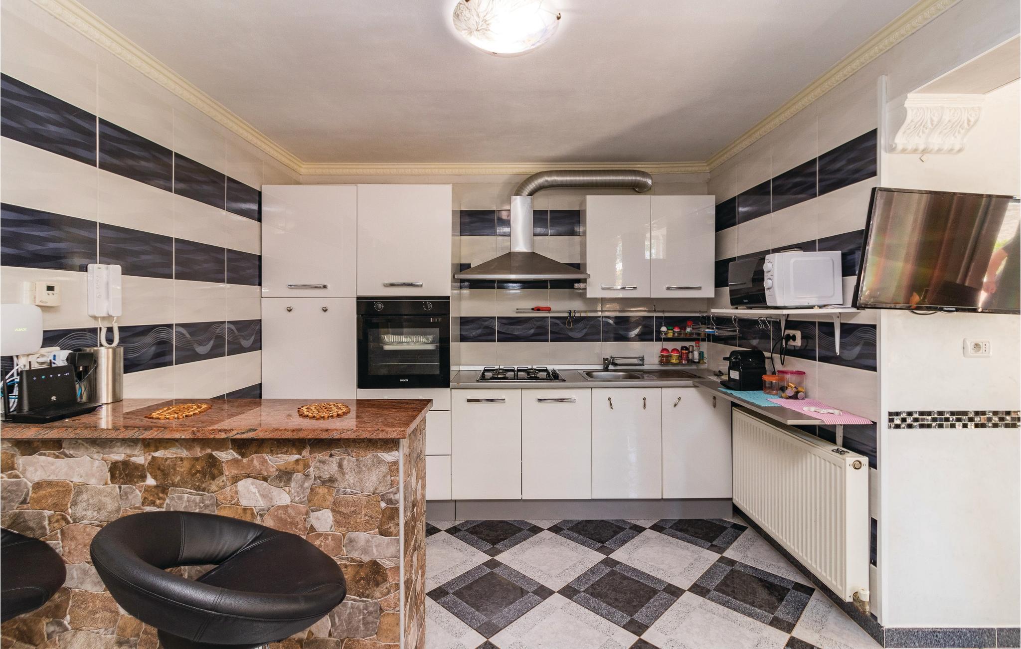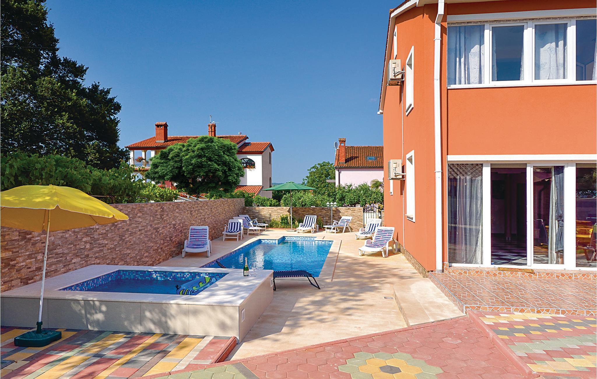 Dette komplet udstyrede feriehus med swimmingpool er tilpasset nutidens krav til feriekomfort og godt indrettet. Husets etager er forbundet med en udendørs trappe, men der er separat indgang udefra til både stueetagen og først sal. Fra indgangen i stueplan kommer man ind til souterrain. Huset er smukt dekoreret med lyse pastelfarver og med bekvemme moderne møbler. Sæt jer ved baren i køkkenet med et godt glas vin, og nyd udsigten til de der har vundet køkkentjansen. Huset ligger i en stillezone, med restauranter, strande, og butikker lige i nærehden. I poolen kan I slappe i det kølige vand når solen står højt. Besøg den nærmeste by Fazana og tag på udflugt til øen Brioni.