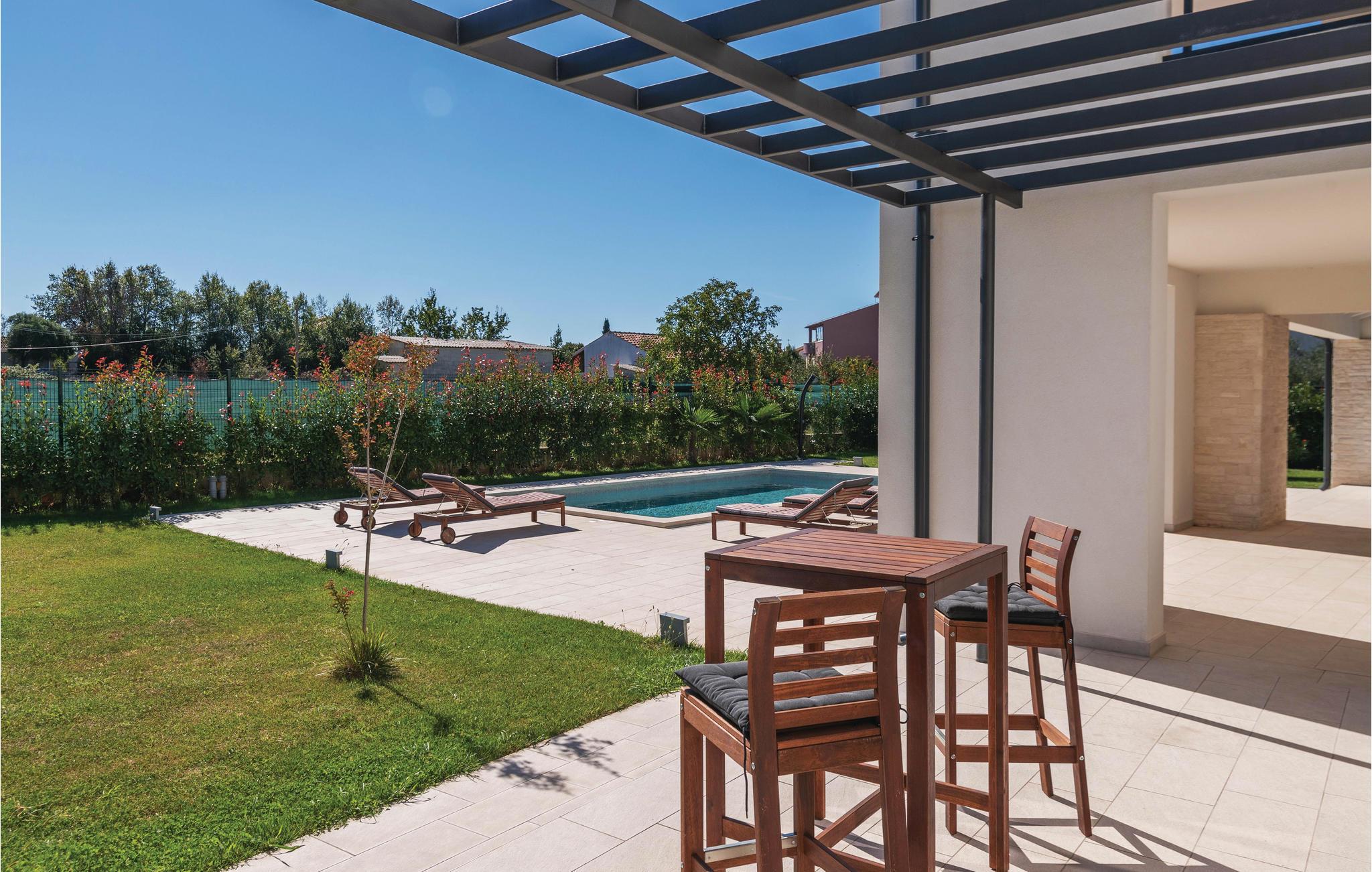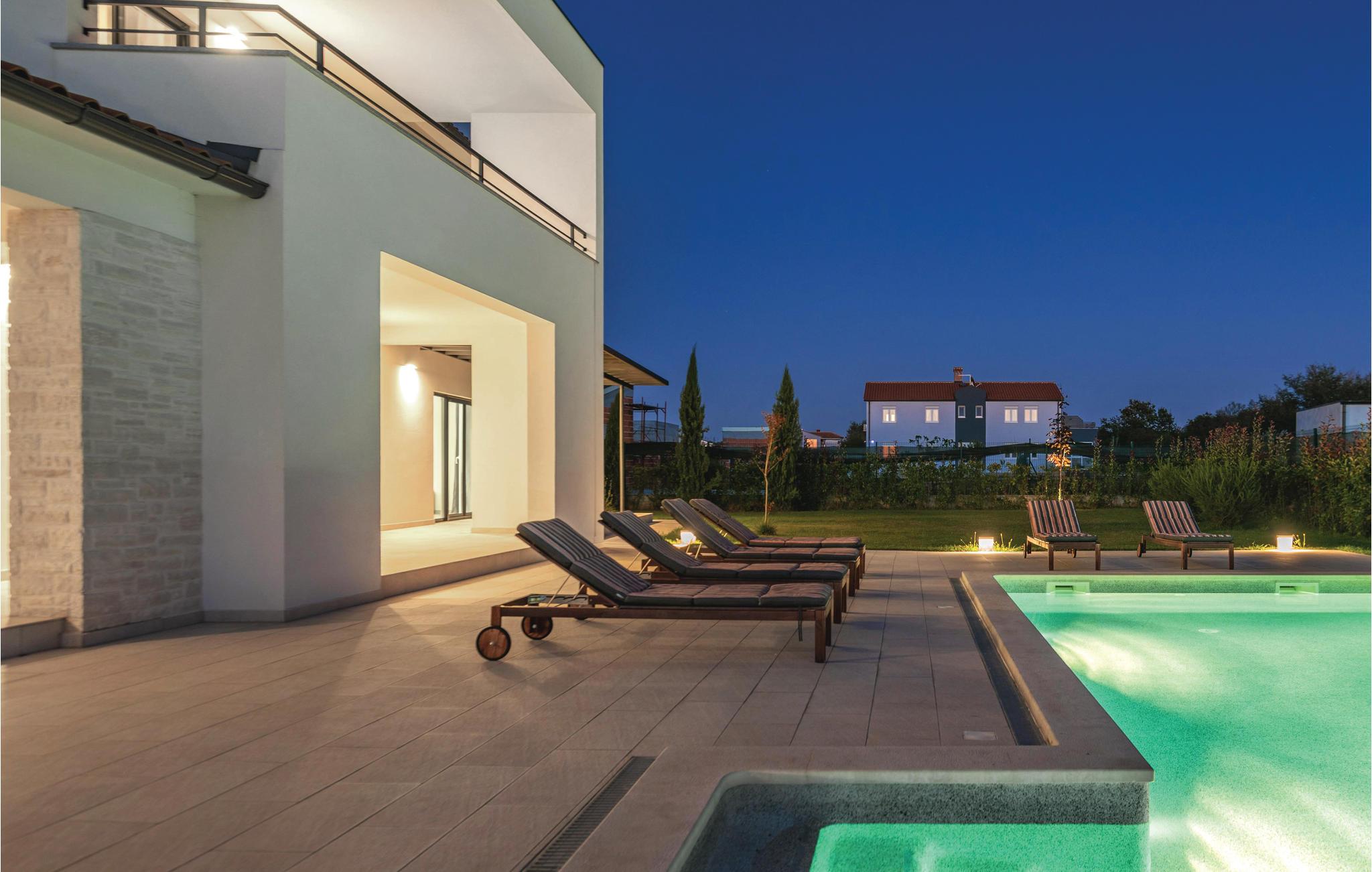 I forstaden Valbandon ligger dette vidunderlige og velplejede feriehus med pool. Det moderne design og de attraktivt indrettede værelser bidrager til den behagelige og indbydende stemning. De tre soveværelser med dobbeltseng og badeværelse en suite er udstyret med klimaanlæg og tv, mens det fjerde soveværelse kun er udstyret med en enkeltseng. Det indhegnede udendørsområde prydes af en harmonisk pool og en overdækket terrasse med grillplads. Her kan I grille afslappet med jeres venner og nyde et glas vin. Særdeles behageligt er det her, at I nemt kan nå indkøbsmuligheder, gode restauranter og badestrande. En anbefaling værd er også en dagstur til nationalparken på Brijuni-øerne.