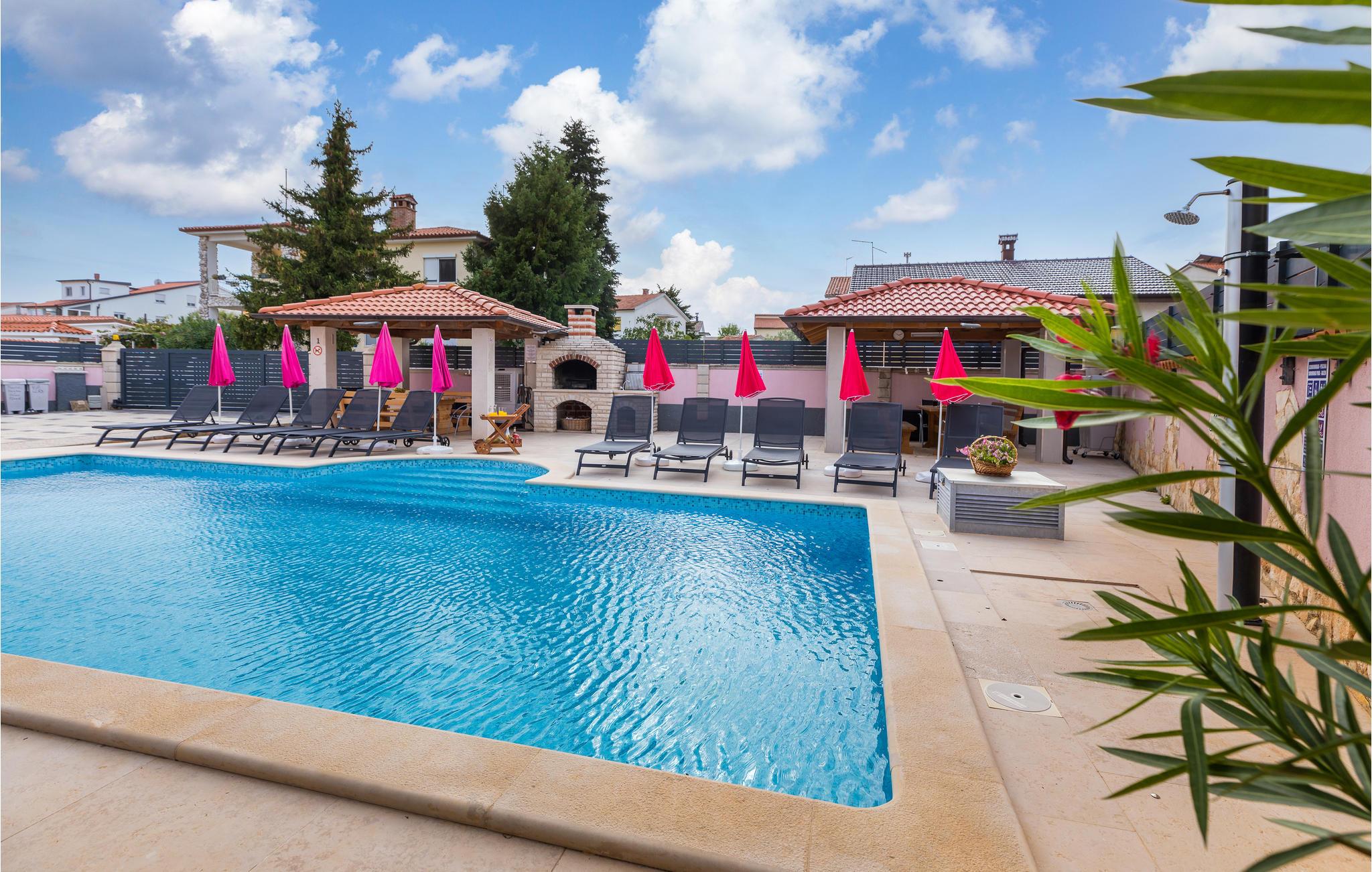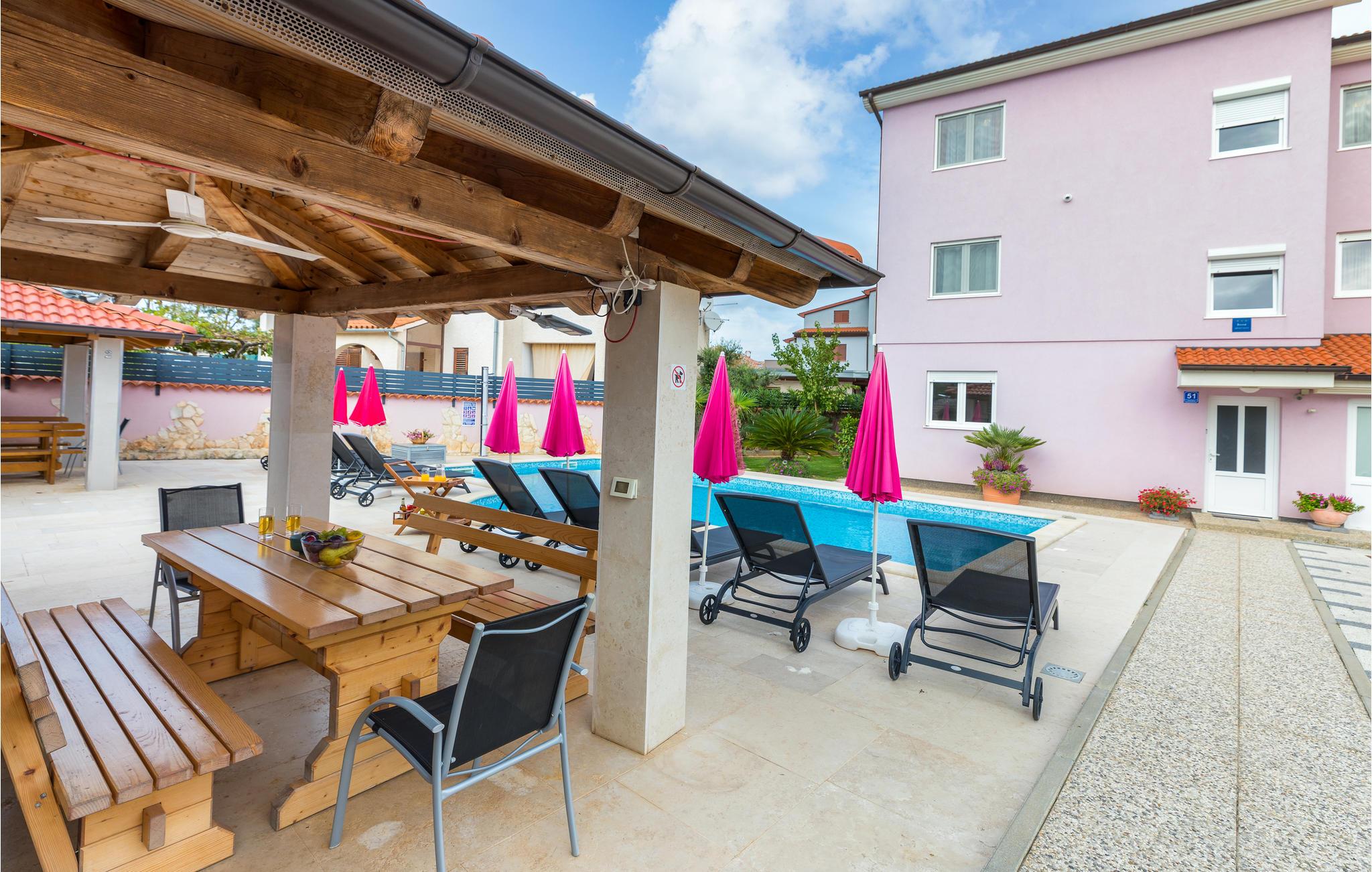 De charmerende ferielejligheder CIF542, 543 og 544 ligger i et lille hus og deler en udendørs pool samt en overdækket terrasse med grill på den fælles grund. Hver lejlighed er indrettet med dejlige møbler og byder på en egen terrasse, hvor I kan tilbringe mange hyggelige timer. I når de nærmeste strande i Valbandon nemt til fods. En anbefaling værd er der talrige restauranter og strandpromenaden i nabobyen Fažana. Fra byens havn kommer I også til nationalparken på Brijuni-øerne.