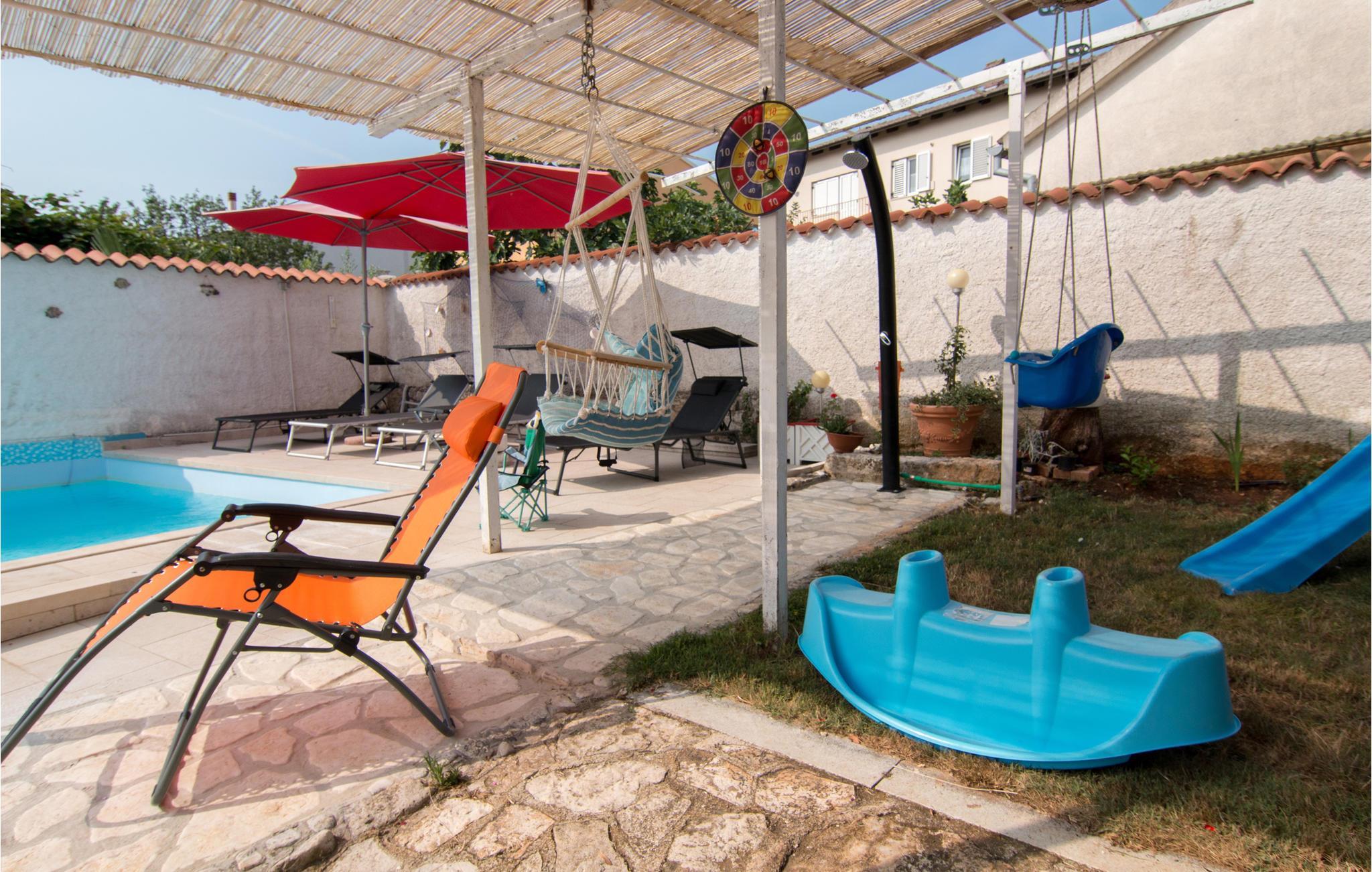 Planlæg nogle udflugter til de smukke steder på halvøen, for denne bolig er den perfekte base. I er tæt på den maleriske by Fazana, hvor der er en lille havn, farverige rækkehuse og gode restauranter. Nyd den unikke feriestemning, som den oprindelige fiskerby står for. Gå en tur på den livlige strandpromenade eller tag en kort cykeltur til de fine sandstrande. Med båd kan I komme til den berømte Brijuni Nationalpark med 14 øer lige ud for kysten.