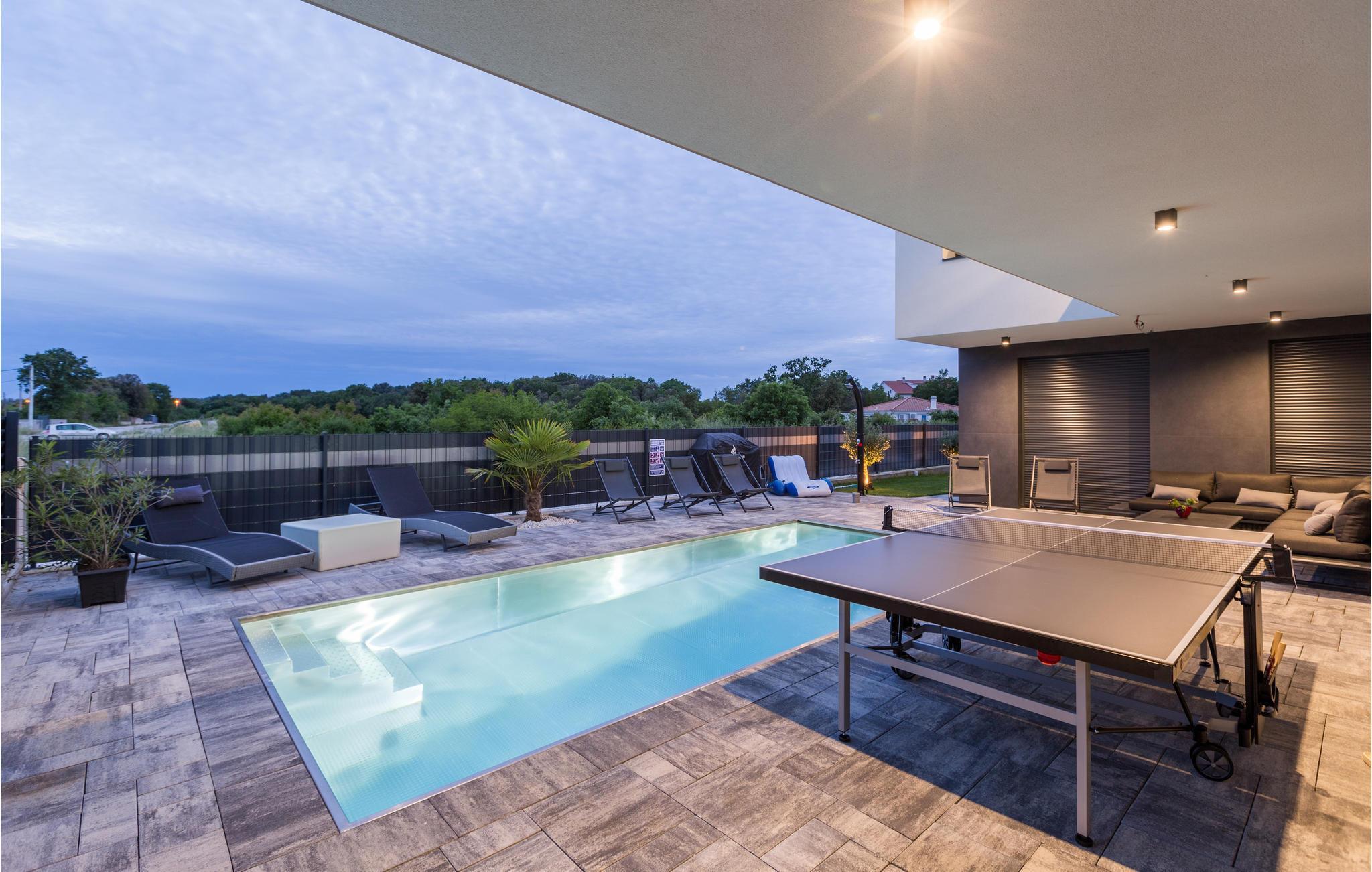 Nyd en afslappende tid nær havet i dette moderne feriehus med privat pool.