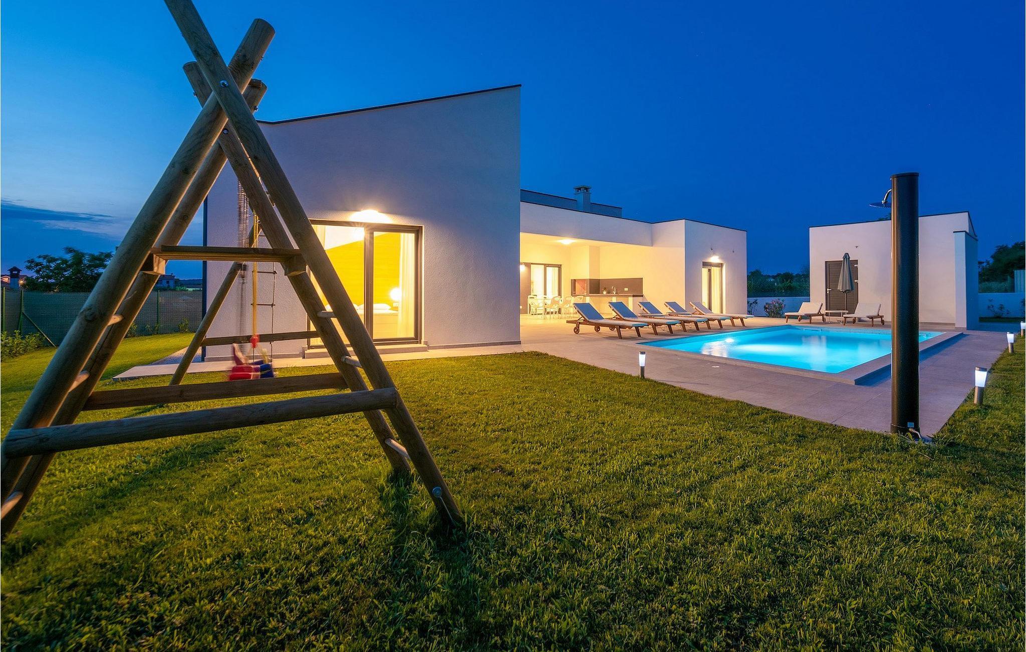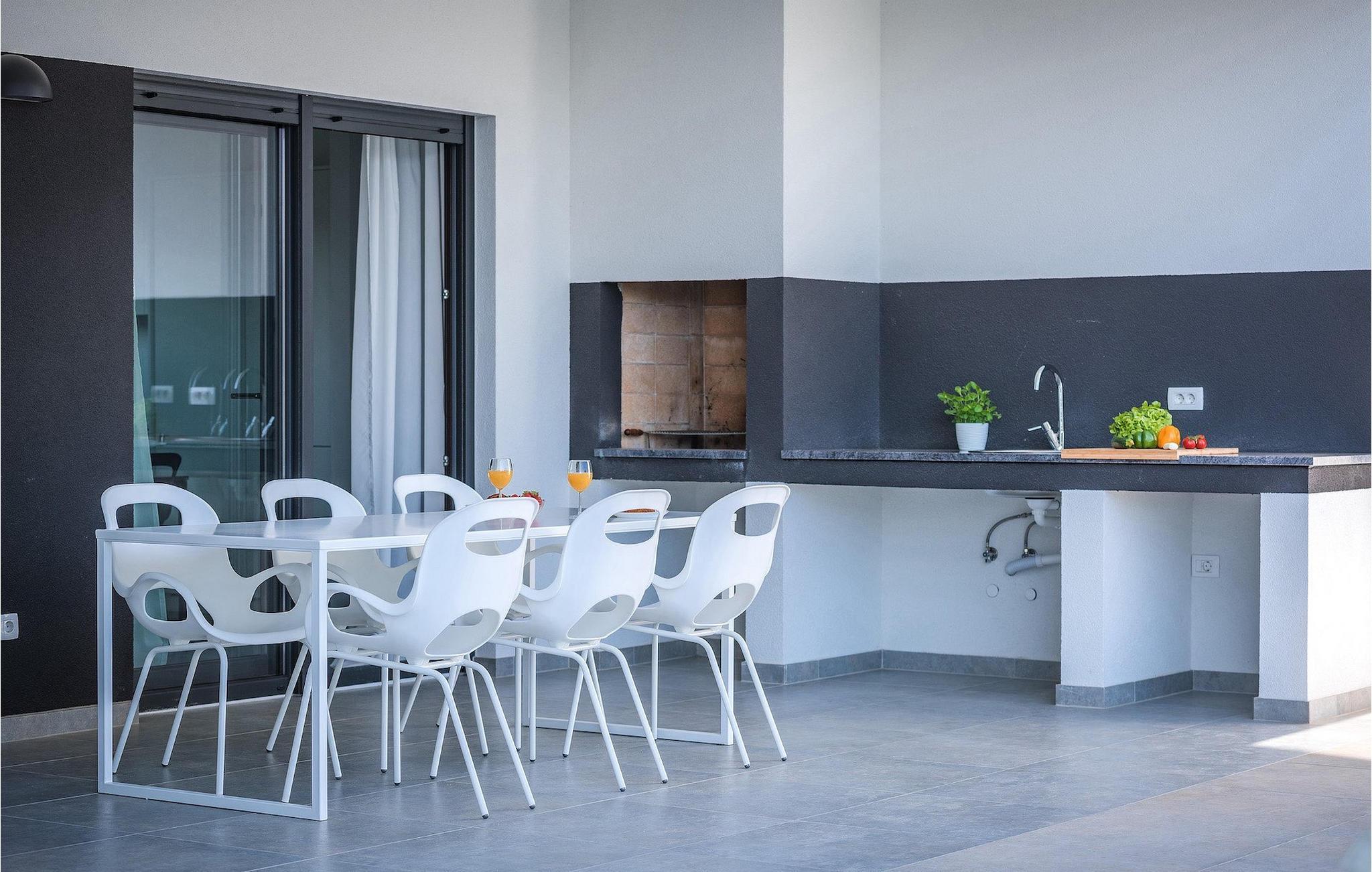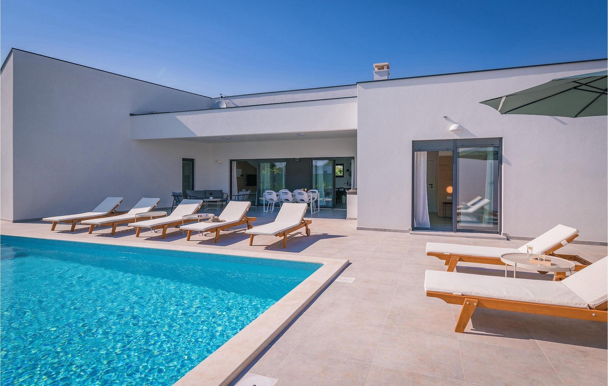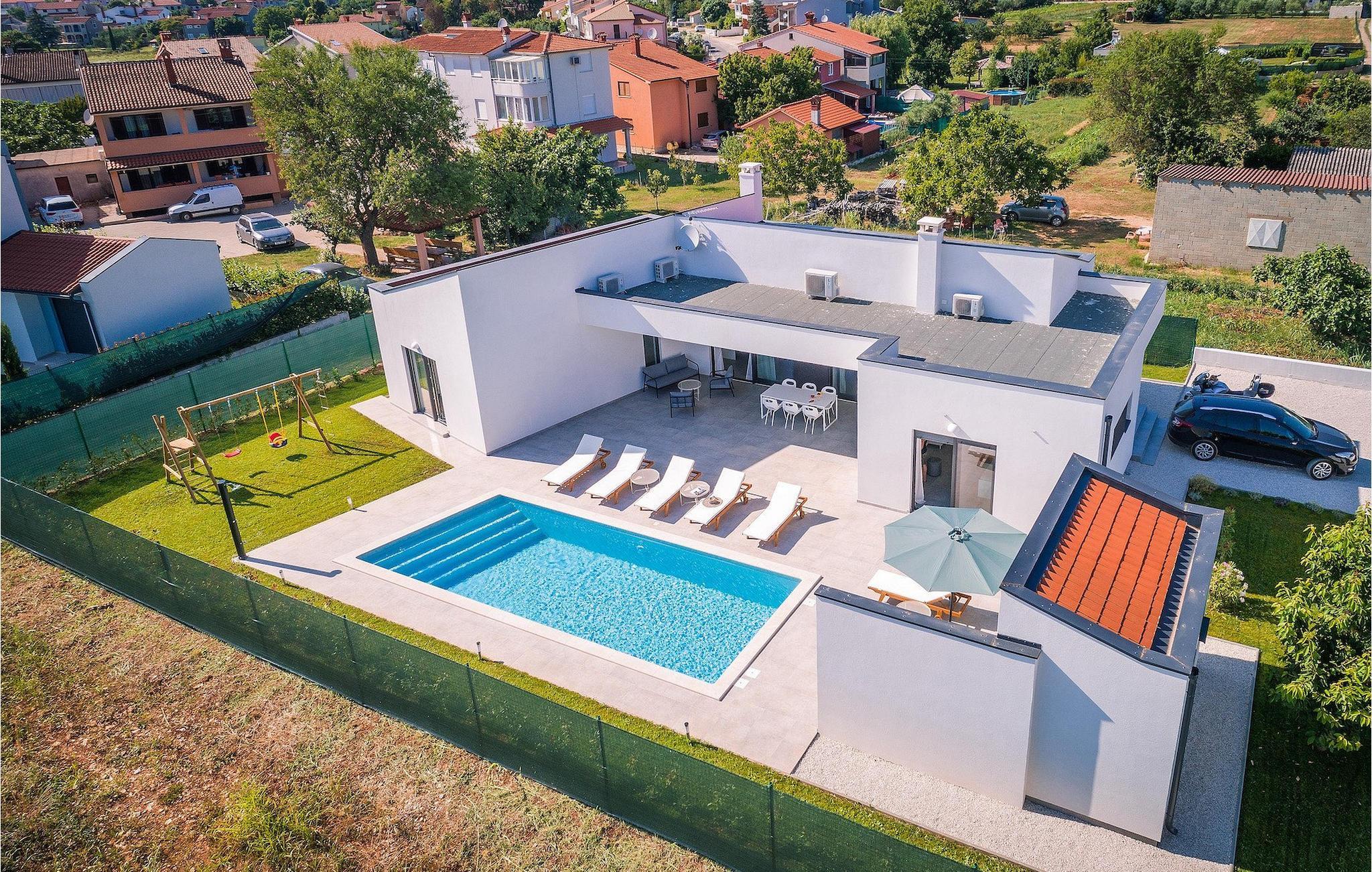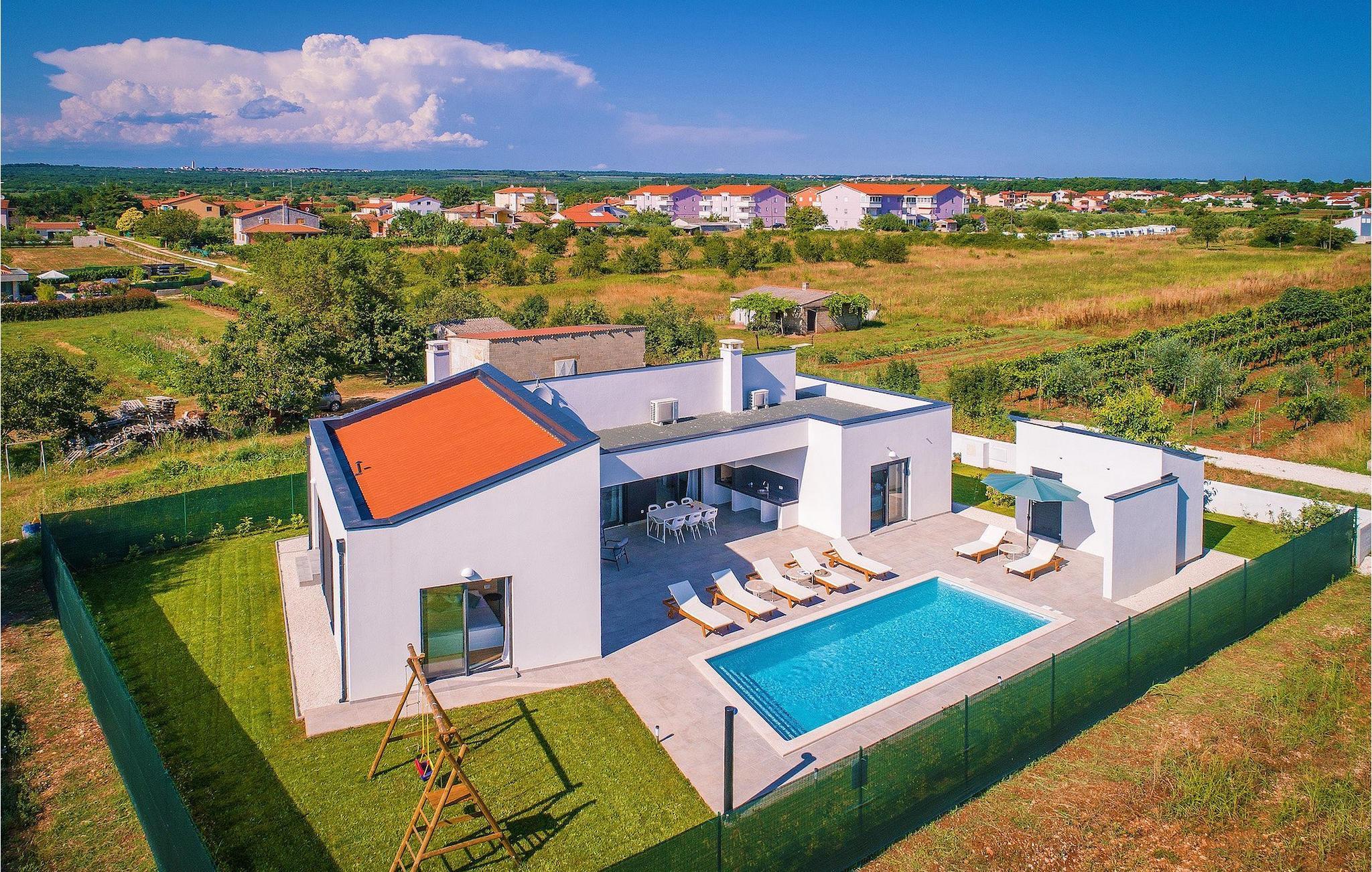 Den smukke Villa Mateo ligger i Valbandom, et af de steder, der udgør byen Fazana, og kun 1 km fra stranden. Denne moderne møblerede villa består af 3 soveværelser, hver med eget badeværelse, og en åben planløsning med stue/spisestue med køkken. Alle værelser er på samme niveau, og der er ingen trapper i huset. Soveværelserne har en dobbeltseng, aircondition, tv og eget badeværelse. Stue/spisestue og køkken giver direkte adgang til det udendørs område, hvor villaens højdepunkt venter dig: den private pool, som giver den nødvendige forfriskning på varme sommerdage. Poolen er 1,65 cm dyb, så glem ikke at medbringe vandvinger til børnene. :) Tilbuddet fuldendes af den udendørs spiseplads med grill og legepladsen, som de helt sikkert vil nyde. VIGTIGT: Villa Mateo er ikke et festhus, og yngre grupper af gæster er ikke tilladt!Smukke Villa Mateo ligger i Valbandon, et af de to steder, der gør kommunen og byen Fazana. Fazana ligger på den sydvestlige kyst af halvøen Istrien, kun 8 km fra Pula. Byen er kendt for sit fremragende gastronomiske tilbud: ekstra jomfru olivenolie, vin, prosciutto og sardiner. Her kan du også finde omkring 60 cykelstier, hvoraf nogle fører langs den smukke Adriaterhavskyst med udsigt til Brijuni-øerne. Der er også en 4 km lang vandresti langs kysten, ideel til romantiske gåture med din elskede. Fazana er også et sted, hvor du kan nyde forskellige former for vandsport: du kan leje en jetski, speedbåd, padlebåd, kano og cykler. Du kan også prøve windsurfing og dykning. Der er endda en halv ubåd, som du kan udforske den rige undervandsverden med. I nærheden finder du eventyrparken Jangalooz. Du kan tage hele familien med på en tur til badelandet i Pula eller til Dinoparken i Fontana. Den nærliggende nationalpark Brijuni er også en god idé til en tur med hele familien.