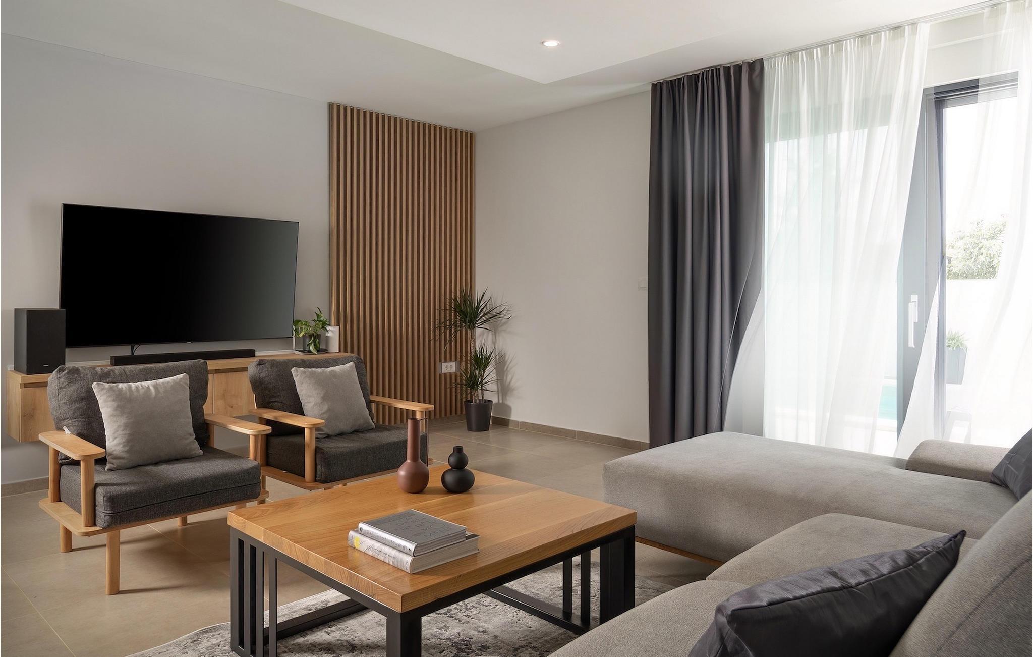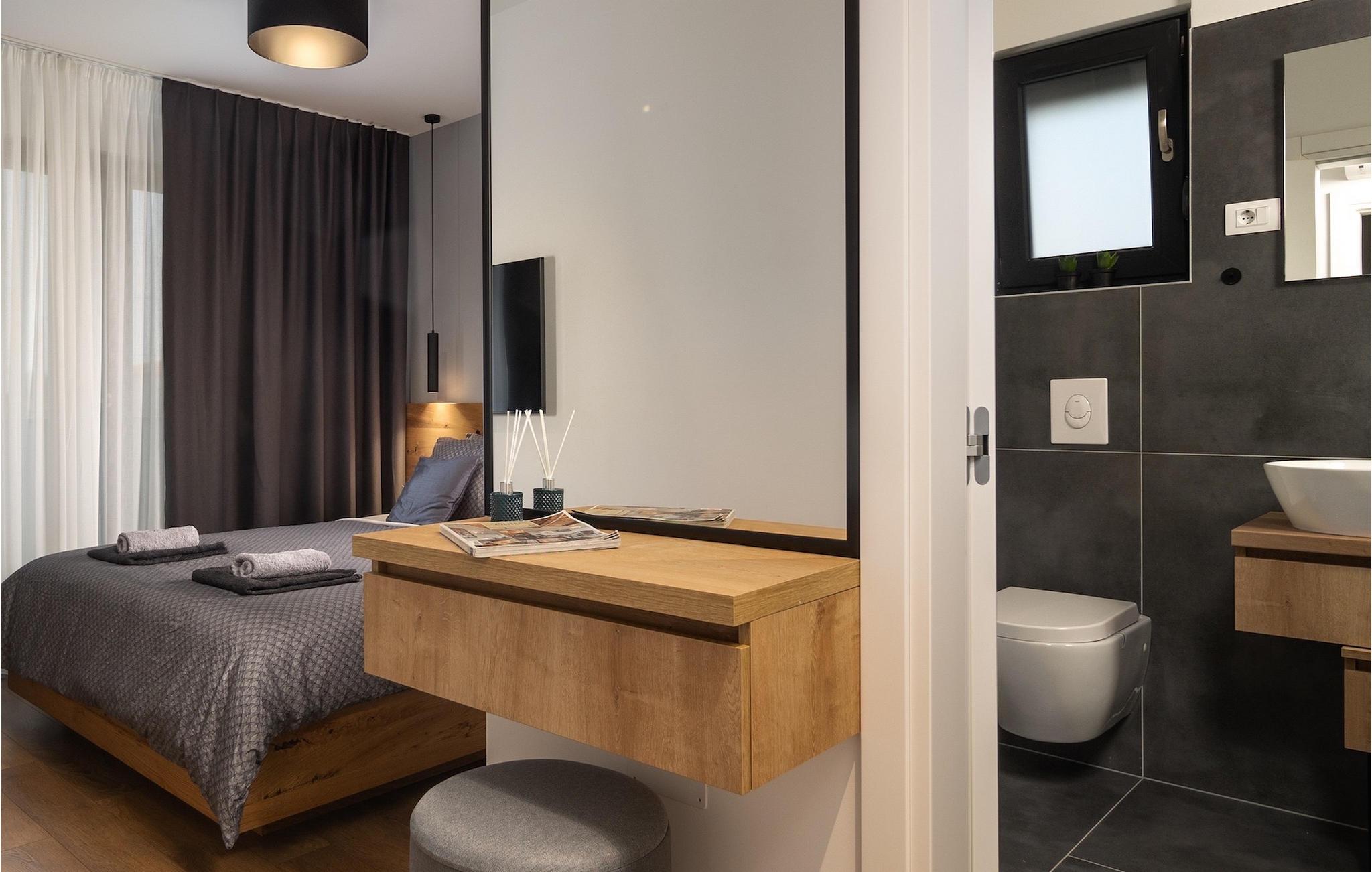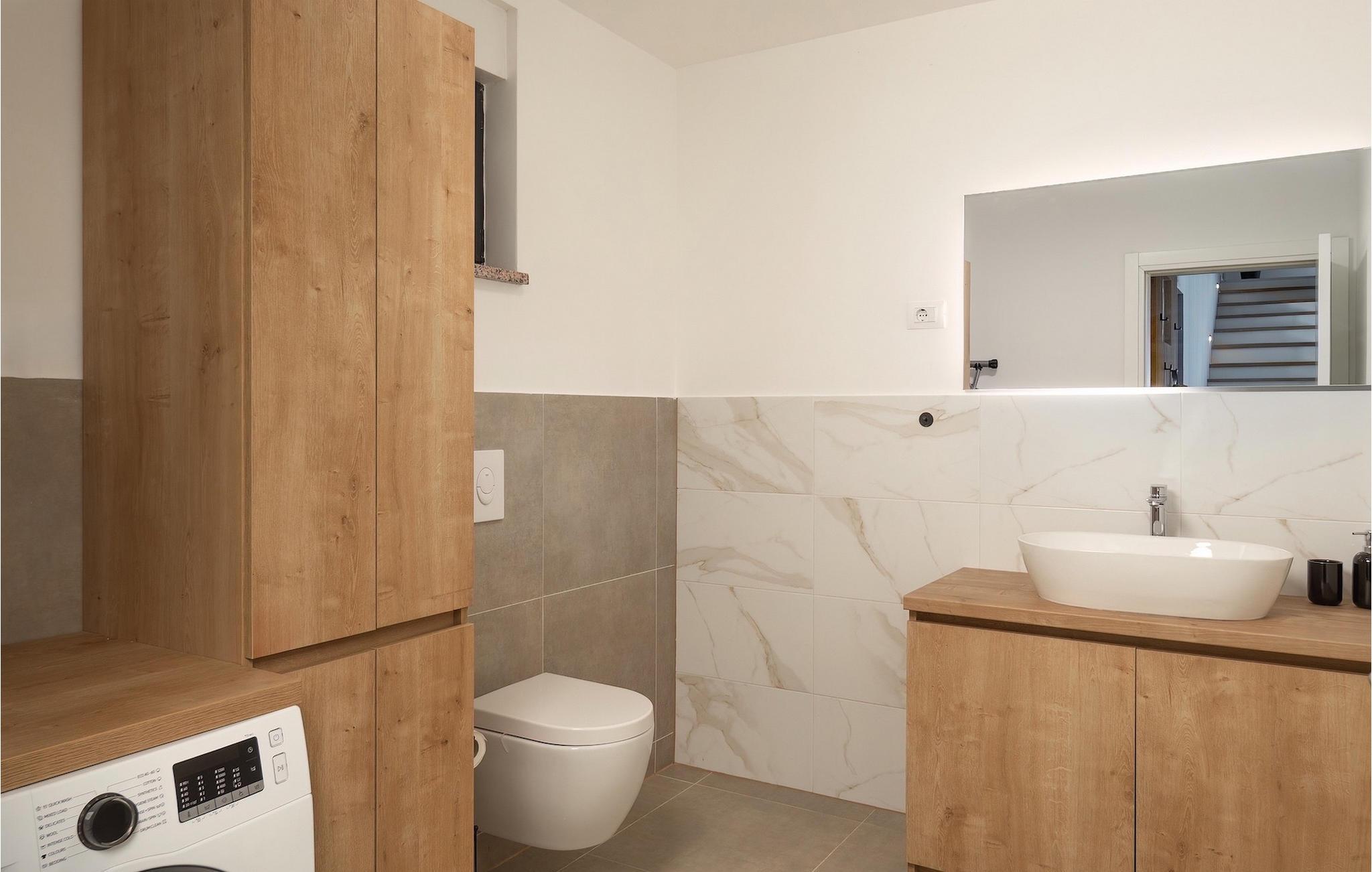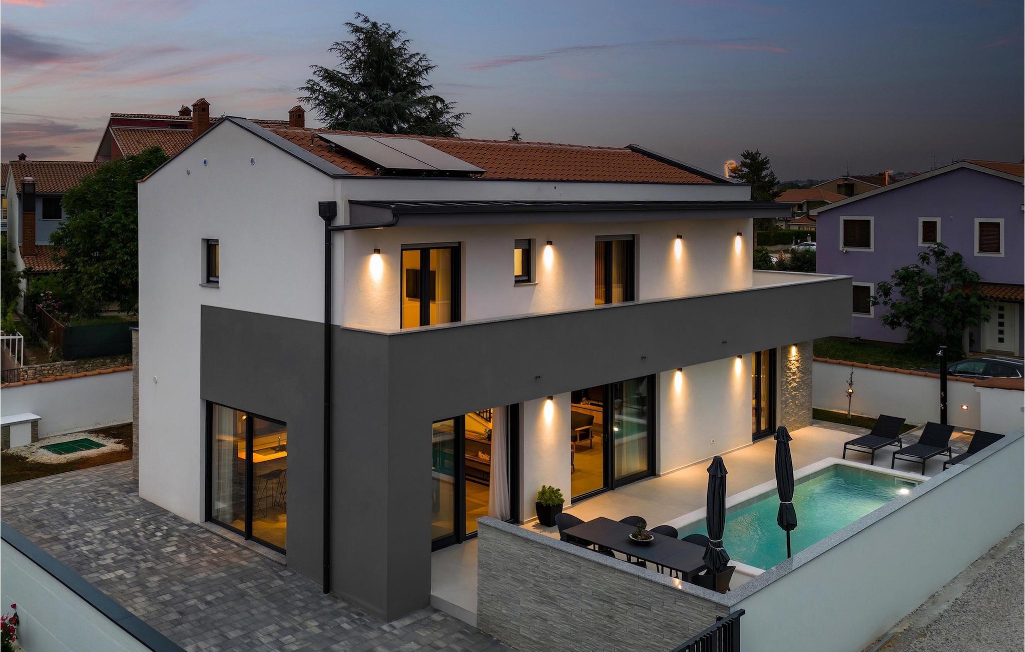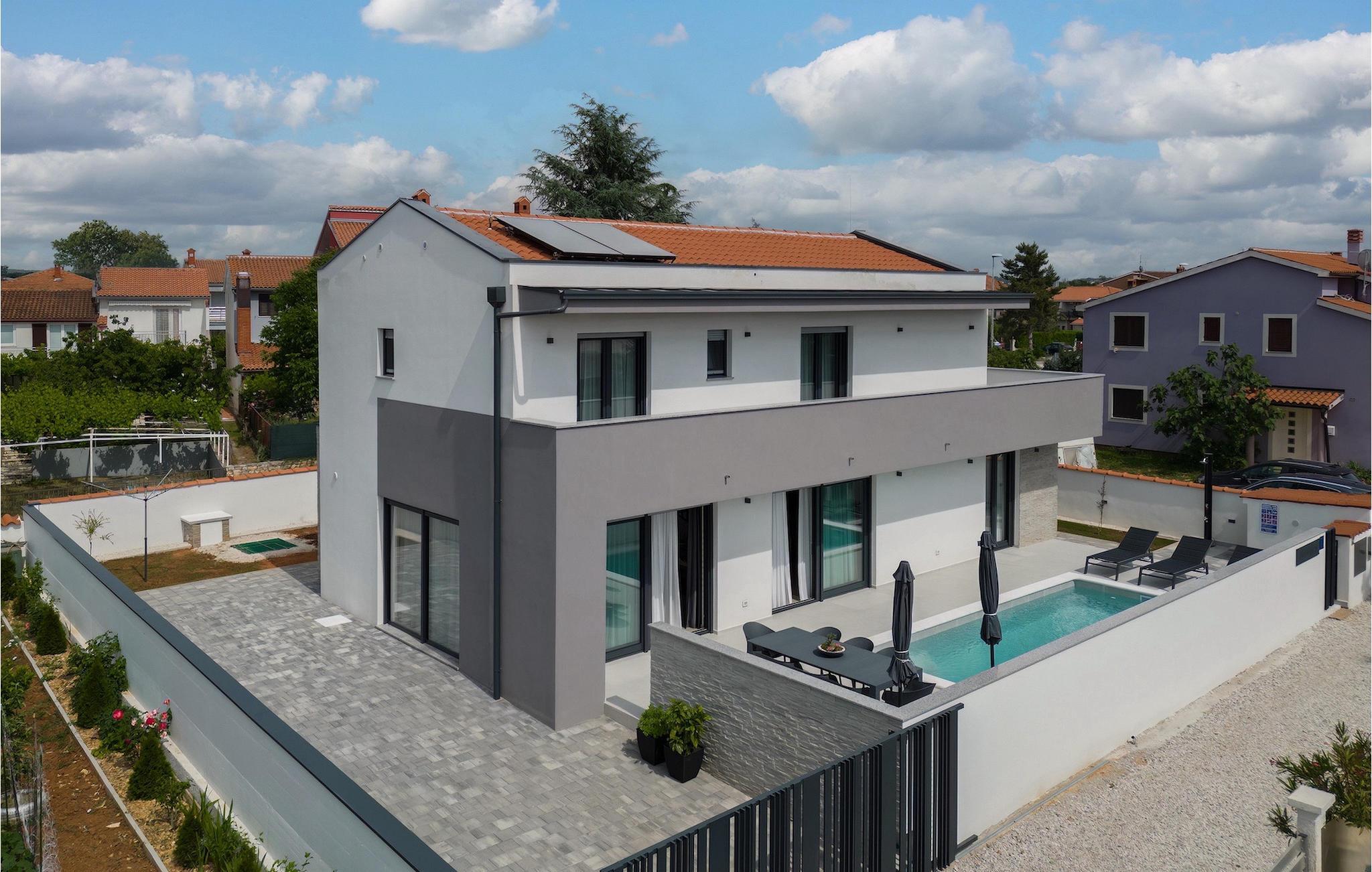 Villa Adria er en smuk ferievilla nær havet i den istriske landsby Valbadon. Denne fuldt lukkede villa tilbyder en rolig ferie og fuldstændig intimitet. Villaen har et moderne design og foran den er der en smuk pool på 21 m2. Ideelt til afslapning og forfriskning på varme dage Nyd solbadning eller tilbring uforglemmelige stunder ved poolen ved et bord med 8 siddepladser. Prøv din hånd med at tilberede traditionelle retter på grillen til hele familien og venner. og en stue, hvorfra du kan svømme i poolen foran villaen. Det første soveværelse med en dobbeltseng og en-suite badeværelse i stueetagen er beregnet til hvile og fredelige drømme. Der er et separat toilet med vaskemaskine. På første sal er der tre mere komfortable, moderne soveværelser med eget badeværelse og dobbeltsenge. Alle værelser er udstyret med tv og aircondition. Soveværelserne har adgang til en stor terrasse, hvor du kan tilbringe din morgen med en kop kaffe og en interessant bog i en istrisk atmosfære. Gå ikke glip af din afslappende ferie i Villa Adria og lad dig fortrylle af Valbadons charme.