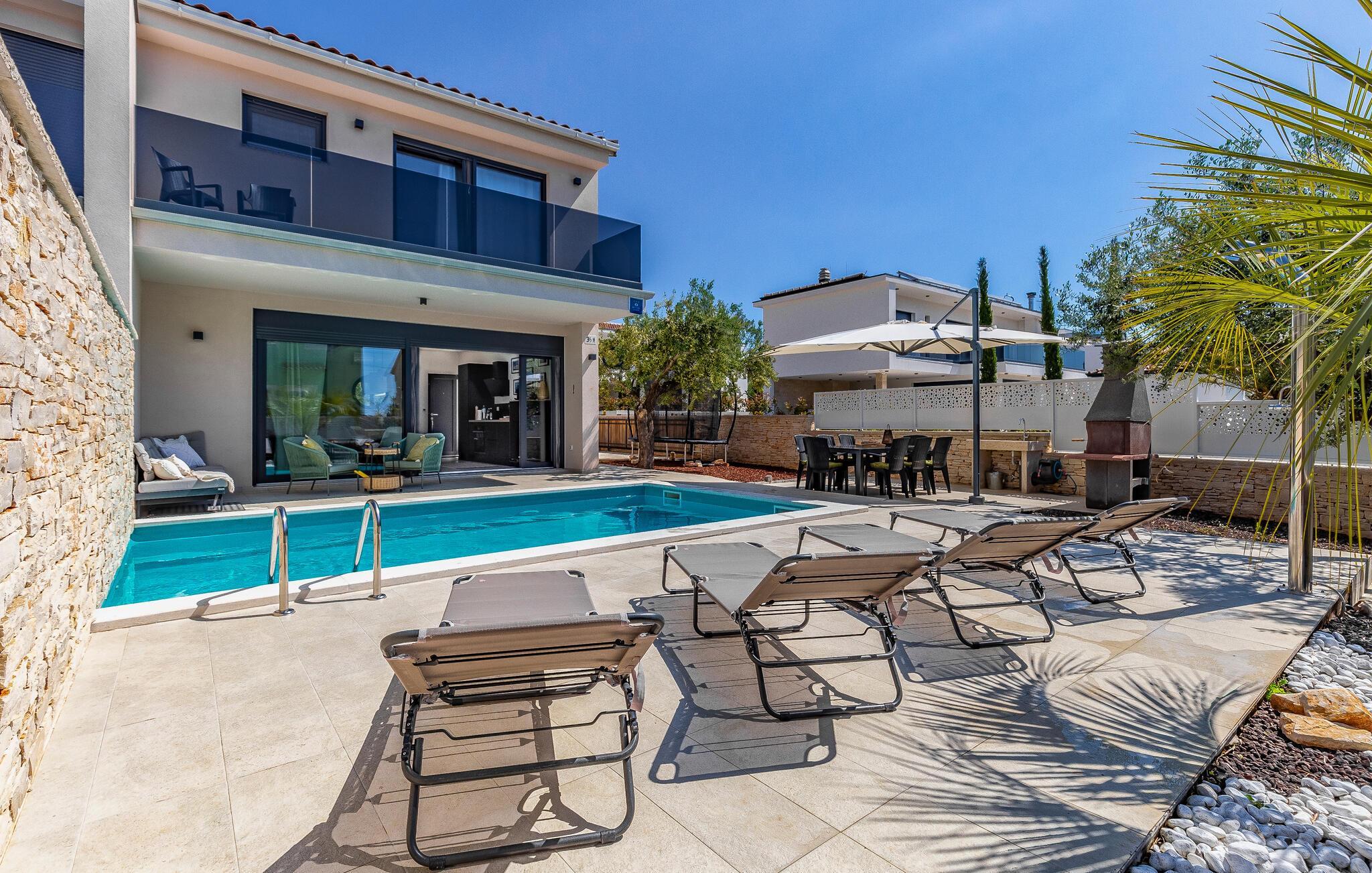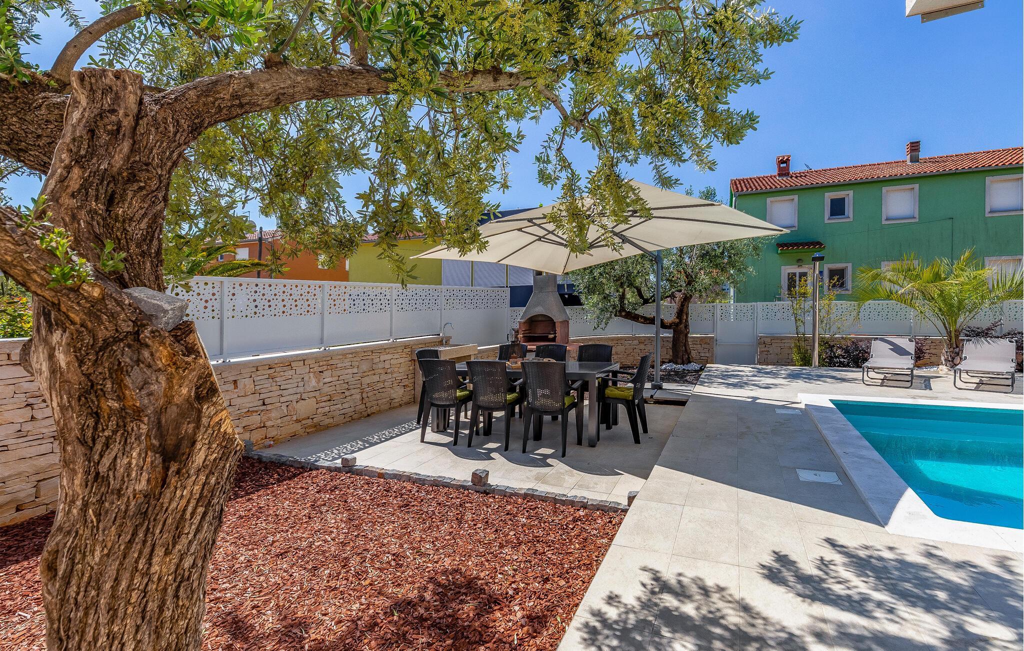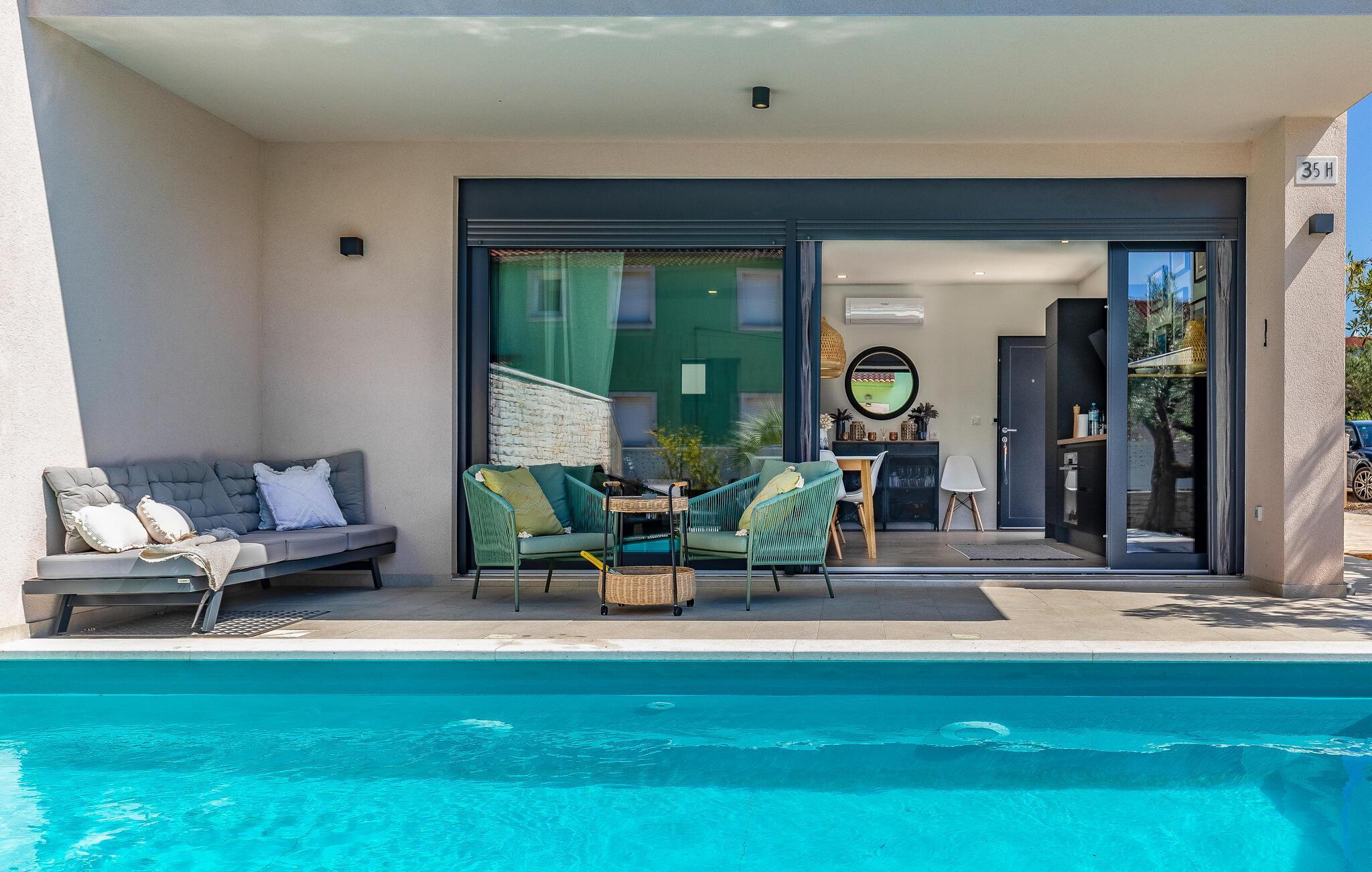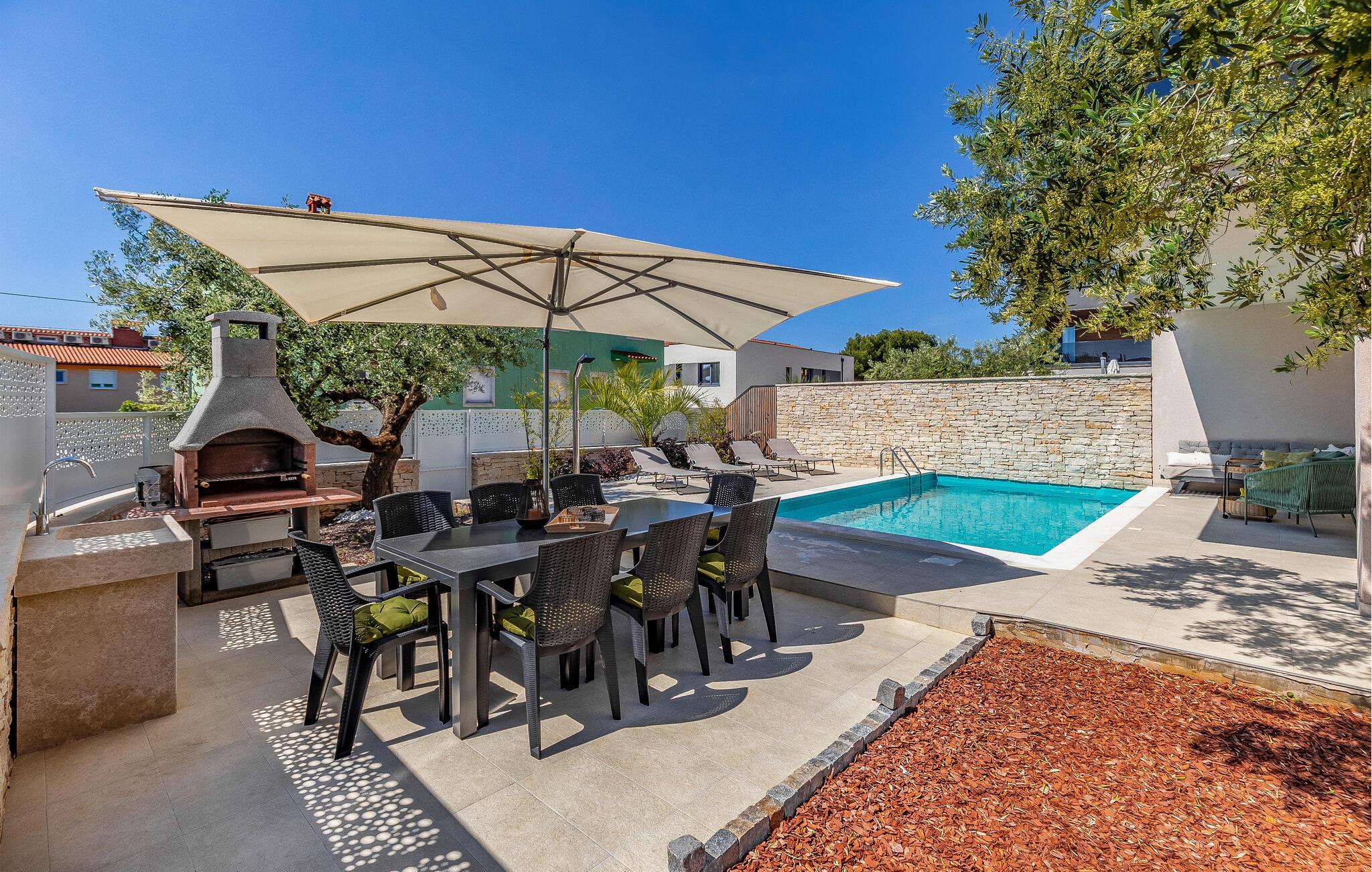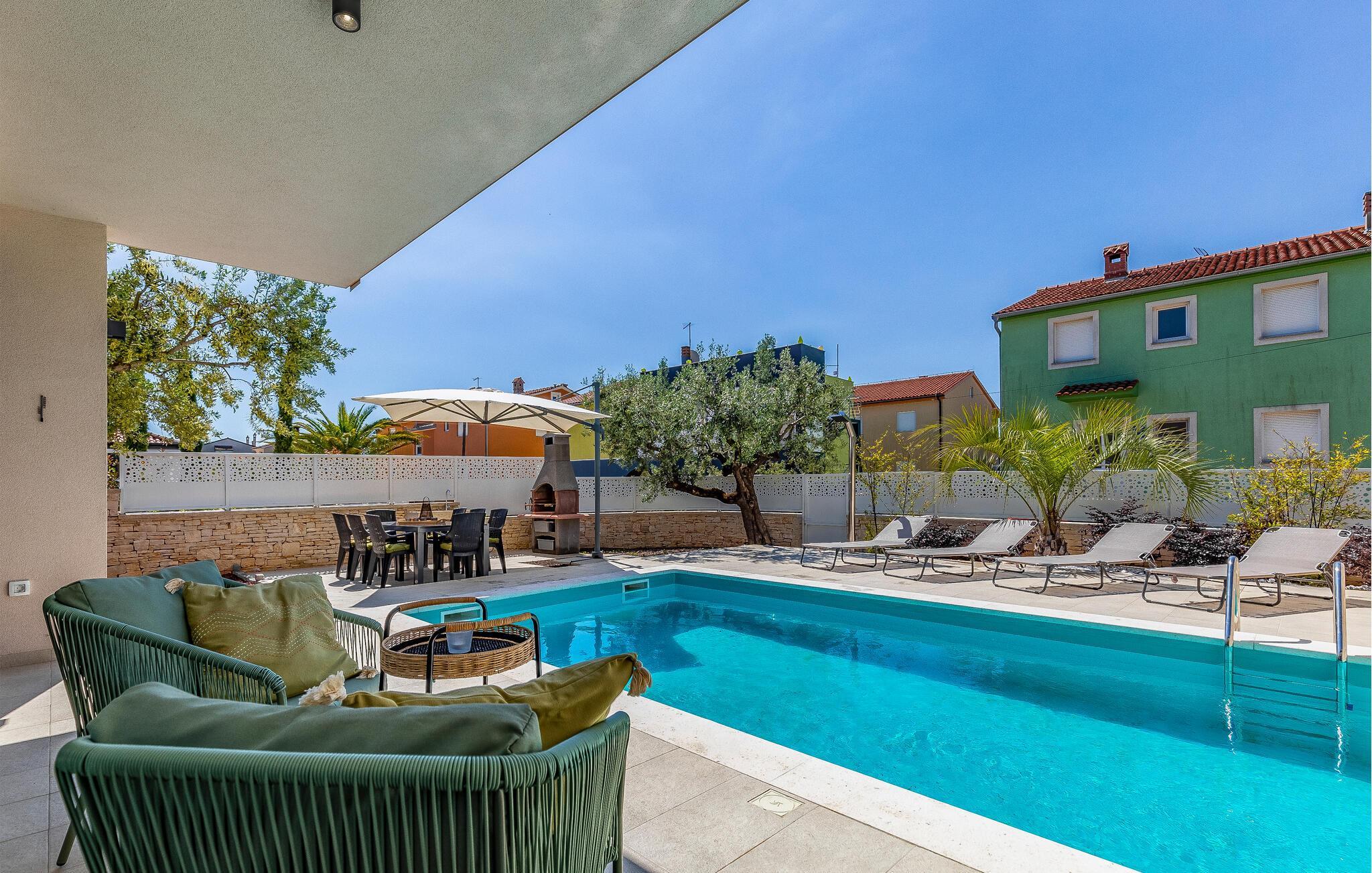 Glæd jer til årets bedste dage i dette moderne feriehus med pool tæt på centrum af Fazana.
