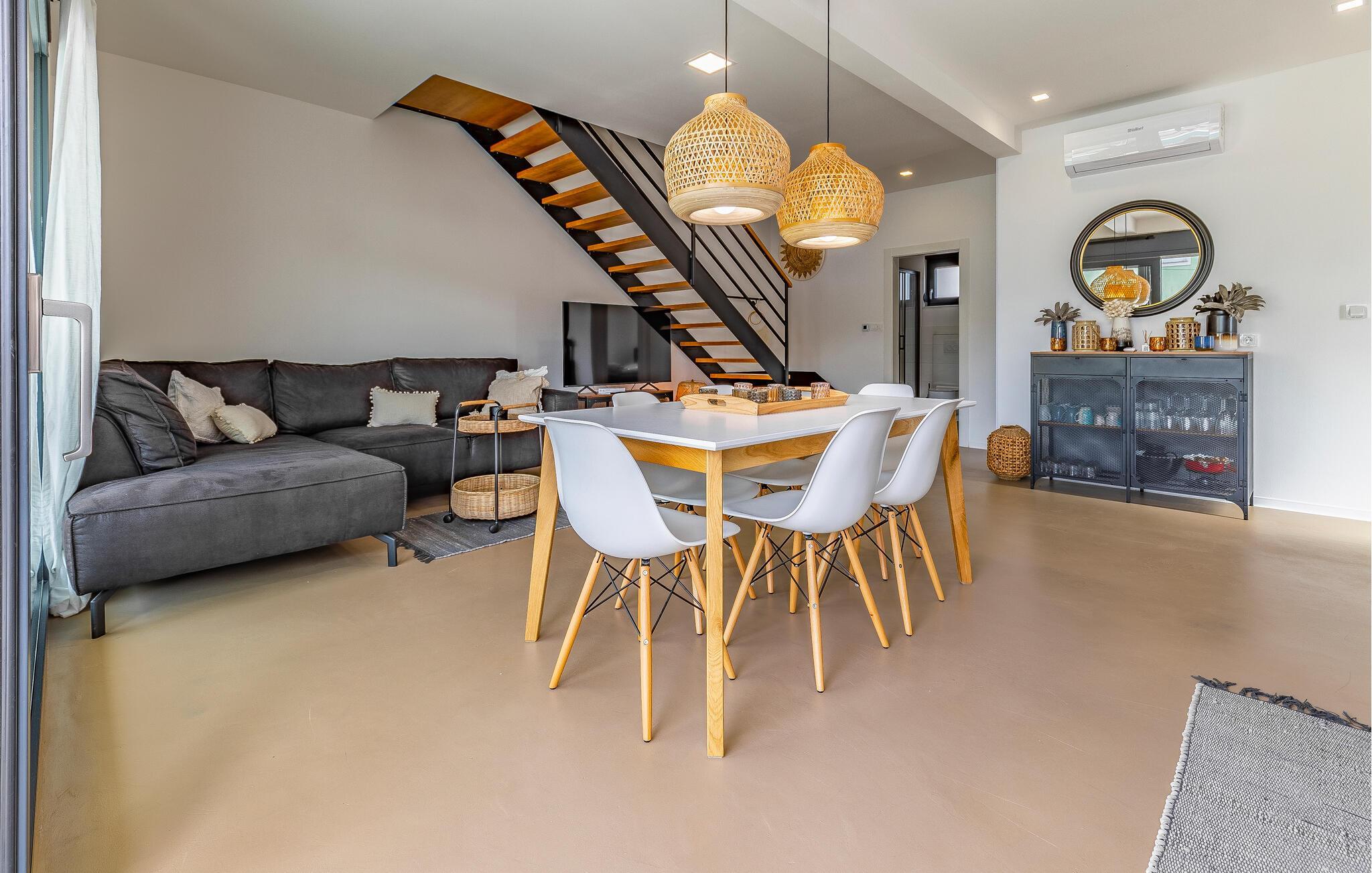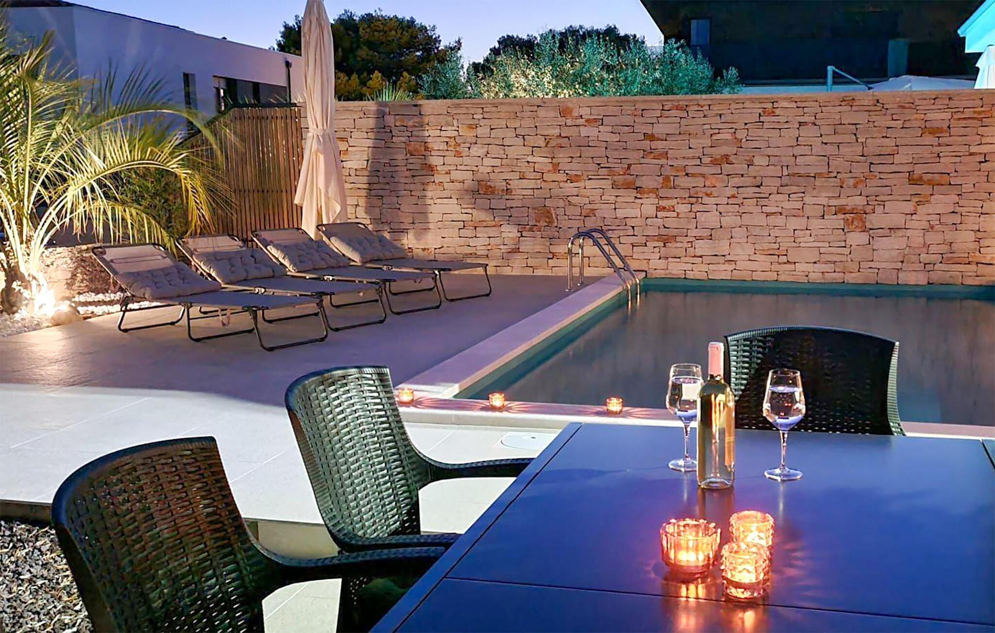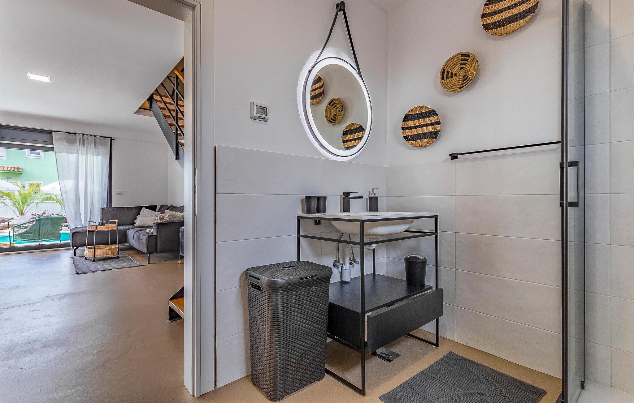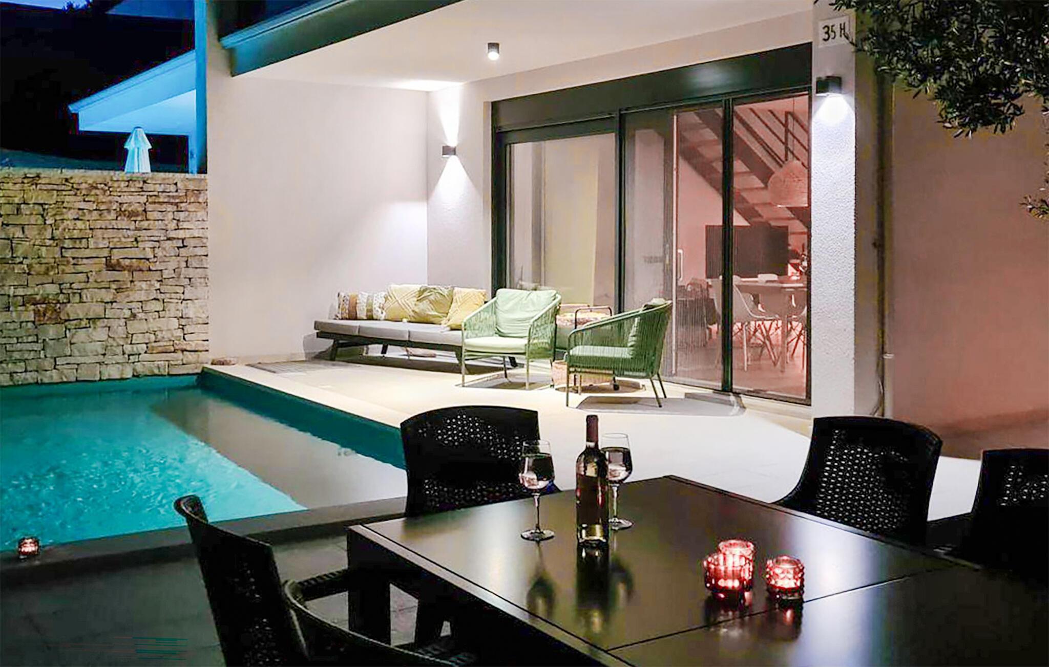 Huset byder på masser af plads og rigelig med komfort til en ferie med en større familie eller venneflok. Indretningen fremtræder både moderne og hyggelig og indbyder til mange hyggelige fællesstunder. Giv jer god tid til madlavningen i det veludstyrede køkken og nyd måltiderne på terrassen. Der går en skydedør fra stuen ud til terrassen, så I kan kombinere ude- og indeliv ganske gnidningsfrit. På de varme dage er det bare at finde et dejligt spot i solen eller skyggen. Skal I køle jer af, dypper I jer i poolen så tit, I lyster. Nyd snacks og lækre drinks, inden I trasker mod havet eller til centrum af Fazana.