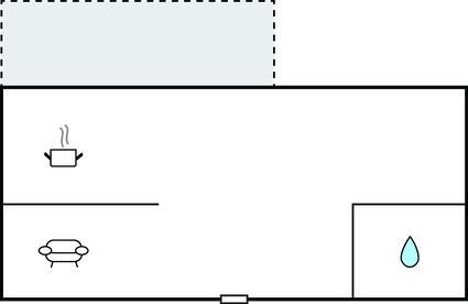 Opholdsstue/køkken 15m2 - 2 Sovepladser. (Dobbeltseng(e)). 1 Soveplads. (Sofa, madras eller lignende).