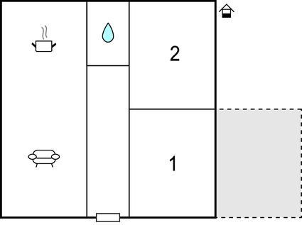 Opholdsstue/køkken - 1 Soveplads. (Sofa, madras eller lignende).
