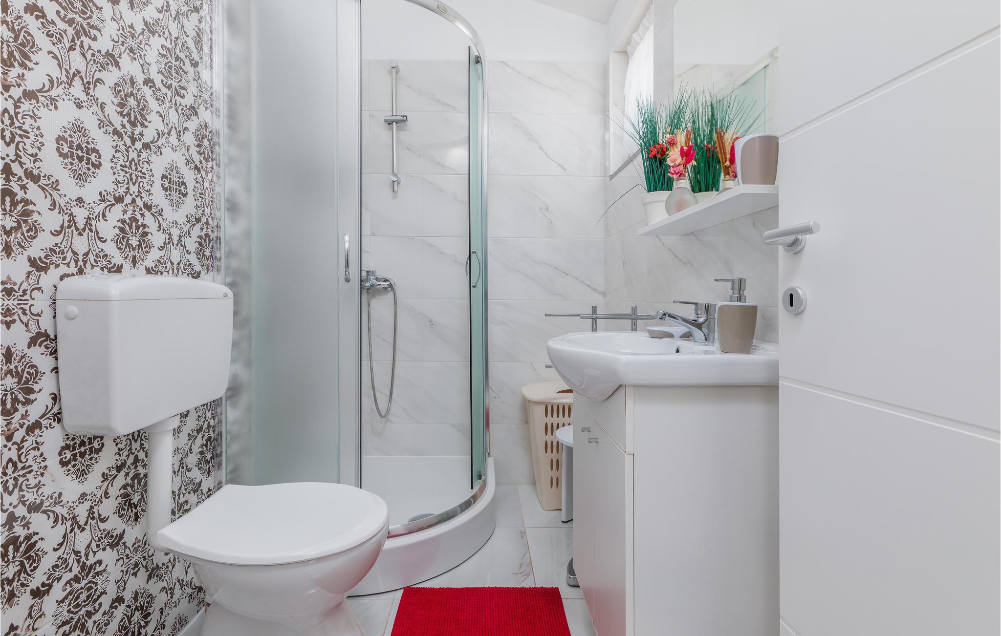Badeværelse (nr. 1) - WC. Varmt og koldt vand. Bruser