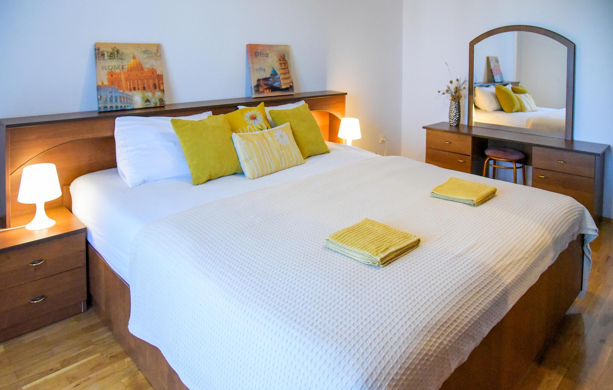Denne ferielejlighed, i den lille by Fazana, strækker sig over hele to etager der er forbundet med indre trappe. Den er komfortabelt og enkelt indrettet og meget rummelig. I stueplan er der opholdsrum og på første sal soveværelser. Tag en tur ud til øerne og lad jer fortrylle af den uberørte og usædvanlige flora og fauna. I Fazana er der mange spisesteder og cafeer, hvor I kan smage på regionens skønne rettet og nyde den flotte udsigt ud over havet. Pula er kendt for sine mange interessante former for sommerunderholdning og sit amfiteater, hvor der bl.a. afholdes koncerter under aftenhimlens mange stjerner.