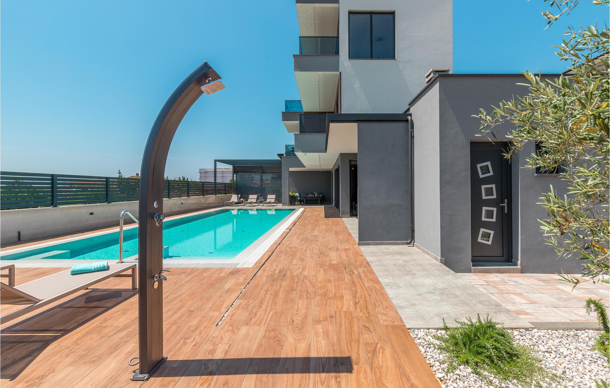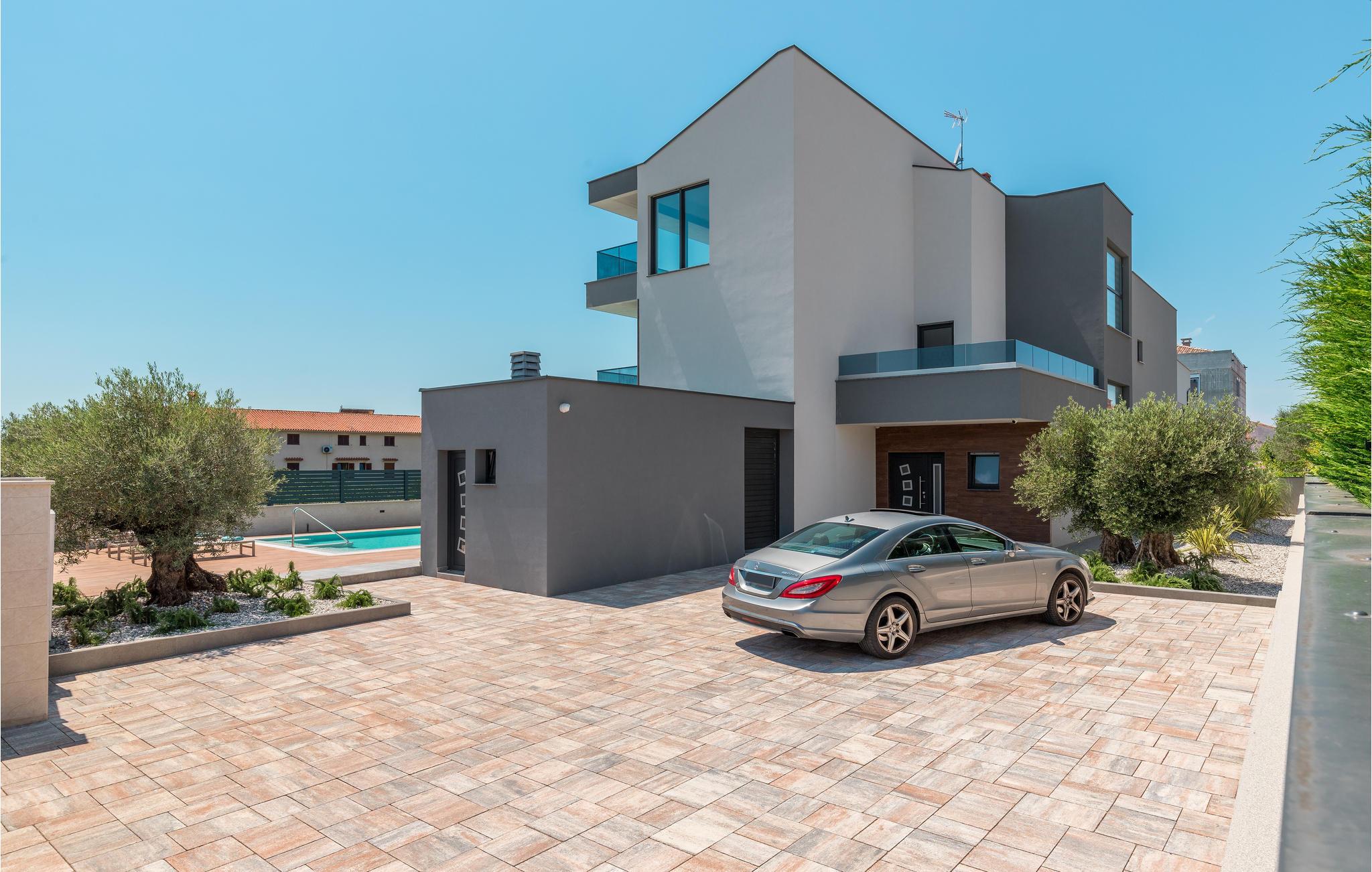 Dette smukke sommerhus i moderne stil har en fantastisk beliggenhed i den maleriske by Fažana.