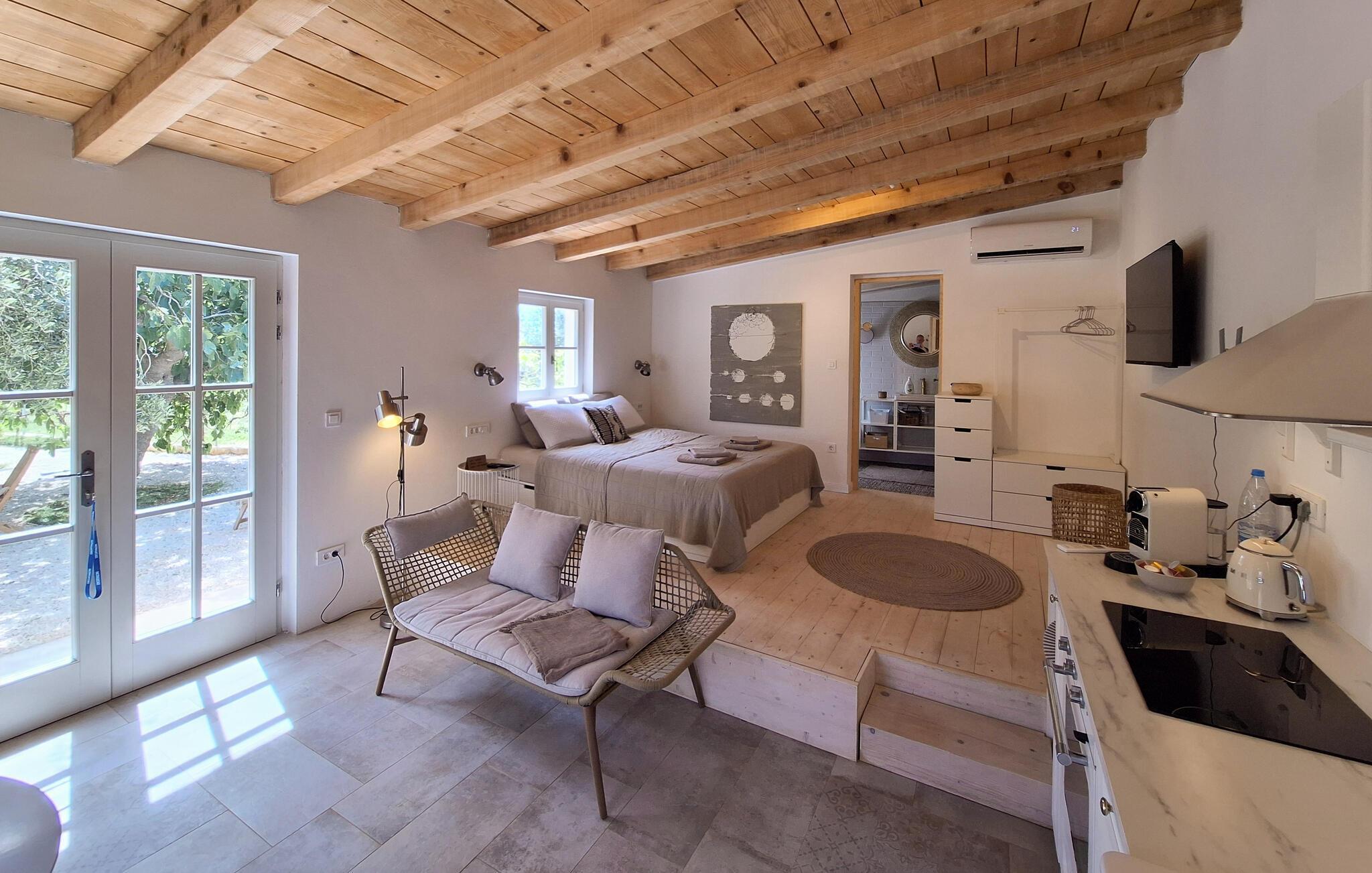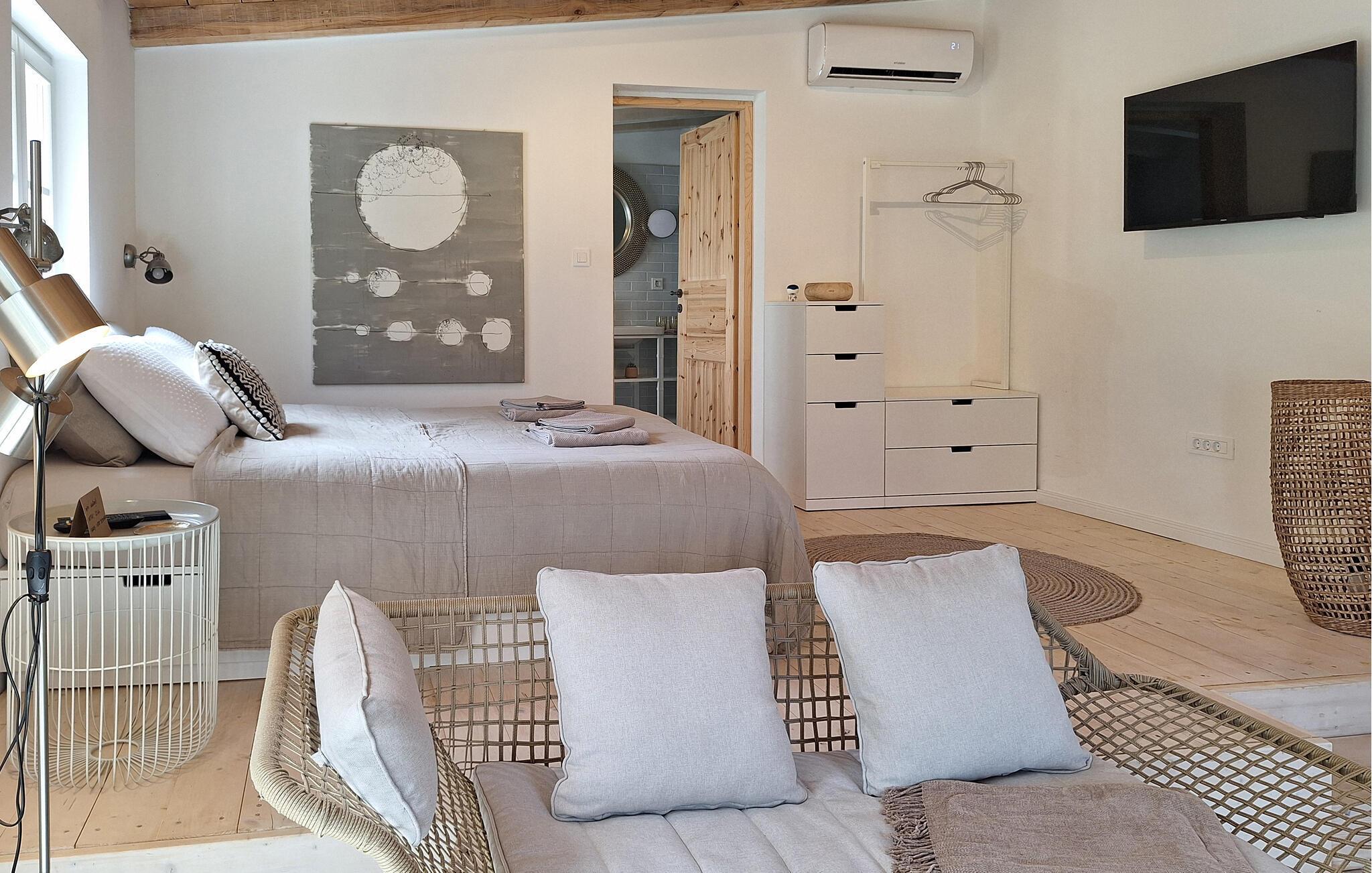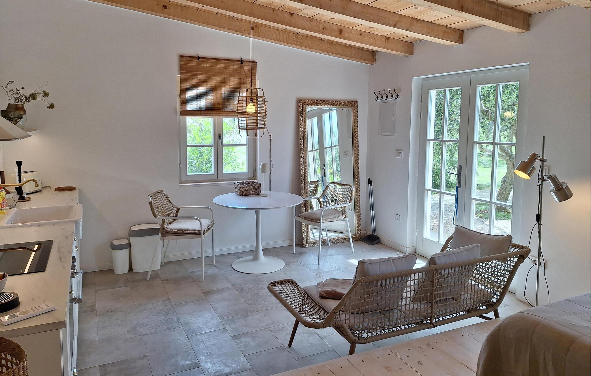 Dette hyggelige og charmerende feriehus byder dig velkommen i udkanten af Fazana. Nyd denne fantastiske idyl med din elskede, som giver dig mulighed for at slappe af og lade alle dine hverdagslige bekymringer bag sig. I det lyse og kompakte hus er alt i et skønt opholdsrum. Her kan du sove, lave mad og spille kort. Træd ud i haven, hvor du kan spise morgenmad under oliventræerne. Du kan også spille bordtennis eller ligge i solen. Oplev den maleriske Fazana og gå en tur gennem gyderne og langs den hyggelige havn. Besøg restauranterne og tavernerne og nyd traditionelle istriske retter. Du kan også slappe af på Adriaterhavets smukke stenstrande og dykke ned i det smukke hav. Besøg Brijuni National Park og den nærliggende berømte by Pula, som vil glæde dig med mange seværdigheder og interessante begivenheder i sommermånederne. God fornøjelse i Istrien!