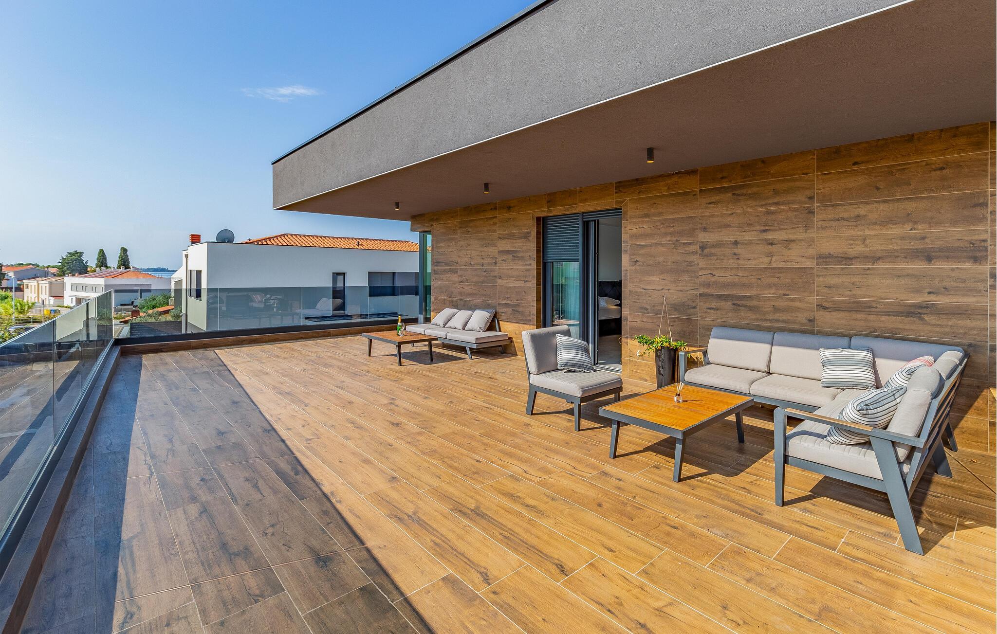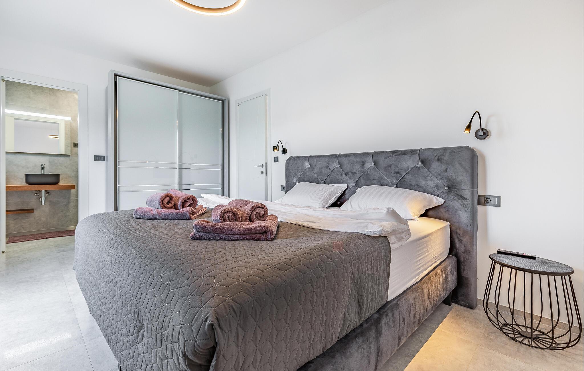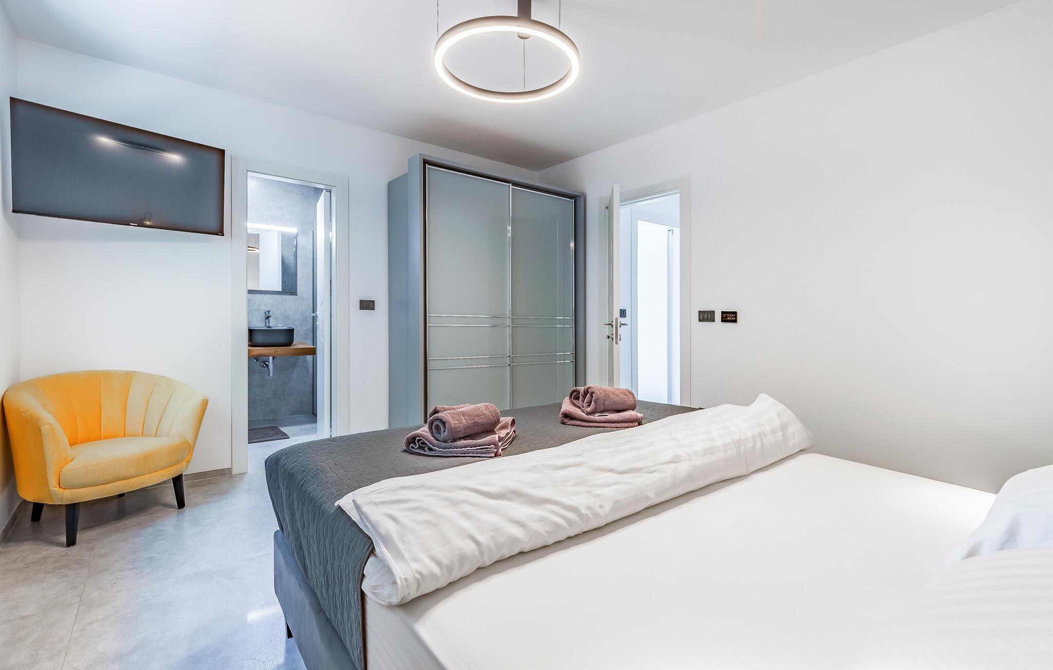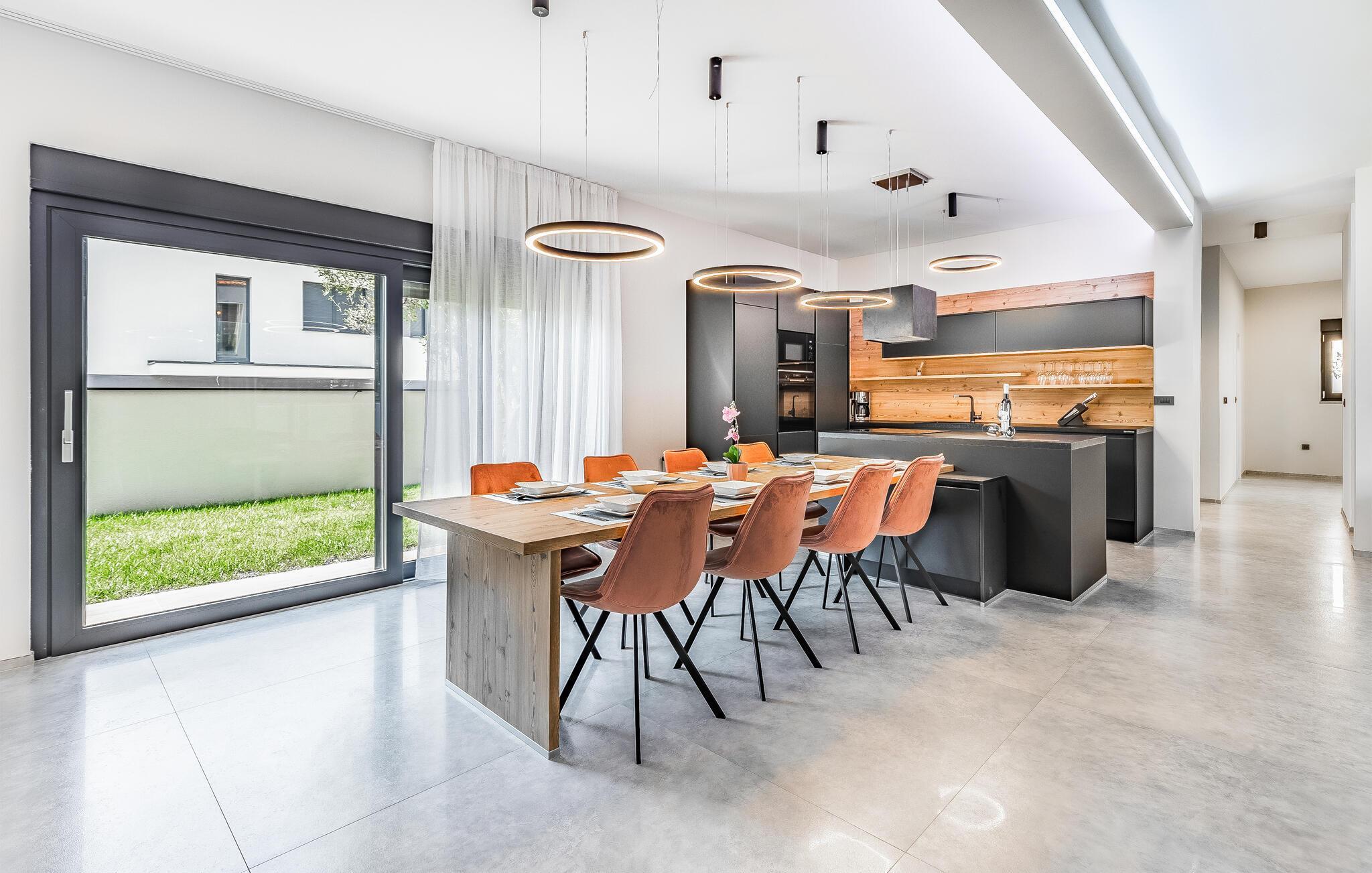 Tilbring ferien i denne luksuriøse villa i Fazana, som vil imponere jer med sit elegante design og kvalitetsløsninger. Den åbne opholdsstue i stueetagen giver jer masser af plads til tid sammen, uanset om I laver mad i det rummelige køkken eller spiller et spil billard. Ovenpå er der private soveværelser med eget badeværelse, nogle med udgang til den store terrasse, ideelt til afslappende yogaøvelser i morgensolen. Slap af i den opvarmede indendørs pool, nyd saunaen eller lounge på liggestolene på den rummelige terrasse.