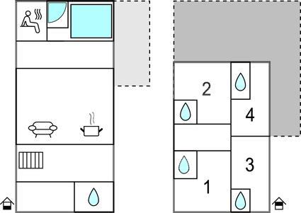 Badeværelse 6m2 (nr. 1) - WC. Varmt og koldt vand. Bruser