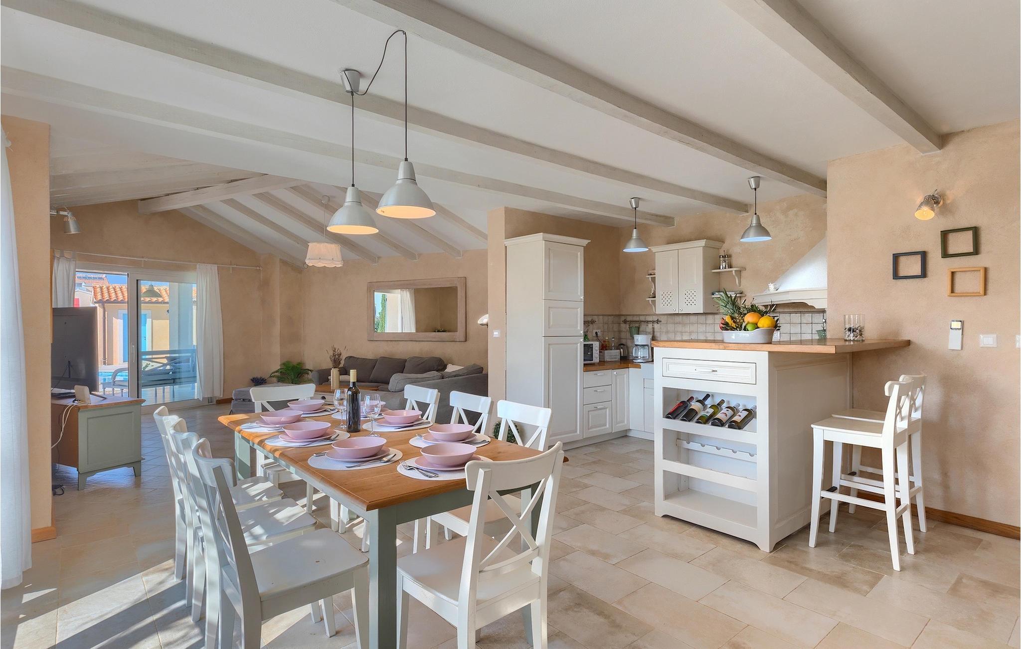 Die Küche ist mit allem ausgestattet, was Sie für die Zubereitung köstlicher Mahlzeiten benötigen. Wenn Sie Ihre Mahlzeiten im Freien einnehmen möchten, können Sie dies sehr gerne tun. Außerhalb der Villa ist ein Grill, sowie ein großer Essbereich vorhanden. Genießen Sie Ihren Kaffee oder Tee auf der Terrasse und entspannen Sie am Pool auf den Liegestühlen.