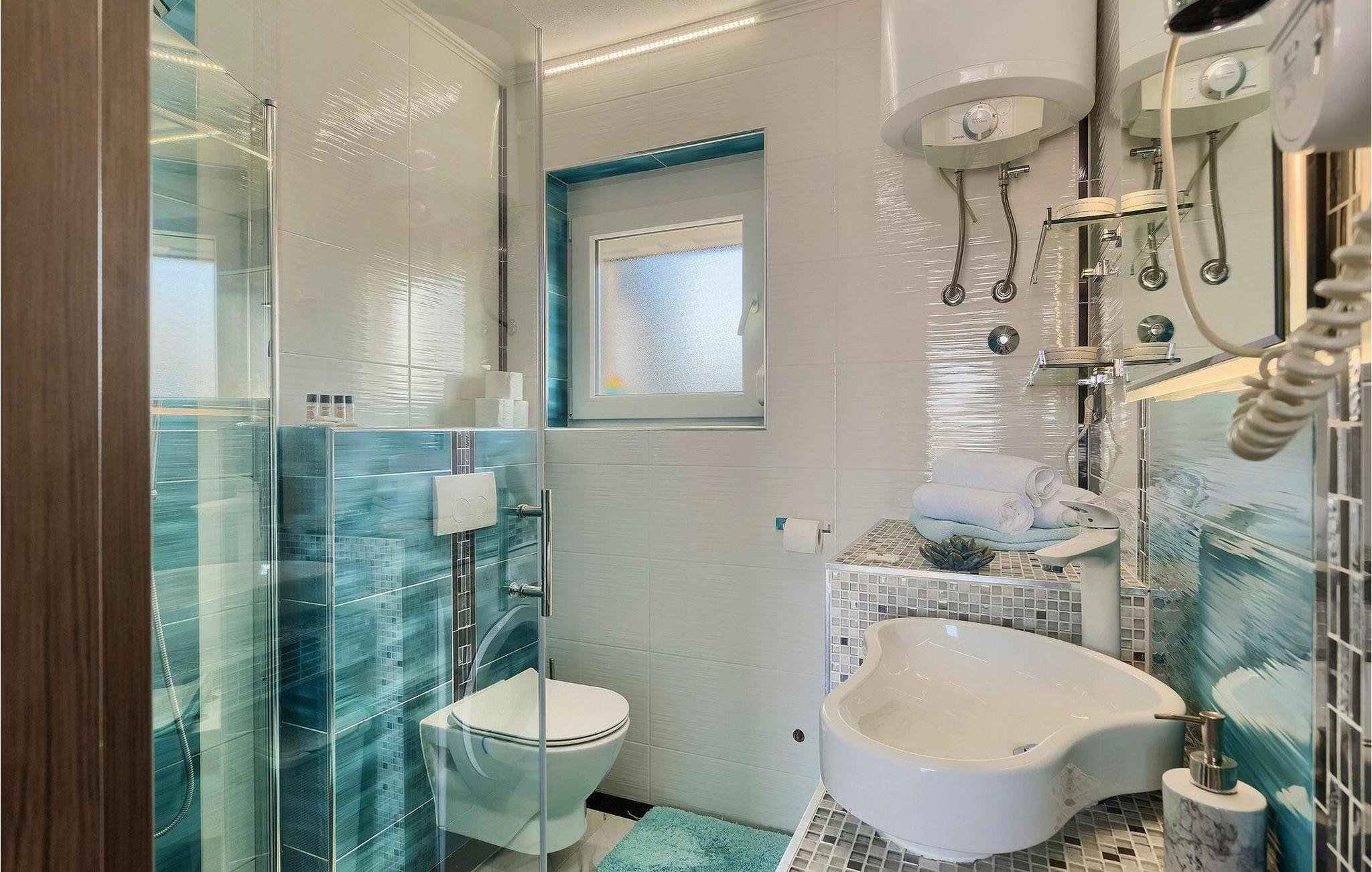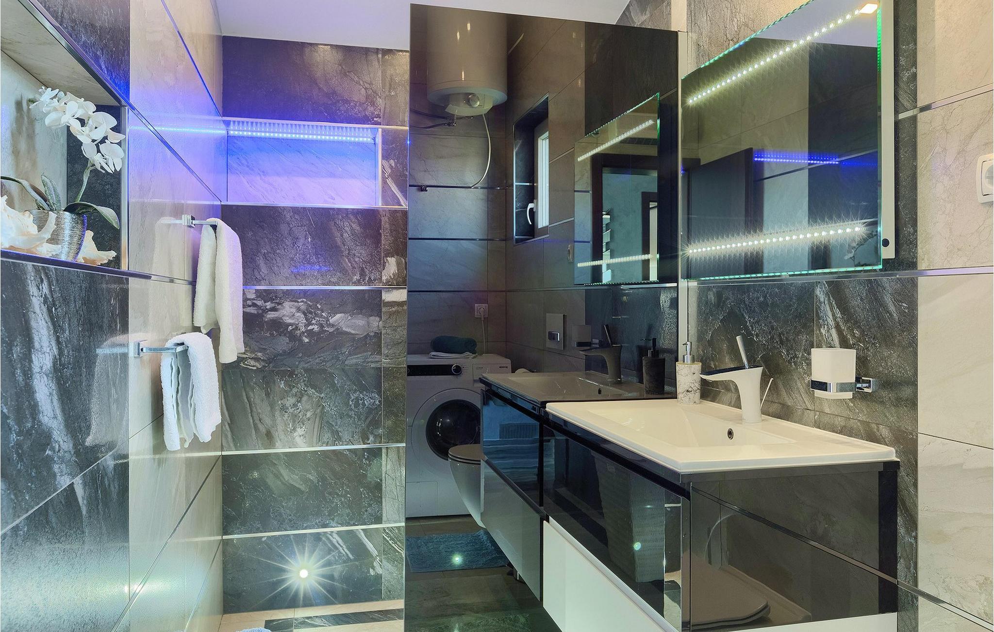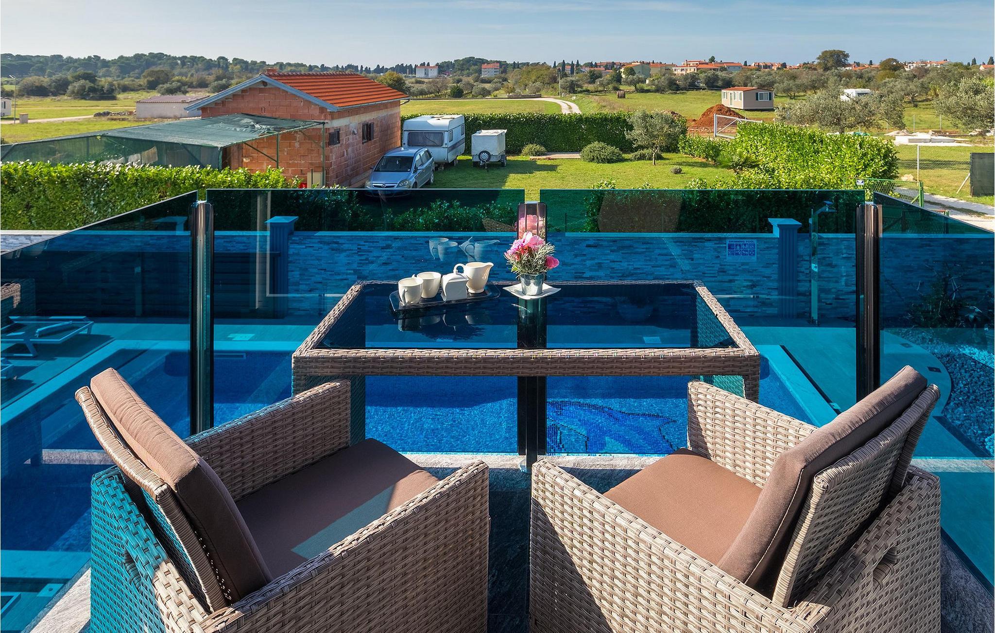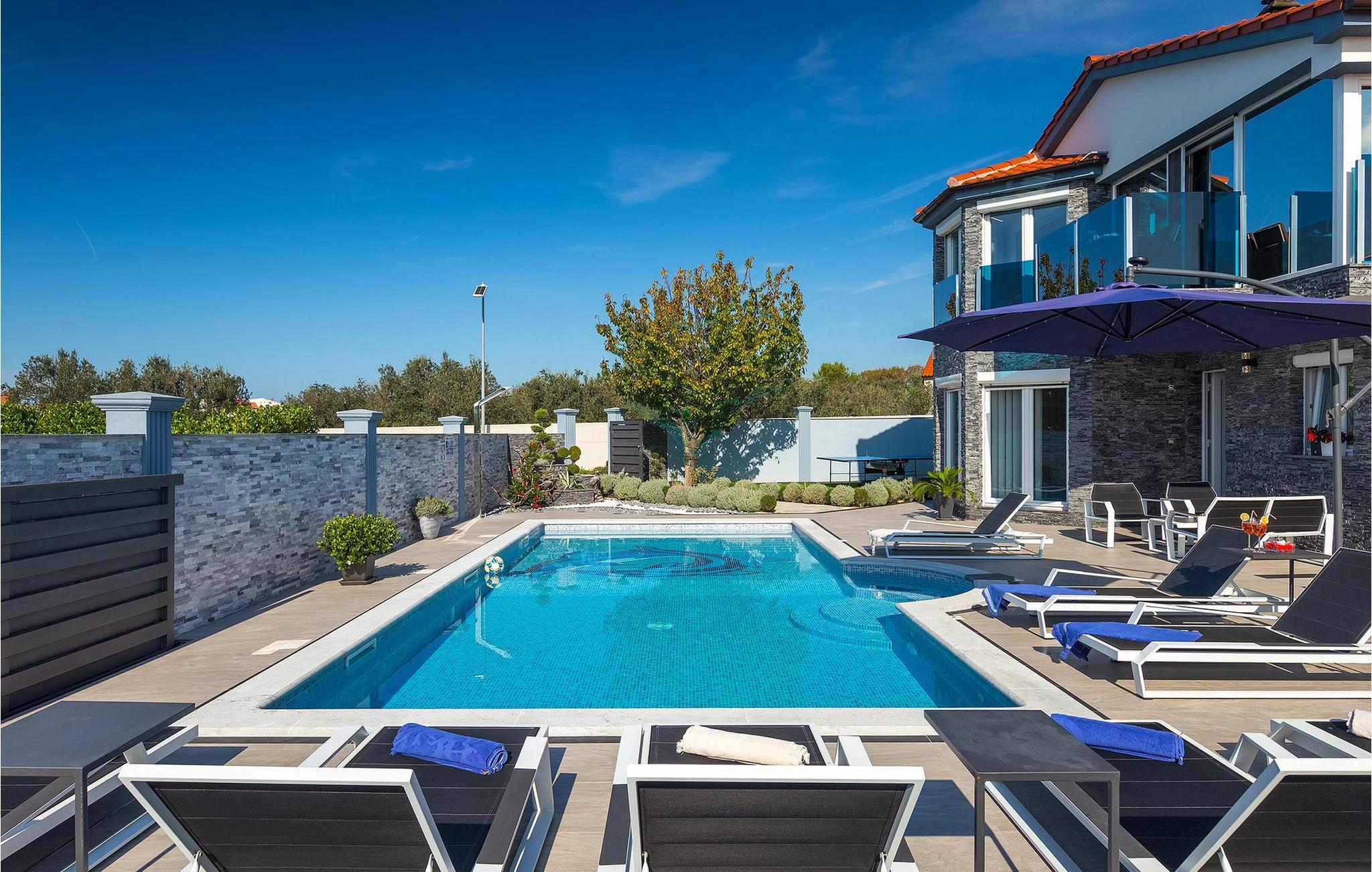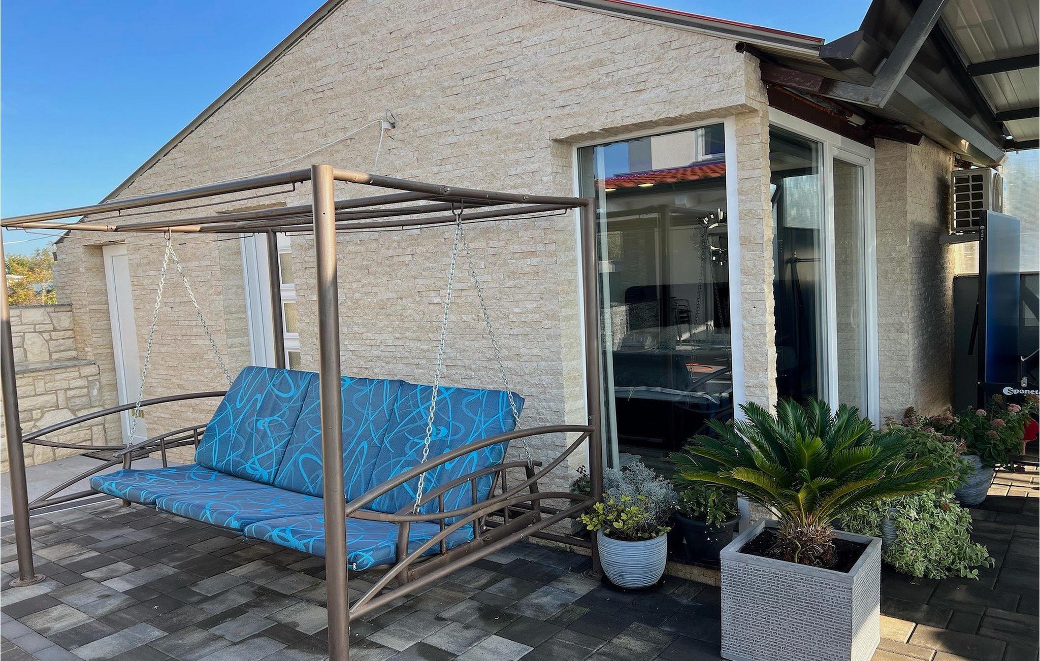 Villa Danijela er en dejlig familievilla beliggende i den lille by Fažana, ideel til en afslappende ferie tilbragt i Istrien. I alt 10 gæster kan bo i villaens 4 smagfuldt indrettede værelser fordelt på 2 etager. Villa Danijelas særlige kendetegn er, at den har to separate enheder forbundet af en udendørs trappe. Du vil være i stand til at tilbringe værdifuld familietid sammen, mens du bevarer dit privatliv på denne måde. Et soveværelse med en dobbeltseng, et med en enkeltseng, et badeværelse med bruser, en rummelig opholds- og spisestue, et fuldt udstyret køkken og adgang til villaens udendørs rum er alle placeret i stueetagen. Vi er sikre på, at du vil tilbringe det meste af din tid udenfor af forskellige årsager. Hovedsageligt på grund af Villa Danijelas topfunktioner som den 38m2 opvarmede private pool, loungeområdet med liggestole, den omhyggeligt vedligeholdte have, trampolin og bordtennis til de unge, og kulgrillområdet til at lave lækre måltider. Når det er sagt, vil gæster i alle aldre have adgang til en række faciliteter for at gøre deres dag både behagelig og afslappende. Kælderen i Villa Danijela har et par træningsartikler som en boksesæk, et løbebånd, indendørs cykler og meget mere, så ud over alt det sjove kan du holde dig aktiv, mens du er på ferie. Ved at tage trappen på bagsiden af villaen kan du få adgang til villaens første sal med soveværelse med dobbeltseng, 1 enkelt soveværelse, 1 badeværelse samt en anden hyggelig stue med køkken, spiseplads og en balkon med en dejlig udsigt. Som en af de ekstra muligheder for overnatning er der et ekstra soveværelse i en separat bygning, der kan rumme 2 gæster. Anlægget har desuden et ekstra toilet med bruser, der har egen indgang. Slap af i den dejlige have, omkring poolen, tilbered grillretter eller bare solbad, mens du er kun 800 m væk fra de første sten- og sandstrande.Villa Danijela ligger i den smukke lille by Fazana, engang en berømt fiskerby og en god start punkt for at nå øen og nationalparken Brijuni. Denne position er perfekt til at besøge turistbyer som Pula (5 km væk) og romantiske Rovinj (30 km væk). Her kan du finde adskillige begivenheder om sommeren som festivalen for sardinfisk, men Fazana tilbyder også et rigt gastronomisk tilbud med et godt udvalg af toprestauranter og taverner ved kysten, der byder på kulinariske lækkerier fra Adriaterhavets middelhavskøkken. Pula blev bygget af romerne i 46 f.Kr. Selvom det er som et friluftsmuseum, er det største monument, du ikke bør gå glip af at besøge, det berømte amfiteater i byens centrum, bygget i det 1. århundrede. Amfiteatret er stadig hjemsted for mange begivenheder fra koncerter, filmvisninger til sportssammenkomster.