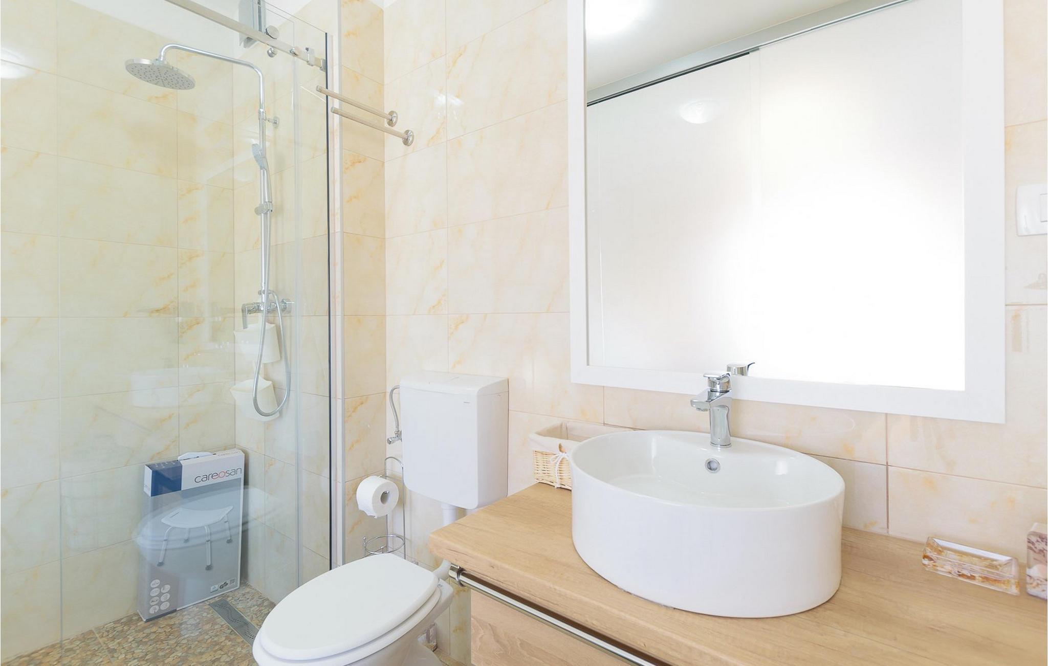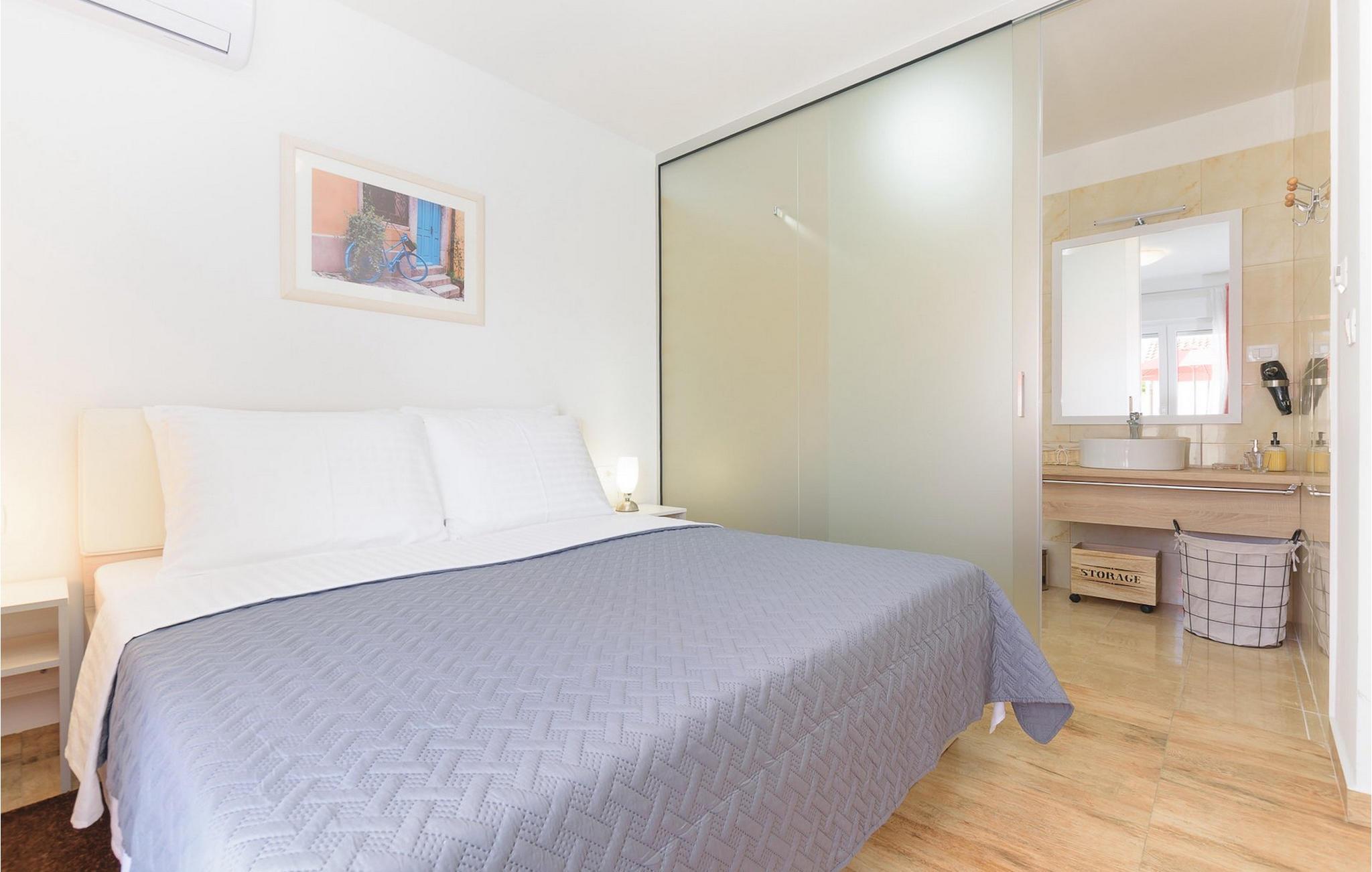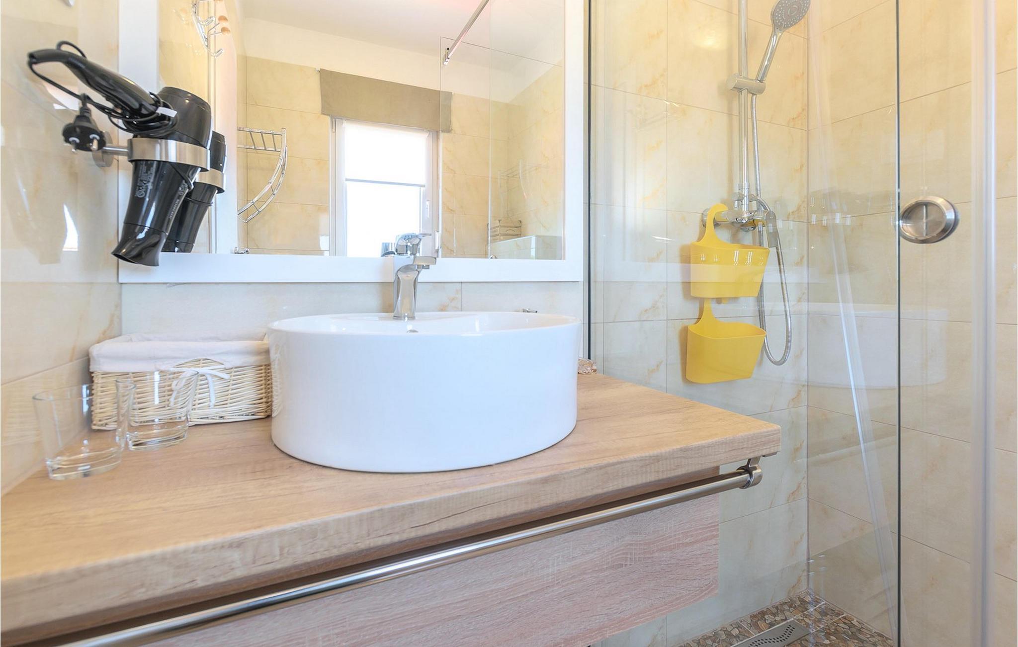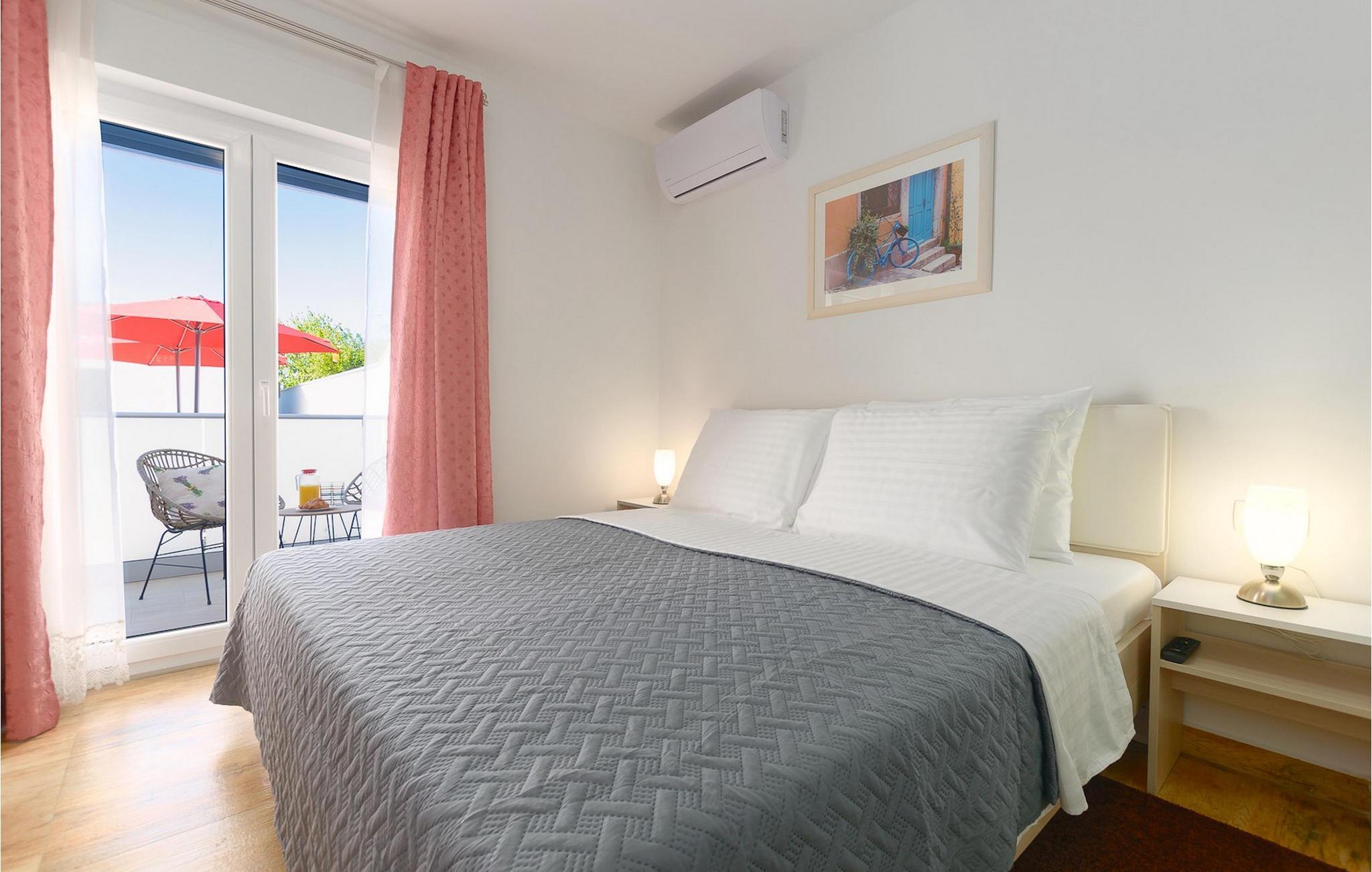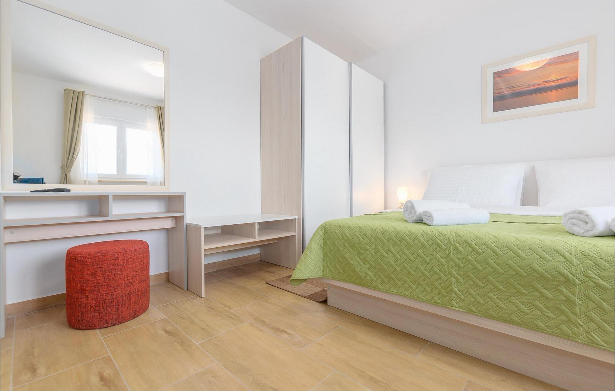 Villa Mala Vala, på Istriens vestkyst, inviterer dig til at tilbringe en afslappende ferie nær havet. Indkvarteringen for op til 12 gæster har et åbent-rum-koncept i stueetagen, der kombinerer opholds-, spise- og køkkenområderne i ét. Det rummelige, lyse værelse med varme farveaccenter skaber en hyggelig atmosfære. Ved siden af sofaen giver vinduerne i stueplan dig en smuk udsigt over og adgang til haven med den private pool. I køkkenet kan du lave dig en fremragende tekstureret espresso og nyde den på terrassen med udsigt til haven. I stueetagen finder du også to af de seks soveværelser, hvoraf det ene er forbundet med terrassen. Ovenpå venter de andre soveværelser på dig, et af dem med privat balkon. Alle soveværelser i denne villa har ensuite badeværelser med walk-in brusere. Derudover tager denne bolig din ferie til et ekstra afslappende niveau - et wellness-område findes på øverste etage. Der kan du bruge saunaen såvel som jacuzzien. Udenfor kan du bare forfriske dig selv på varme sommerdage i den private pool, lægge dig på en af liggestolene for at slikke sol eller tage plads i de komfortable havemøbler. På terrassen giver grillpladsen med spisebord og grill mulighed for at tilberede lækre måltider i den friske luft. Hvis du leder efter lidt sjov, er bordfodbolden på denne terrasse et godt valg, og de små kan glæde sig yderligere på legepladsen. Gør din næste ferie hyggelig og mindeværdig - book villa Mala Vala nu.Villa Mala Vala ligger i bygden Valbandon ved siden af den maleriske fiskerby Fažana. Kystlinjen fra Valbandon til Fažana er kendt for de lange stenstrande, der motiverer dig til at tilbringe en afslappende, smuk dag der. Du kan bruge promenaden ved havet til afslappede, omfattende gåture samt sportsaktiviteter. I det omkringliggende område finder du adskillige restauranter, især traditionelle taverner - prøv bestemt de istriske specialiteter. Du har måske muligheden for at være en del af "Valbandon ispod cripnje"- fiestaen, hvor du vil blive tilbudt autoktone, lokale måltider "ristet under klokken" - forkæl dig selv med et velsmagende måltid! Glem ikke at besøge Fažana, hvorfra du kan tage en båd til Brijuni National Park - en perfekt idé til en dagstur. Sørg også for at slentre gennem den største by i Istrien, Pula, fuld af historiske seværdigheder såsom det berømte amfiteater kaldet "Arena", og nyd den autentiske stemning.