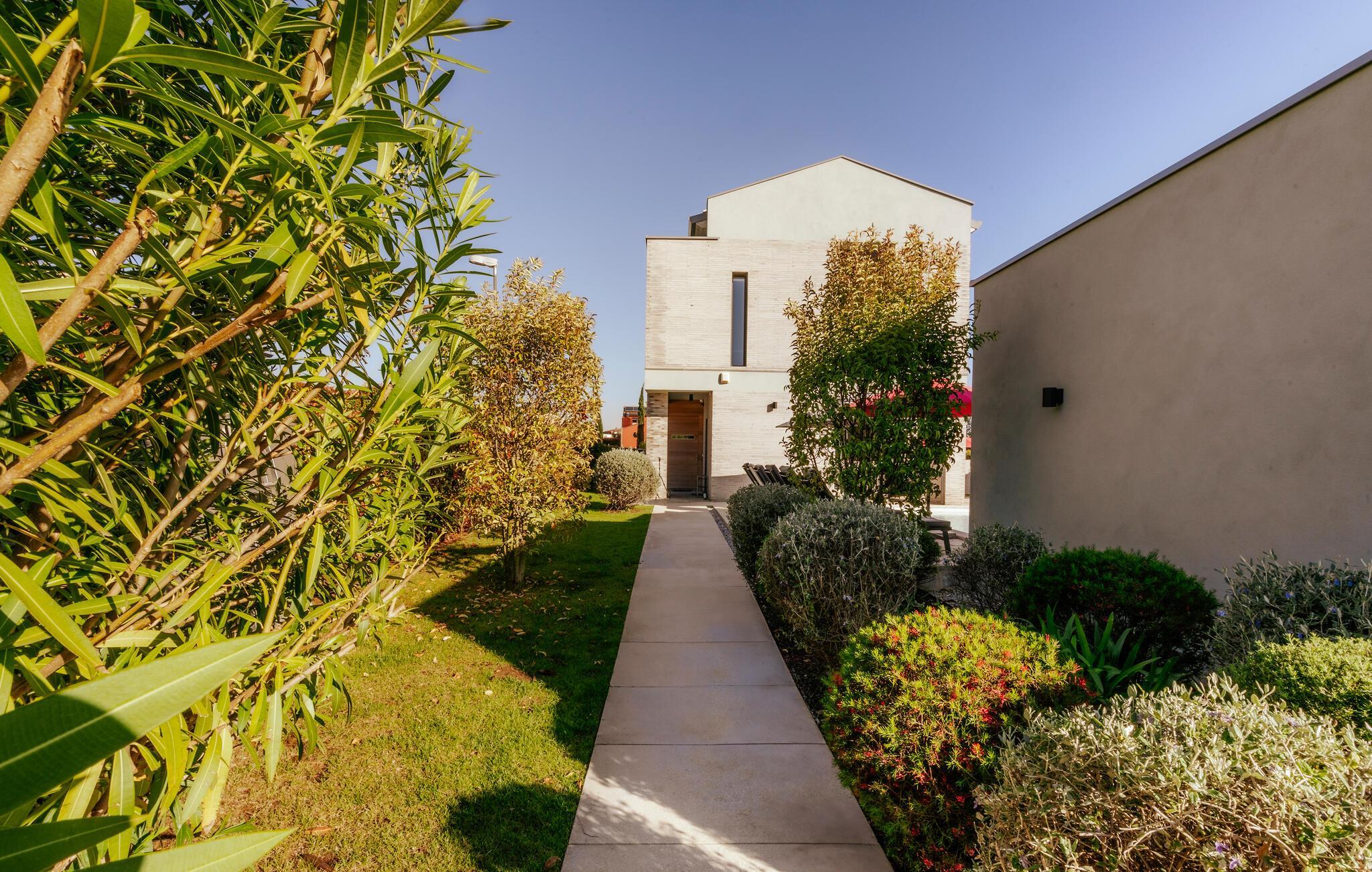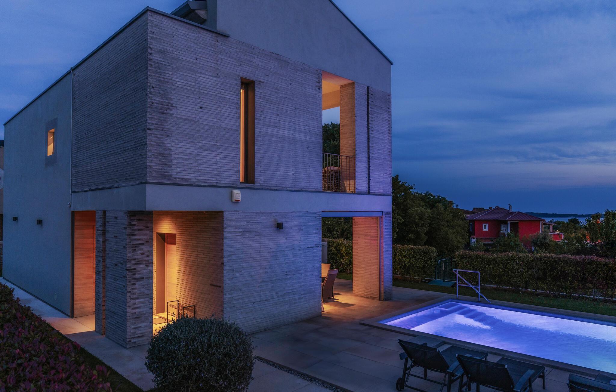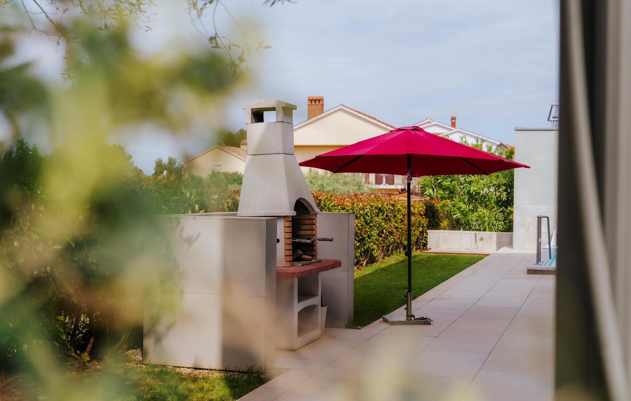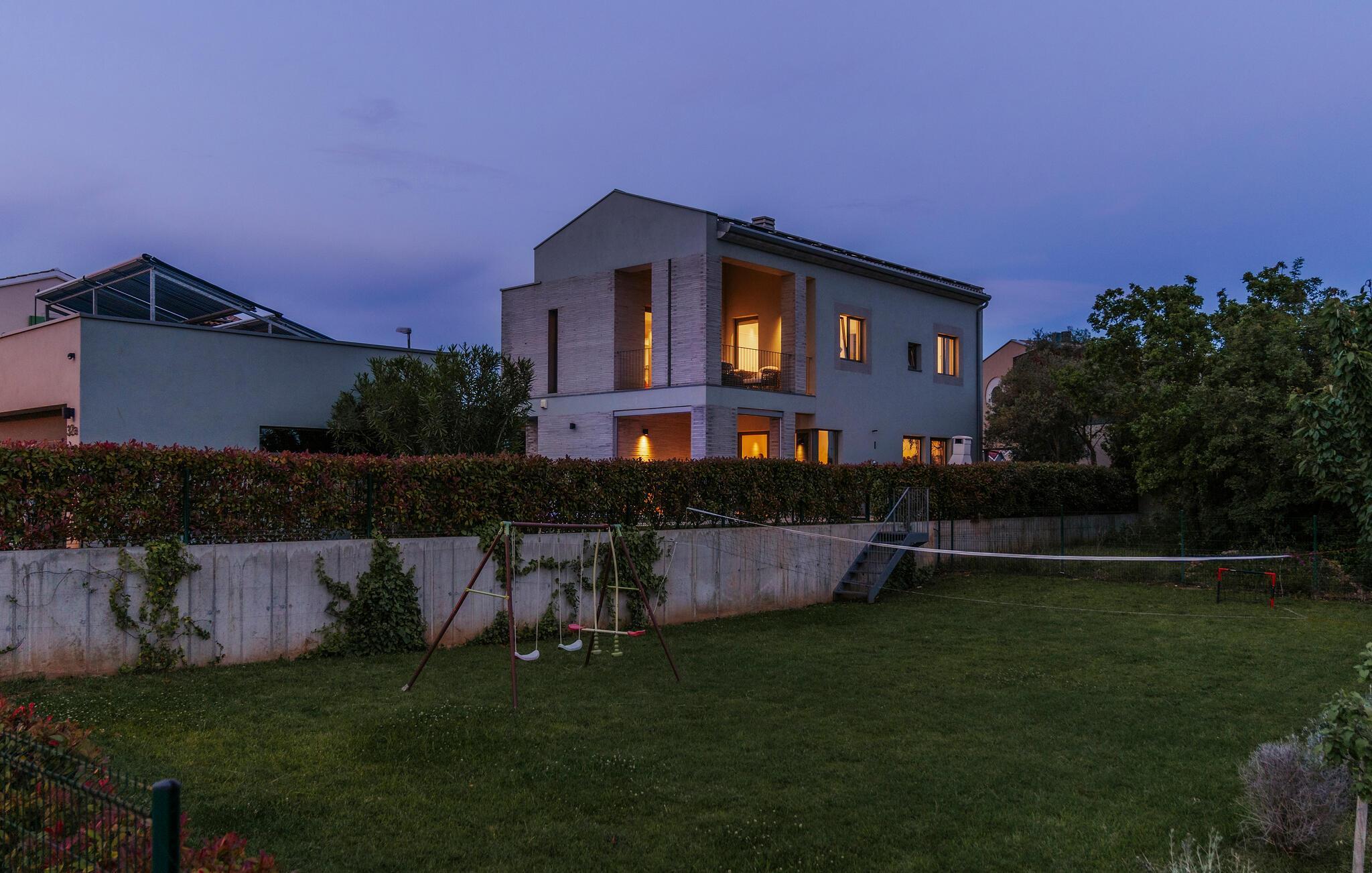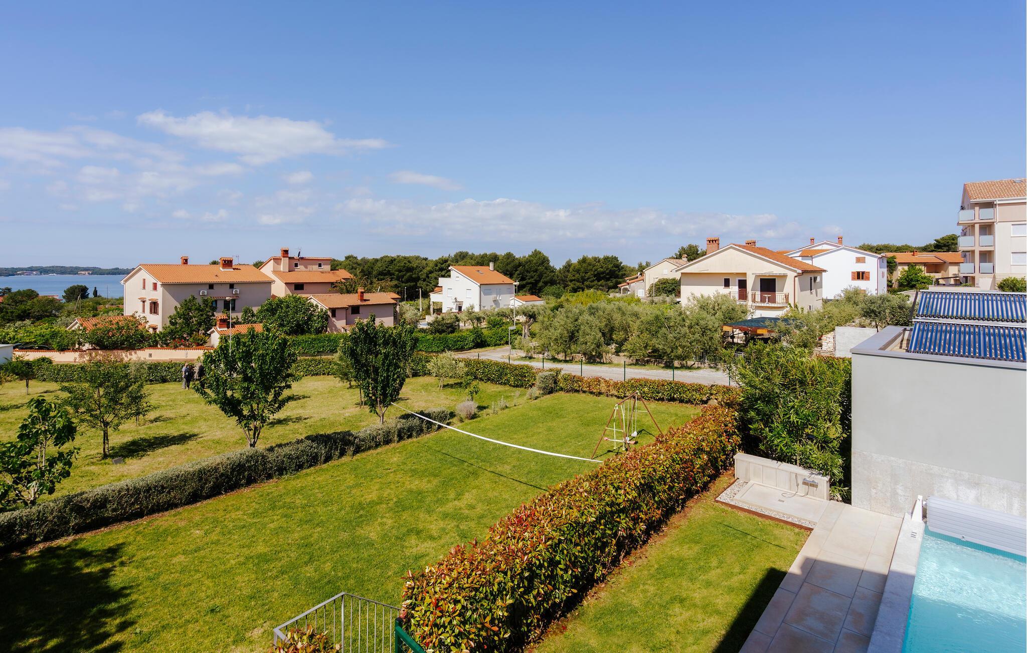 Villa Mima ist eine wunderschöne Villa in Fažana, perfekt geeignet für eine Familie oder Freundesgruppe von 6 Gästen. Die Villa bietet Gästen einen großen Garten und einen privaten Pool für die dringend benötigte Erfrischung an heißen Sommertagen. Erwachsene können es genießen, auf den Liegestühlen zu entspannen und die warme Mittelmeersonne zu genießen, während die Kinder im Pool spielen. Sie können traditionelle Kroatische Speisen auf dem Grill zubereiten und diese Köstlichkeiten im überdachten Essbereich draußen genießen. Für zusätzlichen Spaß stehen den Gästen Citybikes und E-Bikes sowie gegen Aufpreis E-Motorräder zur Erkundung der Umgebung zur Verfügung. Das Innere der Villa Mima ist stilvoll eingerichtet und sehr gut ausgestattet. Dabei finden die Gäste im Erdgeschoss ein geräumiges Wohnzimmer mit TV und Kamin, eine gut ausgestattete Küche und einen gemütlichen Essbereich sowie ein separates WC. Auf der ersten Etage befinden sich 3 Schlafzimmer und ihre 3 en-suite Badezimmer. 2 Schlafzimmer verfügen über Doppelbetten, während das 3. Schlafzimmer über 2 Einzelbetten verfügt, die zusammengeschoben werden können. Jedes Badezimmer verfügt über eine Dusche, während alle Schlafzimmer über einen Fernseher verfügen und voll klimatisiert sind. Die Gäste können ihren ersten Morgenkaffee von den Balkonen im Obergeschoss mit schönem Meerblick genießen. Die Villa Mima liegt außerdem nur 400 m vom Strand entfernt, was zusätzlichen Spaß für die ganze Reisegruppe bedeutet. Wenn Sie während Ihres Urlaubs in Istrien hervorrageFažana ist ein ausgezeichnetes Urlaubsziel für alle, die schöne Strände, klares Meer, ein warmes mediterranes Klima und freundliche und hilfsbereite Einheimische suchen. Dieses Urlaubsziel hat eine interessante Geschichte und Tradition, seine Straßen sind gefüllt mit dem, was viele als "wahren istrischen Charme" bezeichnen, und die Stadt hat ein ausgezeichnetes Angebot für alle Gastronomieliebhaber. Fažana, wie auch Istrien im Allgemeinen, ist bekannt für sein Olivenöl, Fischgerichte, Trüffelgerichte und eine Vielzahl anderer traditioneller Spezialitäten. Sie können in exquisiten Restaurants direkt an der Küste der Stadt speisen und die warmen Sommerabende mit Ihrer Liebsten bei einem romantischen Spaziergang genießen. Die natürliche Schönheit dieser Stadt und der umliegenden Strände sollte nicht übersehen werden. Viele Strände sind für Kinder geeignet, sodass dem Familienurlaub Ihrer Träume nichts im Wege stehen sollte. Diese Lage ist auch ideal für Tagesausflüge in andere großartige Städte wie Pula und Rovinj sowie den atemberaubenden Nationalpark Brijuni. Sie werden es nicht bereuen, wenn Sie Ihren Urlaub in Istrien und Fažana verbringen. Istrien wartet auf Sie!