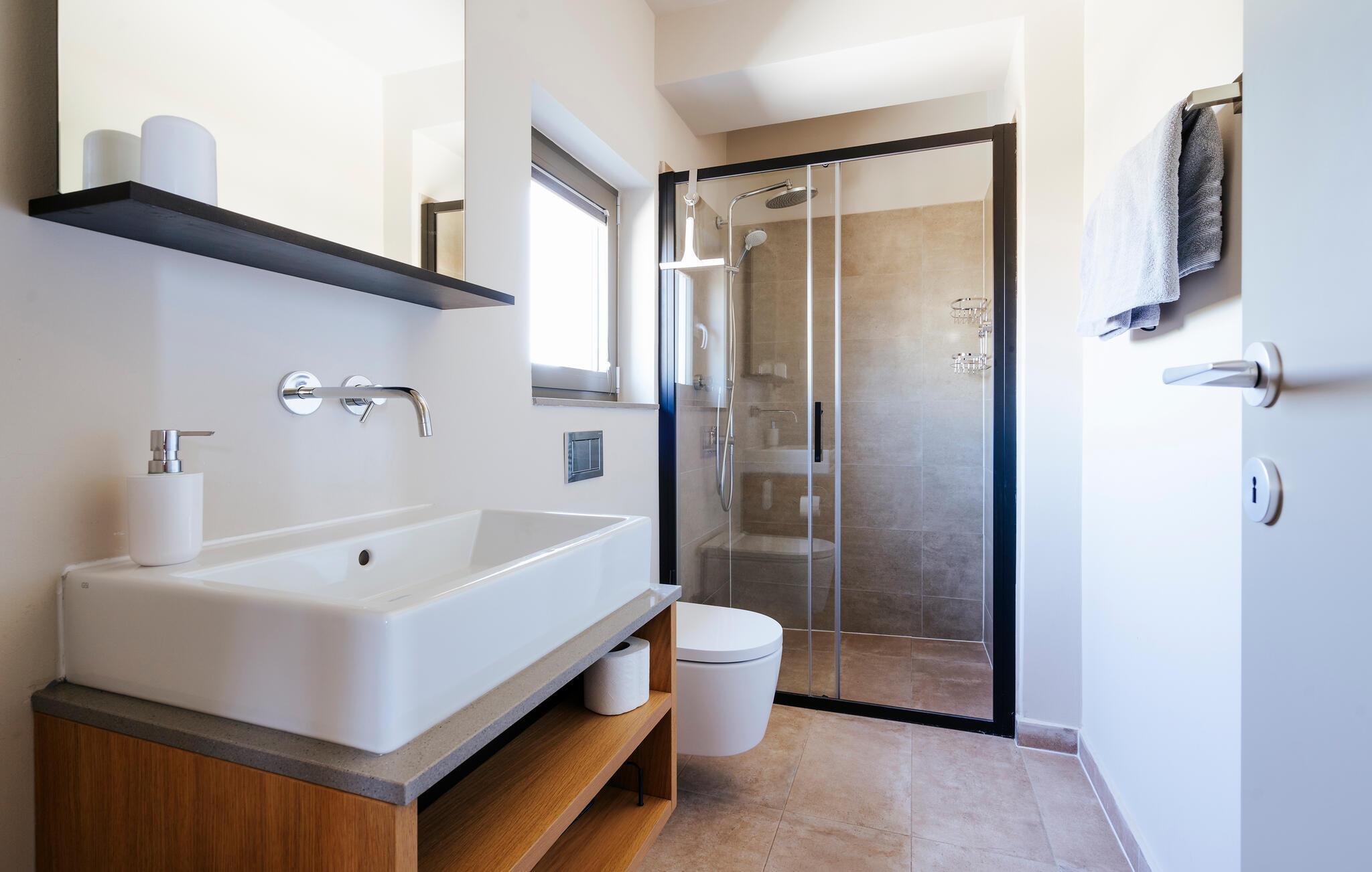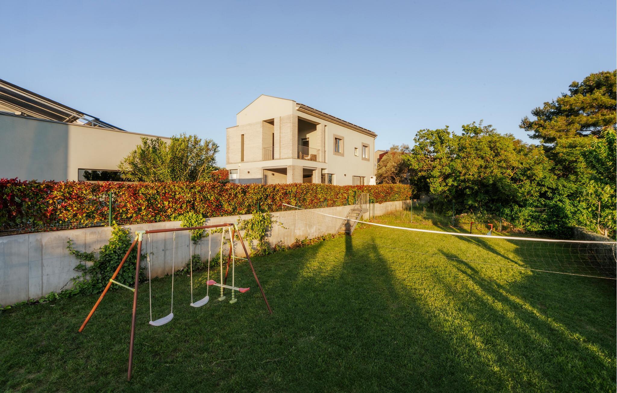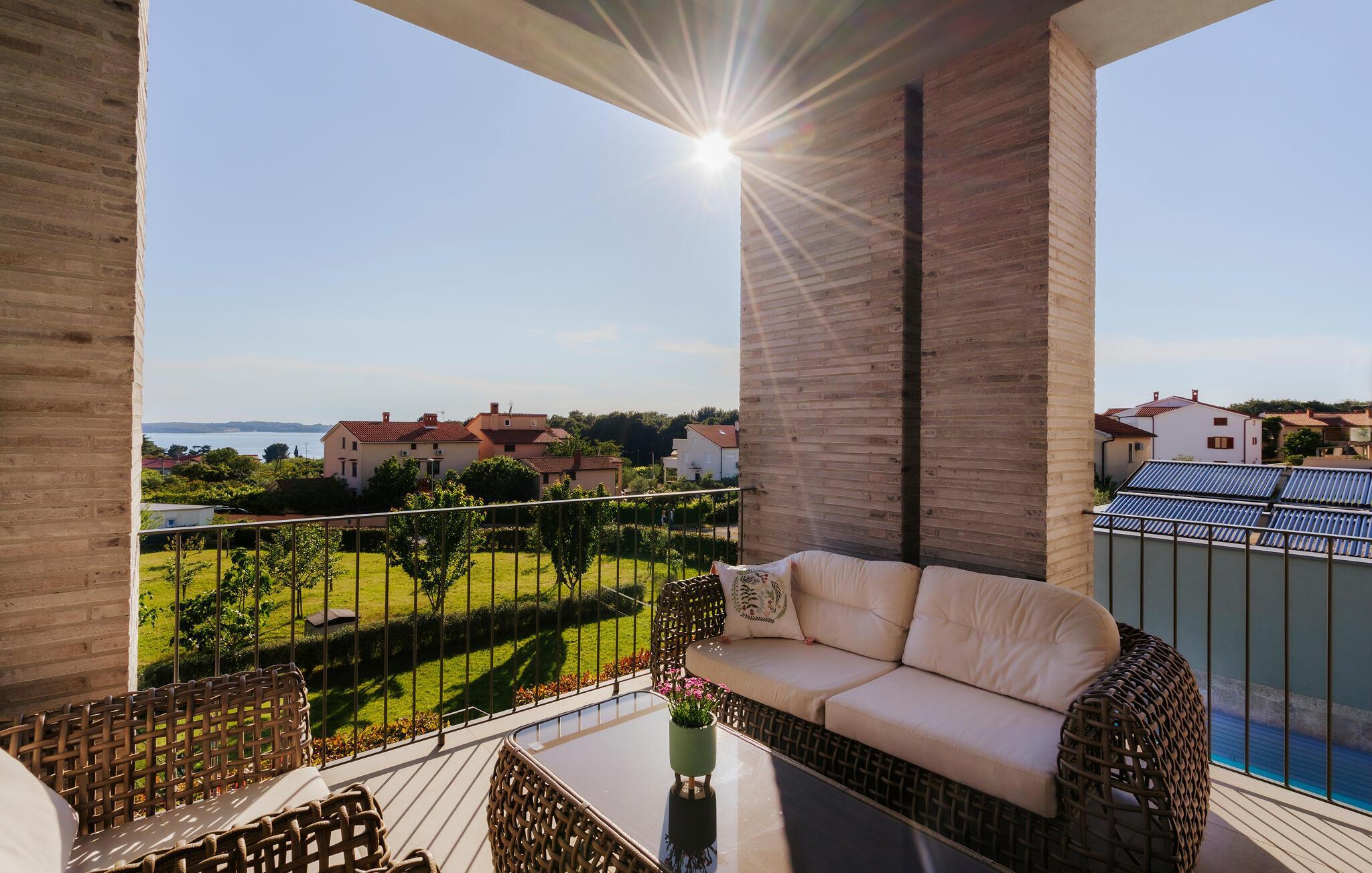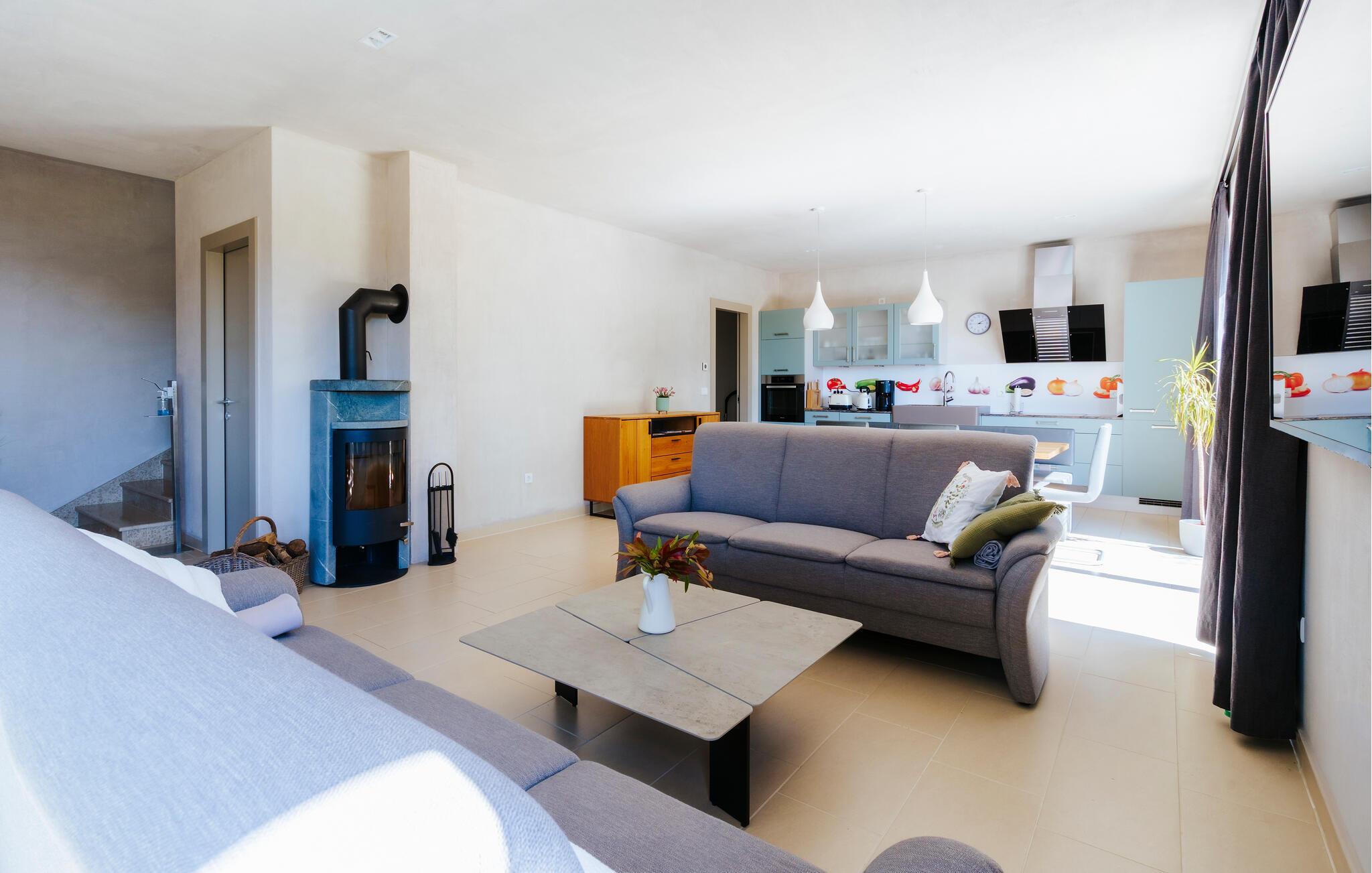 Villa Mima ist eine wunderschöne Villa in Fažana, perfekt geeignet für eine Familie oder Freundesgruppe von 6 Gästen. Die Villa bietet Gästen einen großen Garten und einen privaten Pool für die dringend benötigte Erfrischung an heißen Sommertagen. Erwachsene können es genießen, auf den Liegestühlen zu entspannen und die warme Mittelmeersonne zu genießen, während die Kinder im Pool spielen. Sie können traditionelle Kroatische Speisen auf dem Grill zubereiten und diese Köstlichkeiten im überdachten Essbereich draußen genießen. Für zusätzlichen Spaß stehen den Gästen Citybikes und E-Bikes sowie gegen Aufpreis E-Motorräder zur Erkundung der Umgebung zur Verfügung. Das Innere der Villa Mima ist stilvoll eingerichtet und sehr gut ausgestattet. Dabei finden die Gäste im Erdgeschoss ein geräumiges Wohnzimmer mit TV und Kamin, eine gut ausgestattete Küche und einen gemütlichen Essbereich sowie ein separates WC. Auf der ersten Etage befinden sich 3 Schlafzimmer und ihre 3 en-suite Badezimmer. 2 Schlafzimmer verfügen über Doppelbetten, während das 3. Schlafzimmer über 2 Einzelbetten verfügt, die zusammengeschoben werden können. Jedes Badezimmer verfügt über eine Dusche, während alle Schlafzimmer über einen Fernseher verfügen und voll klimatisiert sind. Die Gäste können ihren ersten Morgenkaffee von den Balkonen im Obergeschoss mit schönem Meerblick genießen. Die Villa Mima liegt außerdem nur 400 m vom Strand entfernt, was zusätzlichen Spaß für die ganze Reisegruppe bedeutet. Wenn Sie während Ihres Urlaubs in Istrien hervorrageFažana ist ein ausgezeichnetes Urlaubsziel für alle, die schöne Strände, klares Meer, ein warmes mediterranes Klima und freundliche und hilfsbereite Einheimische suchen. Dieses Urlaubsziel hat eine interessante Geschichte und Tradition, seine Straßen sind gefüllt mit dem, was viele als "wahren istrischen Charme" bezeichnen, und die Stadt hat ein ausgezeichnetes Angebot für alle Gastronomieliebhaber. Fažana, wie auch Istrien im Allgemeinen, ist bekannt für sein Olivenöl, Fischgerichte, Trüffelgerichte und eine Vielzahl anderer traditioneller Spezialitäten. Sie können in exquisiten Restaurants direkt an der Küste der Stadt speisen und die warmen Sommerabende mit Ihrer Liebsten bei einem romantischen Spaziergang genießen. Die natürliche Schönheit dieser Stadt und der umliegenden Strände sollte nicht übersehen werden. Viele Strände sind für Kinder geeignet, sodass dem Familienurlaub Ihrer Träume nichts im Wege stehen sollte. Diese Lage ist auch ideal für Tagesausflüge in andere großartige Städte wie Pula und Rovinj sowie den atemberaubenden Nationalpark Brijuni. Sie werden es nicht bereuen, wenn Sie Ihren Urlaub in Istrien und Fažana verbringen. Istrien wartet auf Sie!