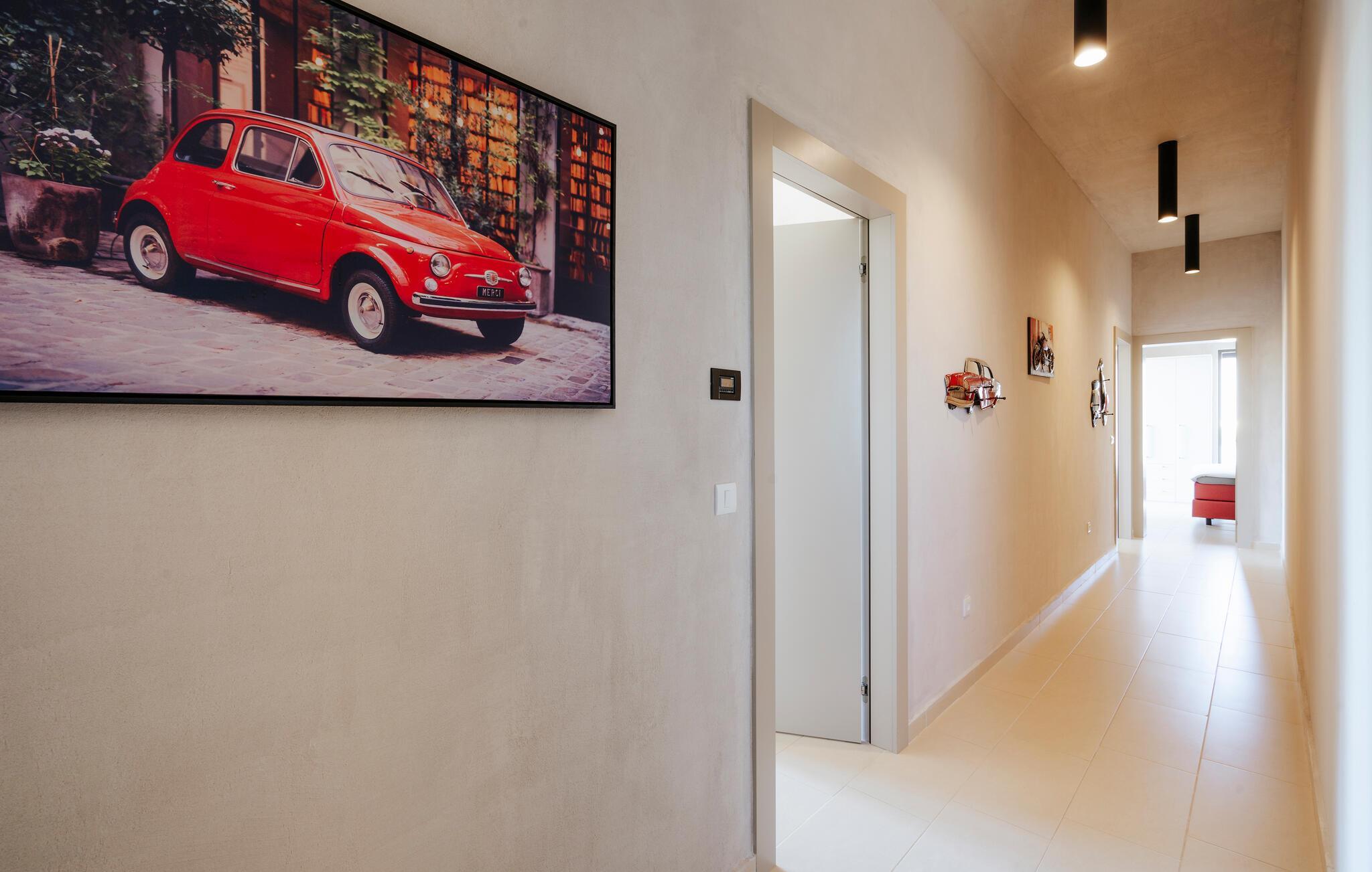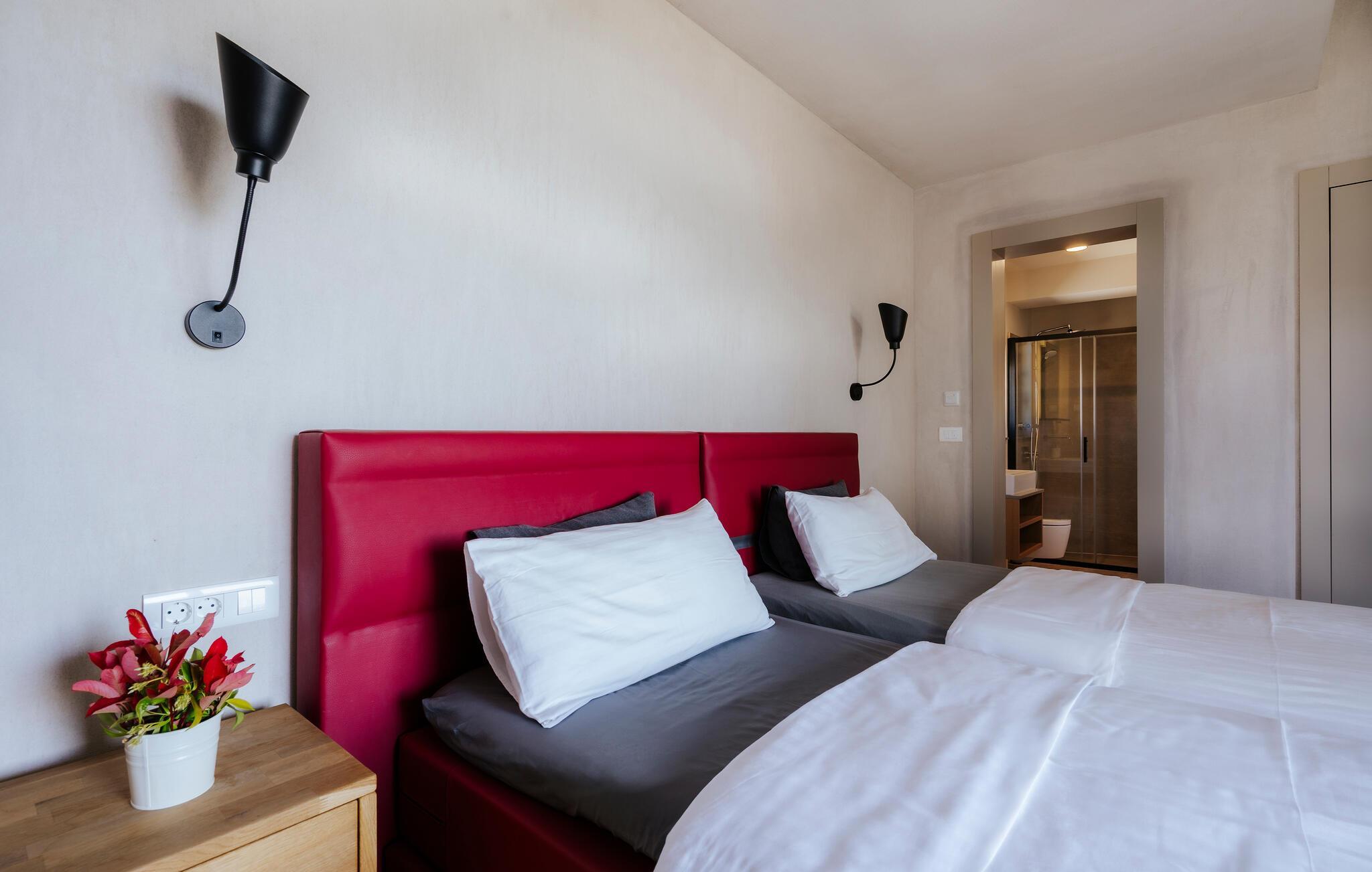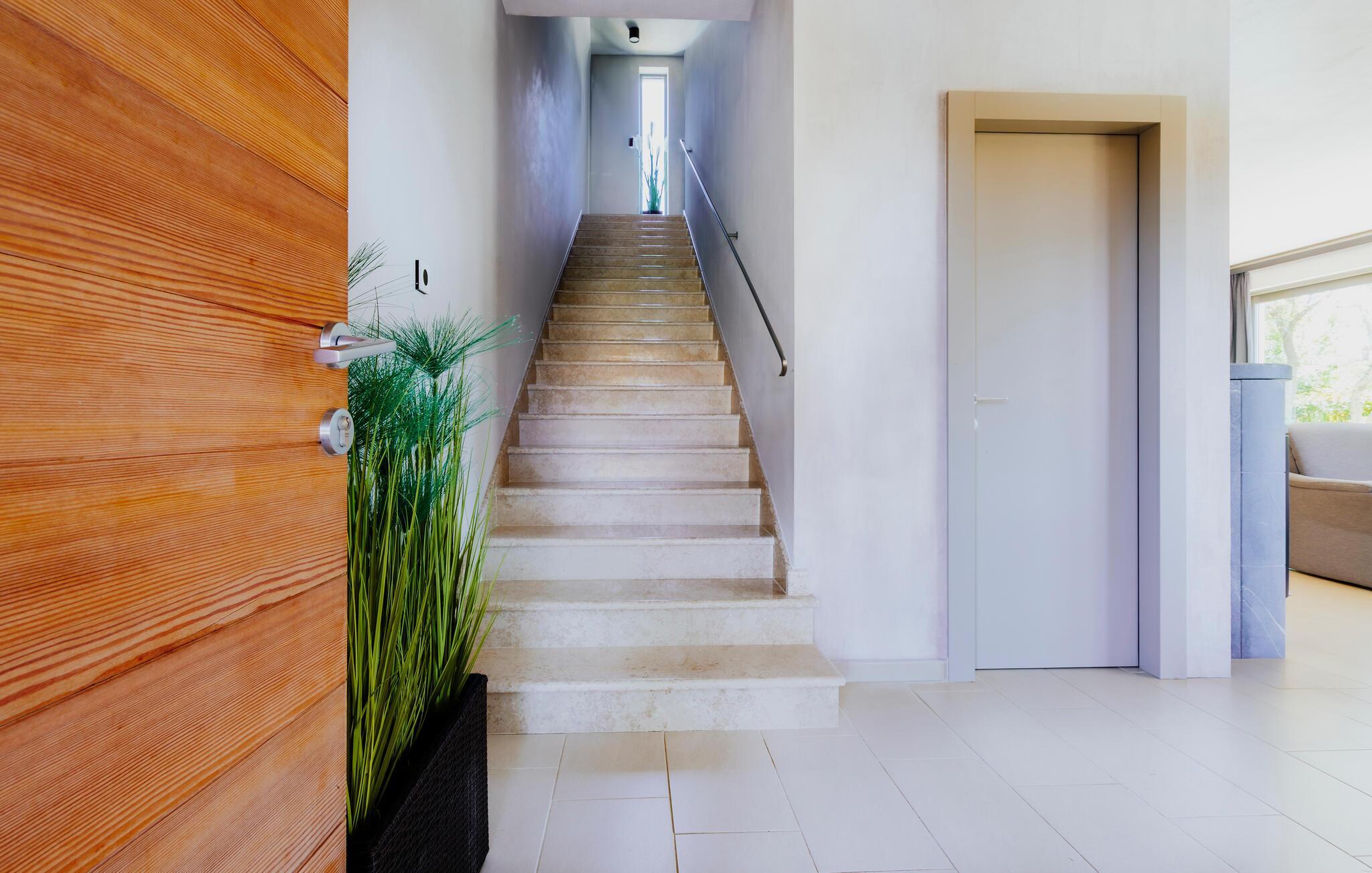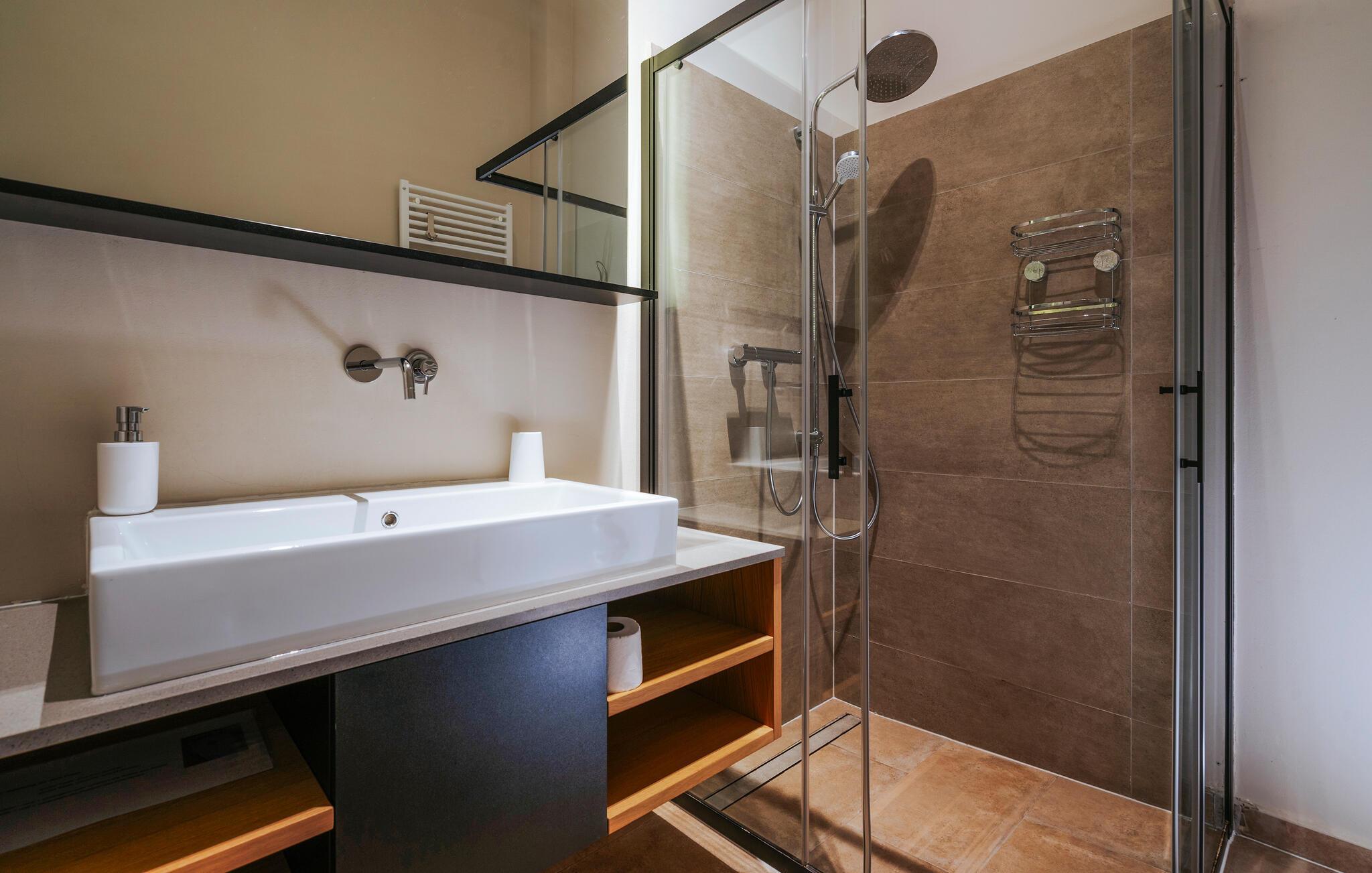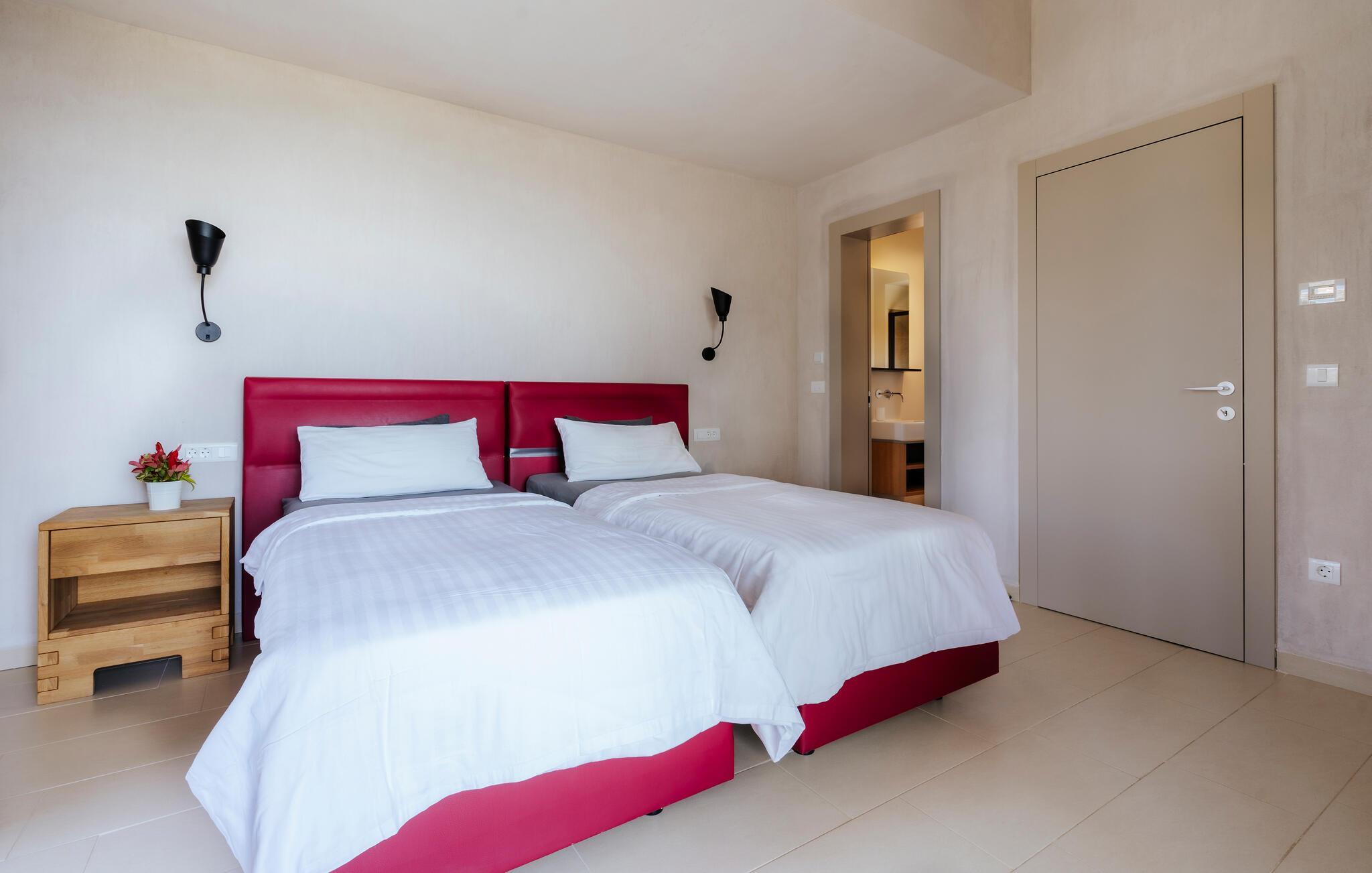 Villa Mima ist eine wunderschöne Villa in Fažana, perfekt geeignet für eine Familie oder Freundesgruppe von 6 Gästen. Die Villa bietet Gästen einen großen Garten und einen privaten Pool für die dringend benötigte Erfrischung an heißen Sommertagen. Erwachsene können es genießen, auf den Liegestühlen zu entspannen und die warme Mittelmeersonne zu genießen, während die Kinder im Pool spielen. Sie können traditionelle Kroatische Speisen auf dem Grill zubereiten und diese Köstlichkeiten im überdachten Essbereich draußen genießen. Für zusätzlichen Spaß stehen den Gästen Citybikes und E-Bikes sowie gegen Aufpreis E-Motorräder zur Erkundung der Umgebung zur Verfügung. Das Innere der Villa Mima ist stilvoll eingerichtet und sehr gut ausgestattet. Dabei finden die Gäste im Erdgeschoss ein geräumiges Wohnzimmer mit TV und Kamin, eine gut ausgestattete Küche und einen gemütlichen Essbereich sowie ein separates WC. Auf der ersten Etage befinden sich 3 Schlafzimmer und ihre 3 en-suite Badezimmer. 2 Schlafzimmer verfügen über Doppelbetten, während das 3. Schlafzimmer über 2 Einzelbetten verfügt, die zusammengeschoben werden können. Jedes Badezimmer verfügt über eine Dusche, während alle Schlafzimmer über einen Fernseher verfügen und voll klimatisiert sind. Die Gäste können ihren ersten Morgenkaffee von den Balkonen im Obergeschoss mit schönem Meerblick genießen. Die Villa Mima liegt außerdem nur 400 m vom Strand entfernt, was zusätzlichen Spaß für die ganze Reisegruppe bedeutet. Wenn Sie während Ihres Urlaubs in Istrien hervorrageFažana ist ein ausgezeichnetes Urlaubsziel für alle, die schöne Strände, klares Meer, ein warmes mediterranes Klima und freundliche und hilfsbereite Einheimische suchen. Dieses Urlaubsziel hat eine interessante Geschichte und Tradition, seine Straßen sind gefüllt mit dem, was viele als "wahren istrischen Charme" bezeichnen, und die Stadt hat ein ausgezeichnetes Angebot für alle Gastronomieliebhaber. Fažana, wie auch Istrien im Allgemeinen, ist bekannt für sein Olivenöl, Fischgerichte, Trüffelgerichte und eine Vielzahl anderer traditioneller Spezialitäten. Sie können in exquisiten Restaurants direkt an der Küste der Stadt speisen und die warmen Sommerabende mit Ihrer Liebsten bei einem romantischen Spaziergang genießen. Die natürliche Schönheit dieser Stadt und der umliegenden Strände sollte nicht übersehen werden. Viele Strände sind für Kinder geeignet, sodass dem Familienurlaub Ihrer Träume nichts im Wege stehen sollte. Diese Lage ist auch ideal für Tagesausflüge in andere großartige Städte wie Pula und Rovinj sowie den atemberaubenden Nationalpark Brijuni. Sie werden es nicht bereuen, wenn Sie Ihren Urlaub in Istrien und Fažana verbringen. Istrien wartet auf Sie!