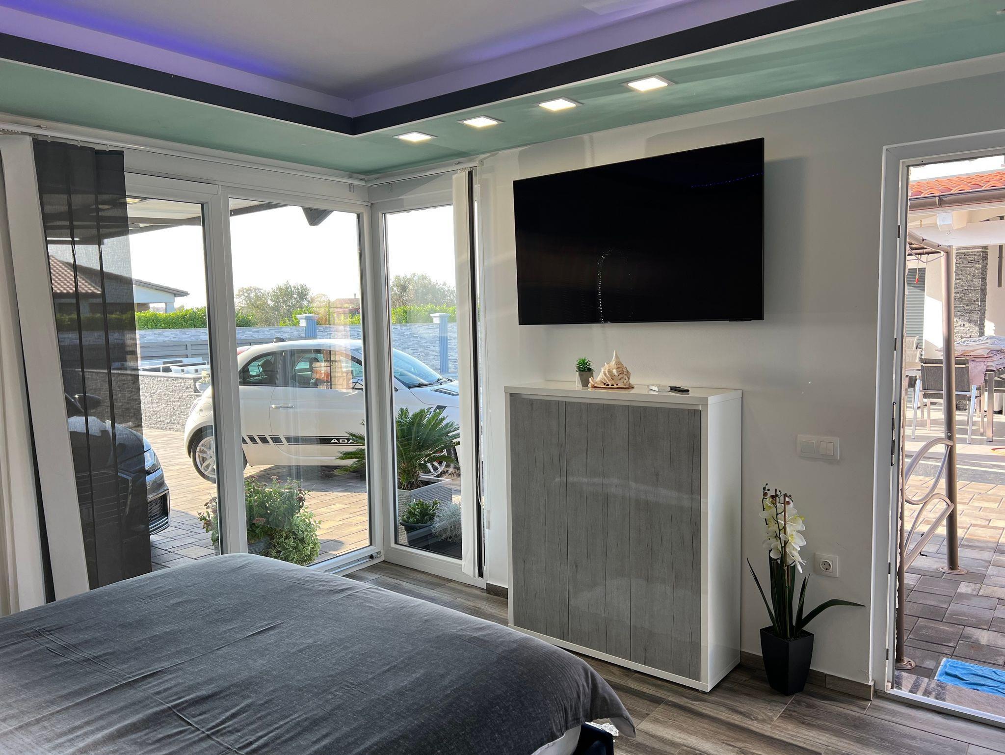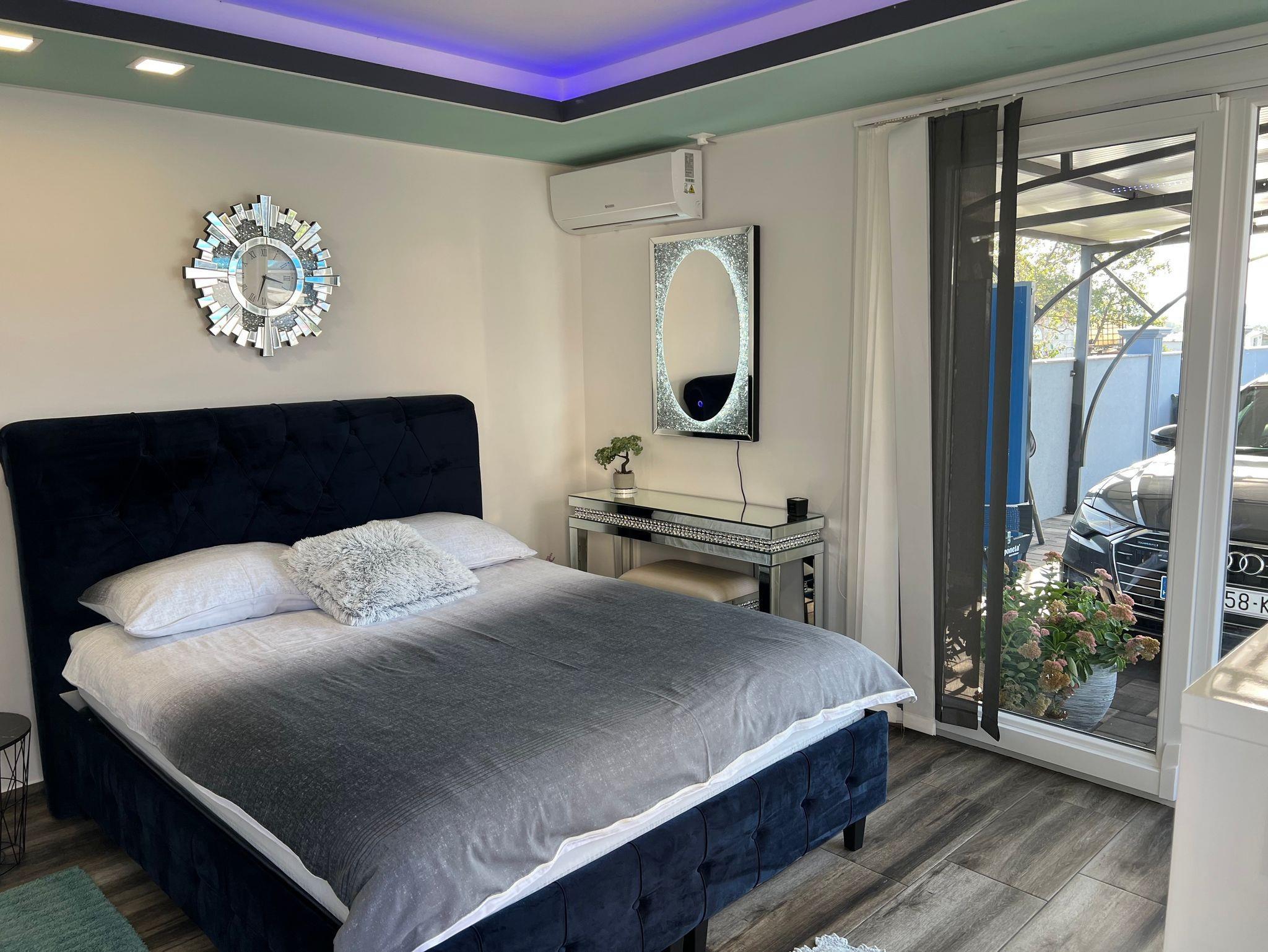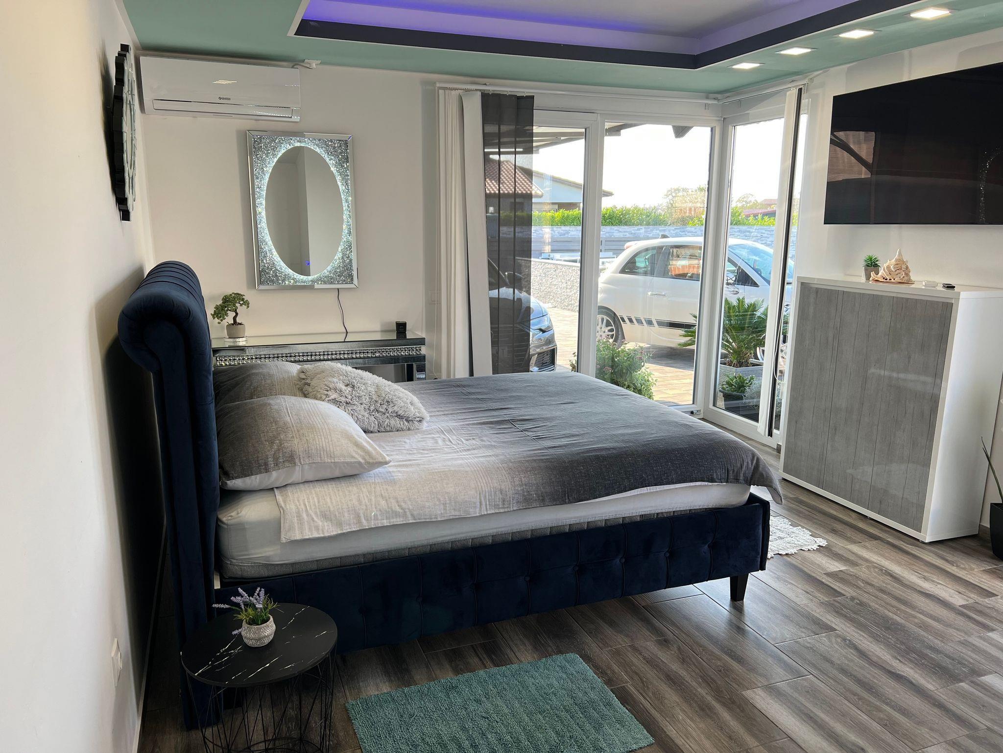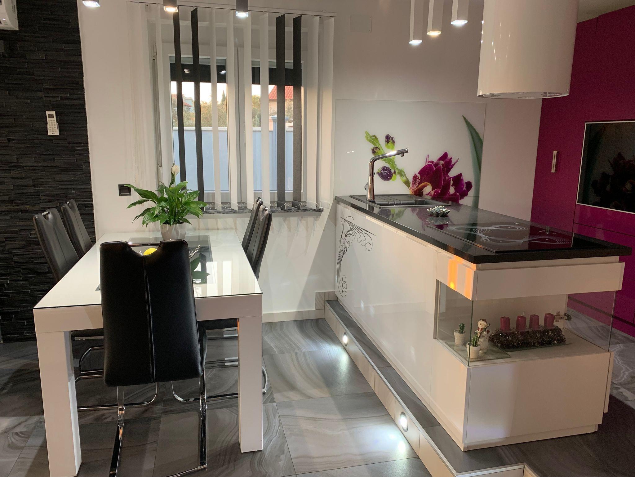 Haus bietet Platz für 10 Gäste. Die Betten sind in Schlafzimmern, die es 5 gibt, innerhalb einer Gesamtfläche von 148m2, angeordnet. Die Gäste haben eine eigene Terrasse zur Verfügung, auf der sie in warmen Sommernächten genießen können. Für vollen Genuss und Entspannung gibt es einen privaten Grill für Gäste dieser Unterkunft. Während ihres Aufenthalts können sich Gäste im privaten Schwimmbad entspannen. Räume der gebuchten Unterkunftseinheit werden nicht in eine Ganze verbunden. IM PREIS INBEGRIFFEN: Kurtaxe, Endreinigung, Klimatisierung, Zentralheizung, Pool, Parkplatz, Internet, Kinderbett, Zusatzbett, Bügeleisen, Bügelbrett, Föhn, Sonnenschirm, Liegestühle. UNVERBINDLICHE ZUSÄTZLICHE KOSTEN: Fahrrad (10,00 € täglich (pro Stück)). Die Verfügbarkeit zusätzlicher Dienstleistungen in Ihrem reservierten Termin und die Preise derselben (falls nicht aufgeführt) müssen im Voraus überprüft werden. Zusätzliche Dienstleistungen die in der Zahlungsaufforderung nicht aufgeführt sind werden direkt beim Vermieter bezahlt, angenommen der Gast nutzt auch diese.