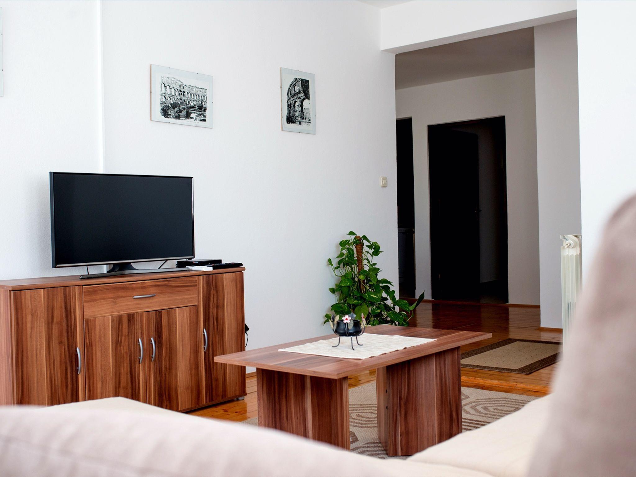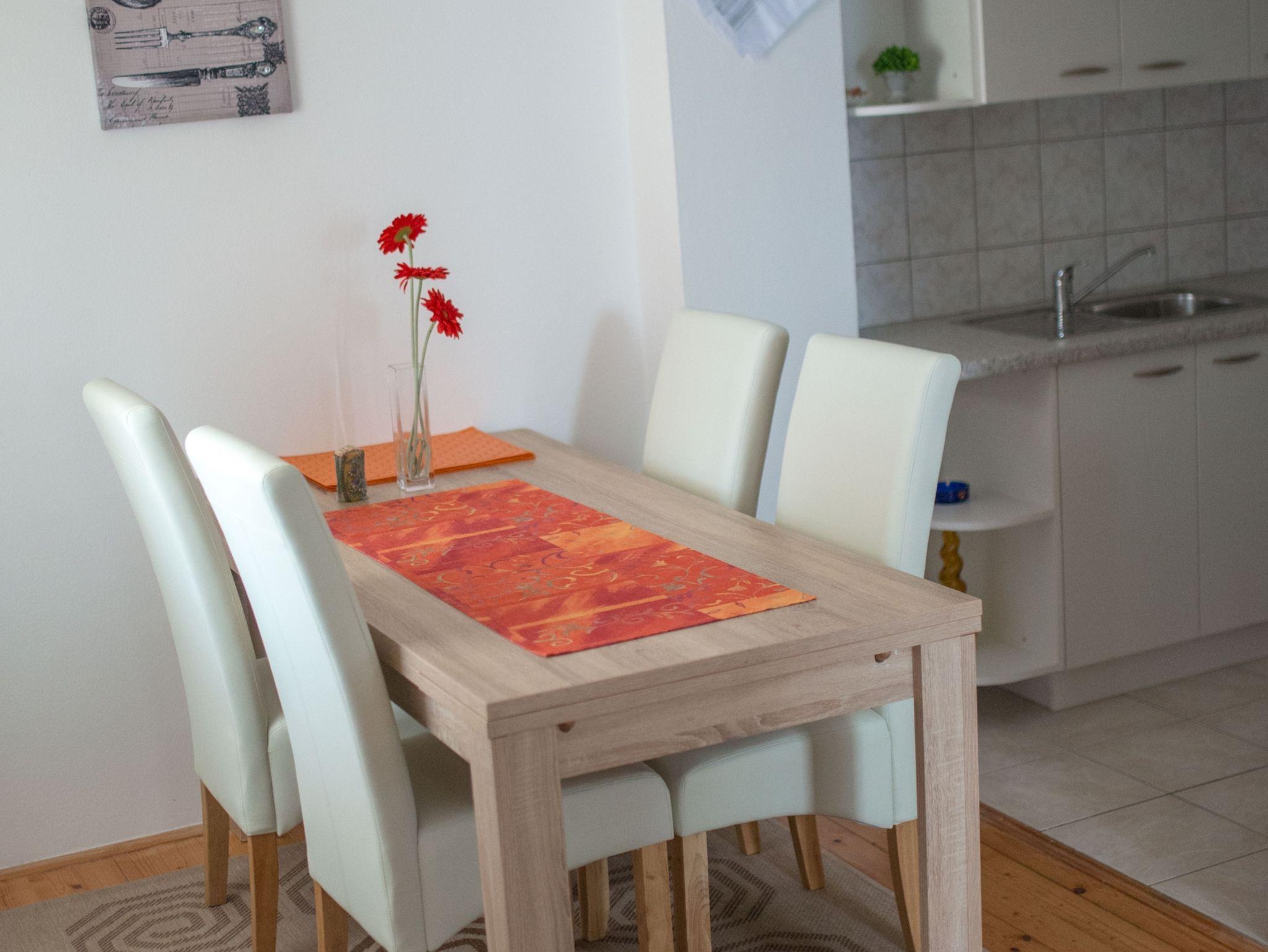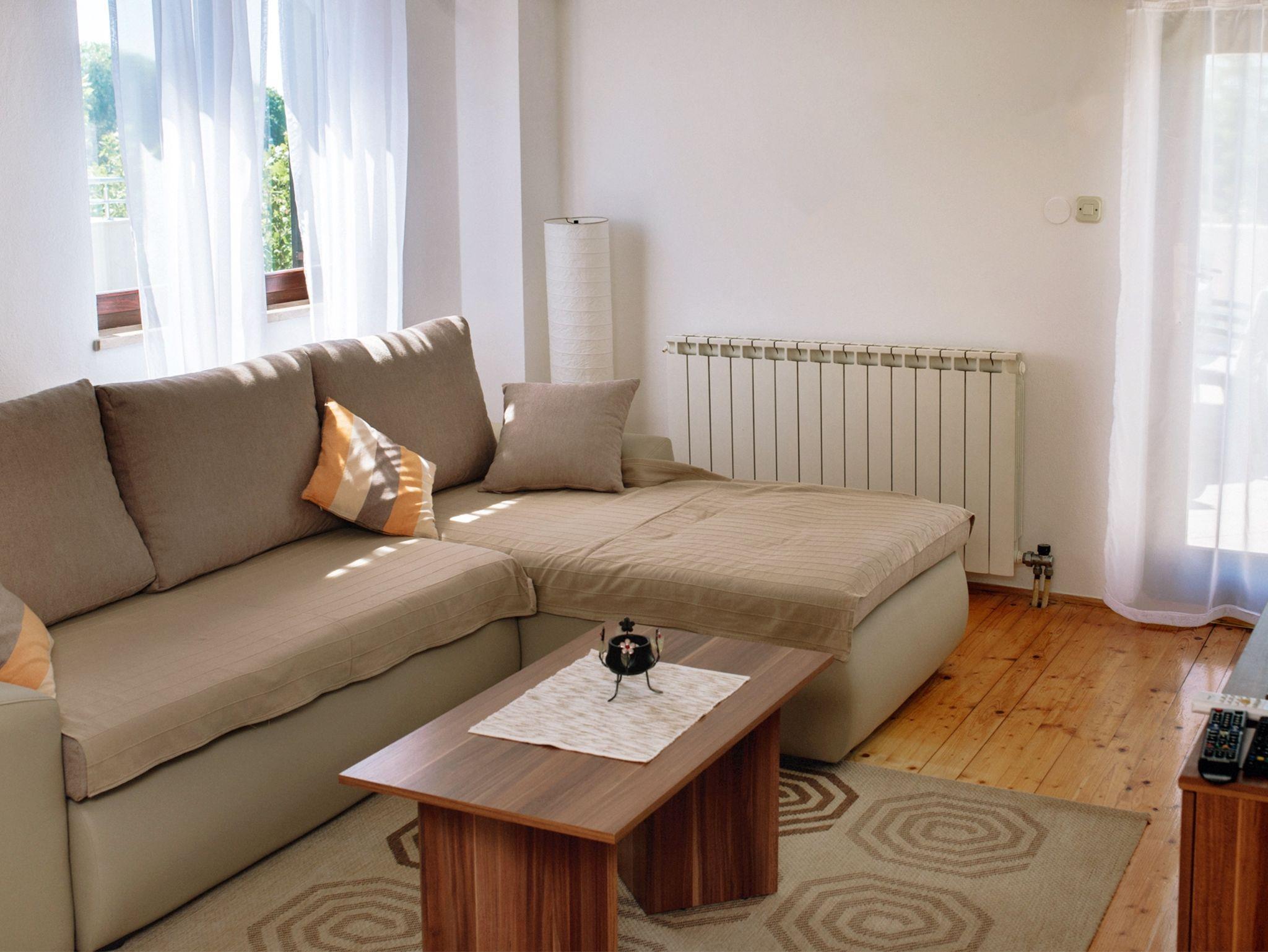 Ferienwohnung bietet Platz für 5 Gäste. Die Betten sind in Schlafzimmern, die es 2 gibt, und in Wohnzimmer, innerhalb einer Gesamtfläche von 58m2, angeordnet. Die Gäste haben eine eigene Terrasse zur Verfügung, auf der sie in warmen Sommernächten genießen können. Das Apartment bietet Meerblick. Es ist erlaubt, Speisen auf dem Gemeinschafts-Grill vorzubereiten. IM PREIS INBEGRIFFEN: Kurtaxe, Endreinigung, Klimatisierung, Parkplatz, Internet, Bügeleisen, Bügelbrett, Föhn. VERBINDLICHE ZUSÄTZLICHE KOSTEN: Aufzahlung für Kurzaufenthalte (prozentualer Zuschlag pro Nächtigungsanzahl: 30% - 1, 20% - 2, 10% - 3). UNVERBINDLICHE ZUSÄTZLICHE KOSTEN: Zentralheizung (5,00 € pro Nacht). Die Verfügbarkeit zusätzlicher Dienstleistungen in Ihrem reservierten Termin und die Preise derselben (falls nicht aufgeführt) müssen im Voraus überprüft werden. Zusätzliche Dienstleistungen die in der Zahlungsaufforderung nicht aufgeführt sind werden direkt beim Vermieter bezahlt, angenommen der Gast nutzt auch diese.