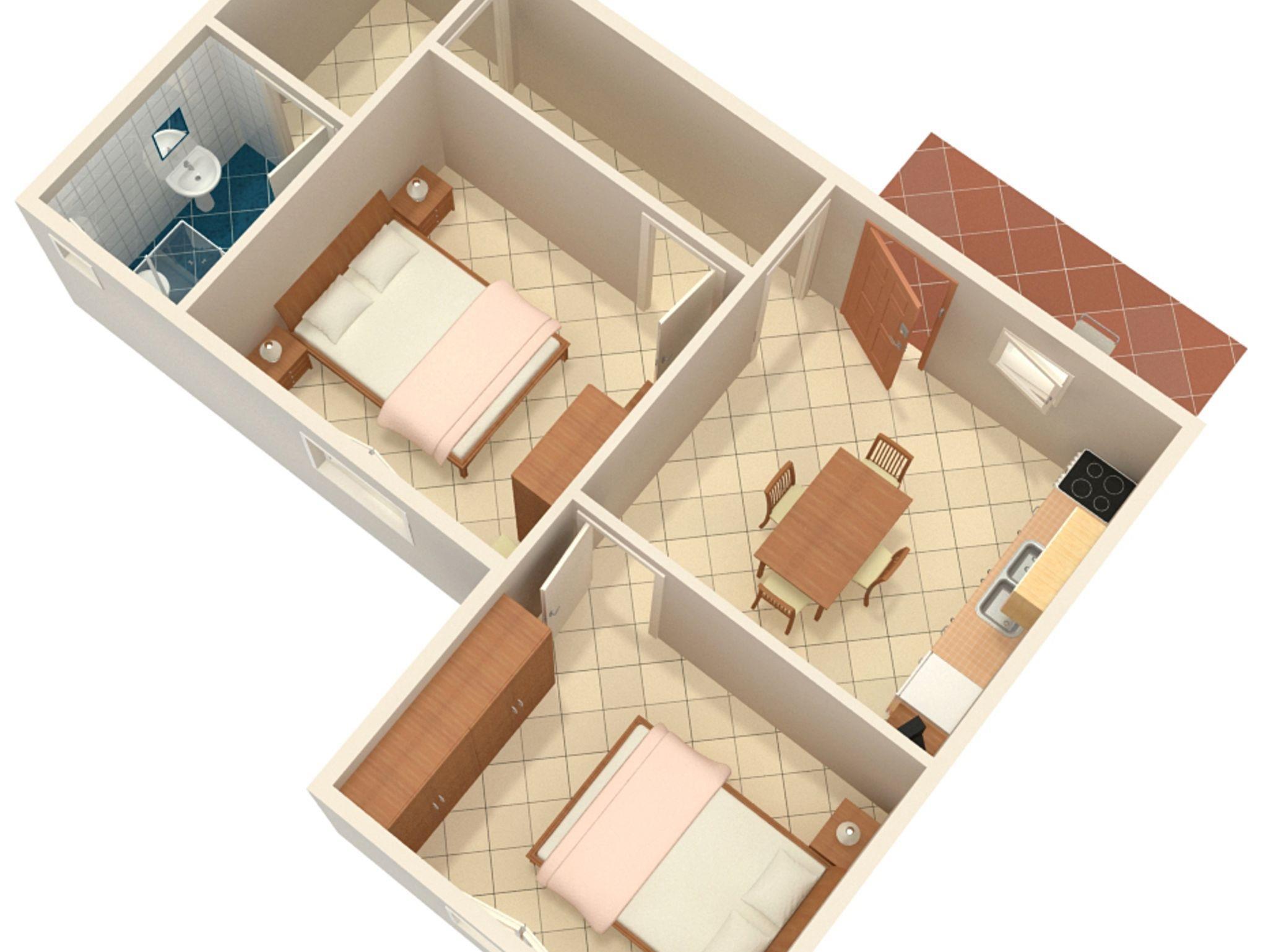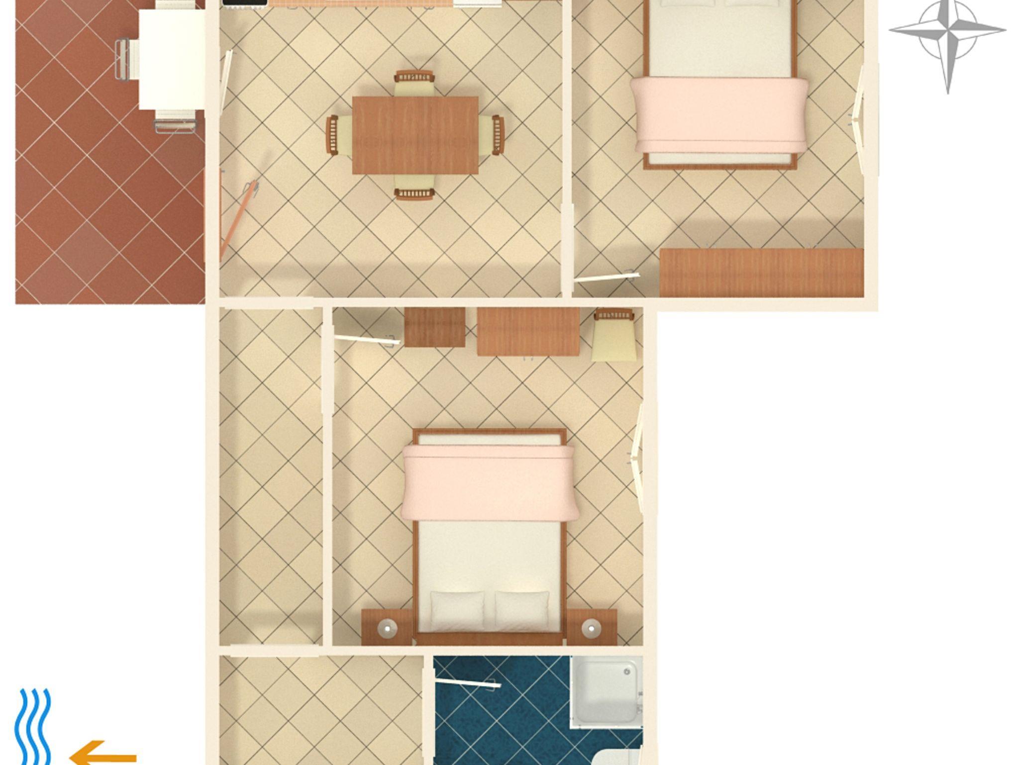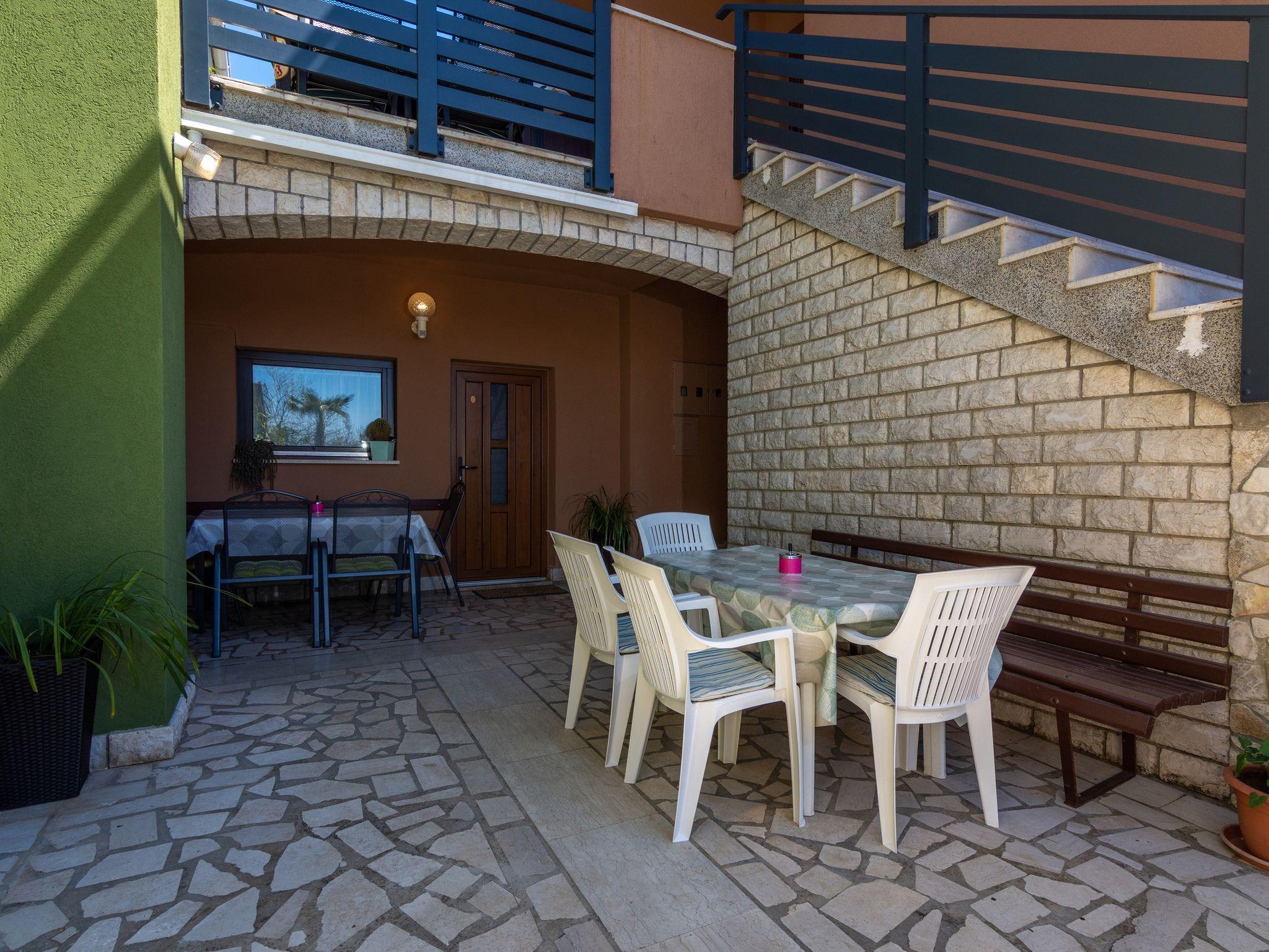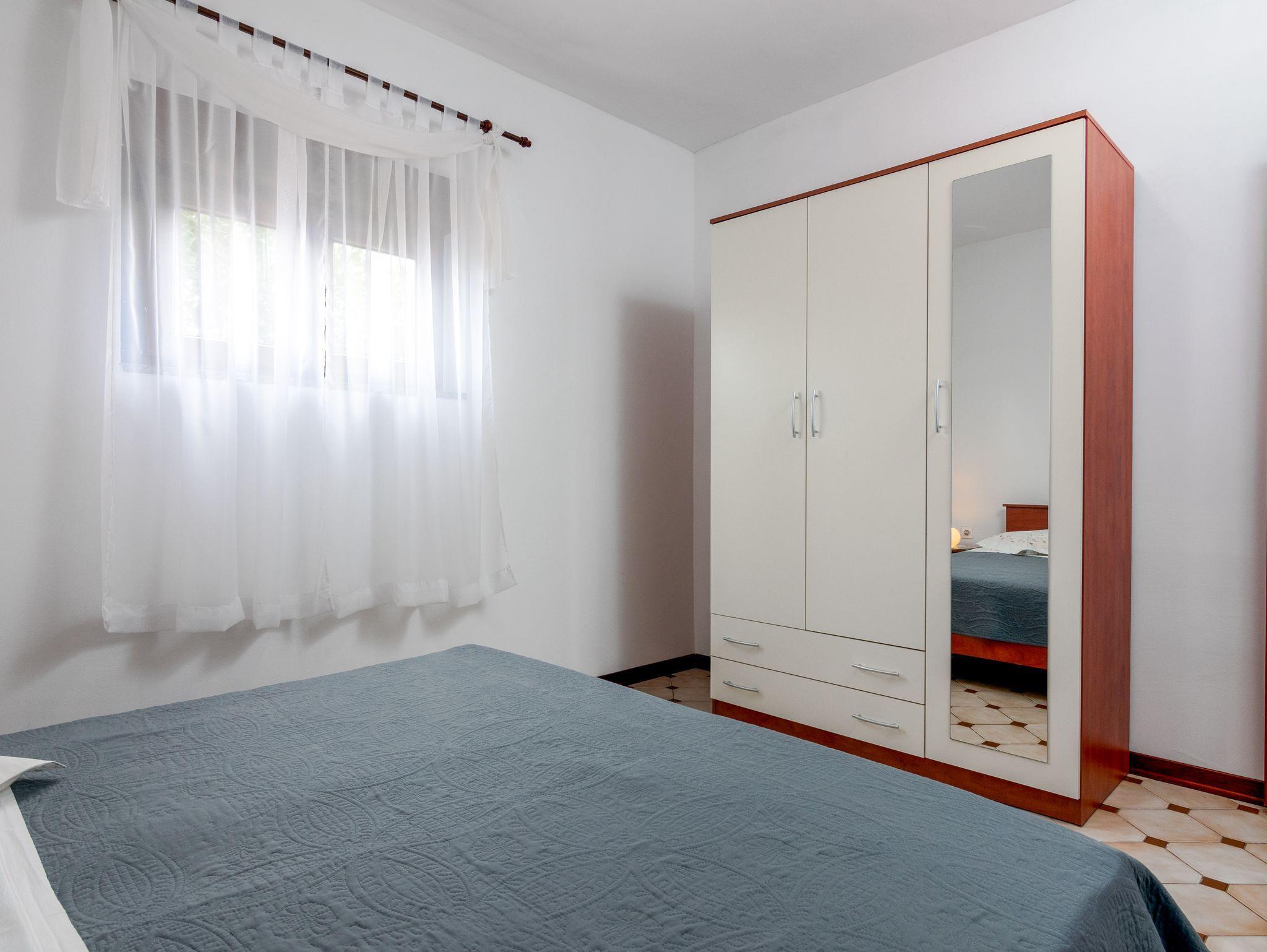 Ferienwohnung bietet Platz für 4 Gäste. Die Betten sind in Schlafzimmern, die es 2 gibt, innerhalb einer Gesamtfläche von 45m2, angeordnet. Die Gäste haben eine eigene Terrasse zur Verfügung, auf der sie in warmen Sommernächten genießen können. Es ist erlaubt, Speisen auf dem Gemeinschafts-Grill vorzubereiten. Während ihres Aufenthalts können Gäste das gemeinsam zur Nutzung stehende Schwimmbad benutzen. In der Unterkunftseinheit besteht die Möglichkeit des Mitbringens von Haustieren gegen Aufpreis. Durch die Terrasse der gebuchten Unterkunftseinheit gehen auch andere Gäste oder Vermieter. IM PREIS INBEGRIFFEN: Kurtaxe, Endreinigung, Pool, Parkplatz, Internet, Kinderbett, Bügeleisen, Bügelbrett, Föhn. VERBINDLICHE ZUSÄTZLICHE KOSTEN: Aufzahlung für Kurzaufenthalte (prozentualer Zuschlag pro Nächtigungsanzahl: 30% - 1, 20% - 2, 10% - 3). UNVERBINDLICHE ZUSÄTZLICHE KOSTEN: Klimatisierung (5,00 € pro Nacht), Wäschewaschen (10,00 € Waschen), Haustiere (10,00 € pro Nacht). Die Verfügbarkeit zusätzlicher Dienstleistungen in Ihrem reservierten Termin und die Preise derselben (falls nicht aufgeführt) müssen im Voraus überprüft werden. Zusätzliche Dienstleistungen die in der Zahlungsaufforderung nicht aufgeführt sind werden direkt beim Vermieter bezahlt, angenommen der Gast nutzt auch diese.