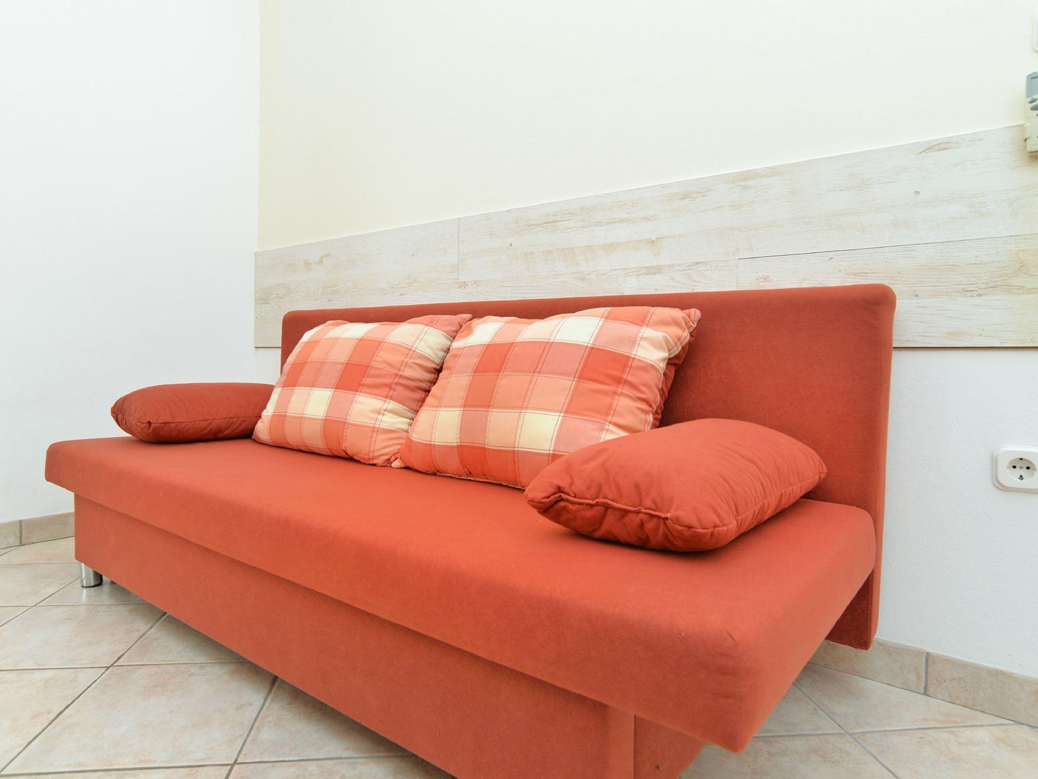 Ferienwohnung bietet Platz für 4 Gäste. Die Betten sind in Schlafzimmern, die es 2 gibt, innerhalb einer Gesamtfläche von 34m2, angeordnet. Die Gäste haben eine eigene Terrasse zur Verfügung, auf der sie in warmen Sommernächten genießen können. Es ist erlaubt, Speisen auf dem Gemeinschafts-Grill vorzubereiten. In der Unterkunftseinheit besteht die Möglichkeit des Mitbringens von Haustieren gegen Aufpreis. In der gebuchten Unterkunftseinheit zahlt man am Ort ein Depositum ( der Preis ist an der Internetseite angeführt ). IM PREIS INBEGRIFFEN: Kurtaxe, Endreinigung, Klimatisierung, Parkplatz, Internet, Föhn. VERBINDLICHE ZUSÄTZLICHE KOSTEN: Kaution (150,00 € Einmalzahlung). UNVERBINDLICHE ZUSÄTZLICHE KOSTEN: Haustiere (10,00 € pro Nacht). Die Verfügbarkeit zusätzlicher Dienstleistungen in Ihrem reservierten Termin und die Preise derselben (falls nicht aufgeführt) müssen im Voraus überprüft werden. Zusätzliche Dienstleistungen die in der Zahlungsaufforderung nicht aufgeführt sind werden direkt beim Vermieter bezahlt, angenommen der Gast nutzt auch diese.
