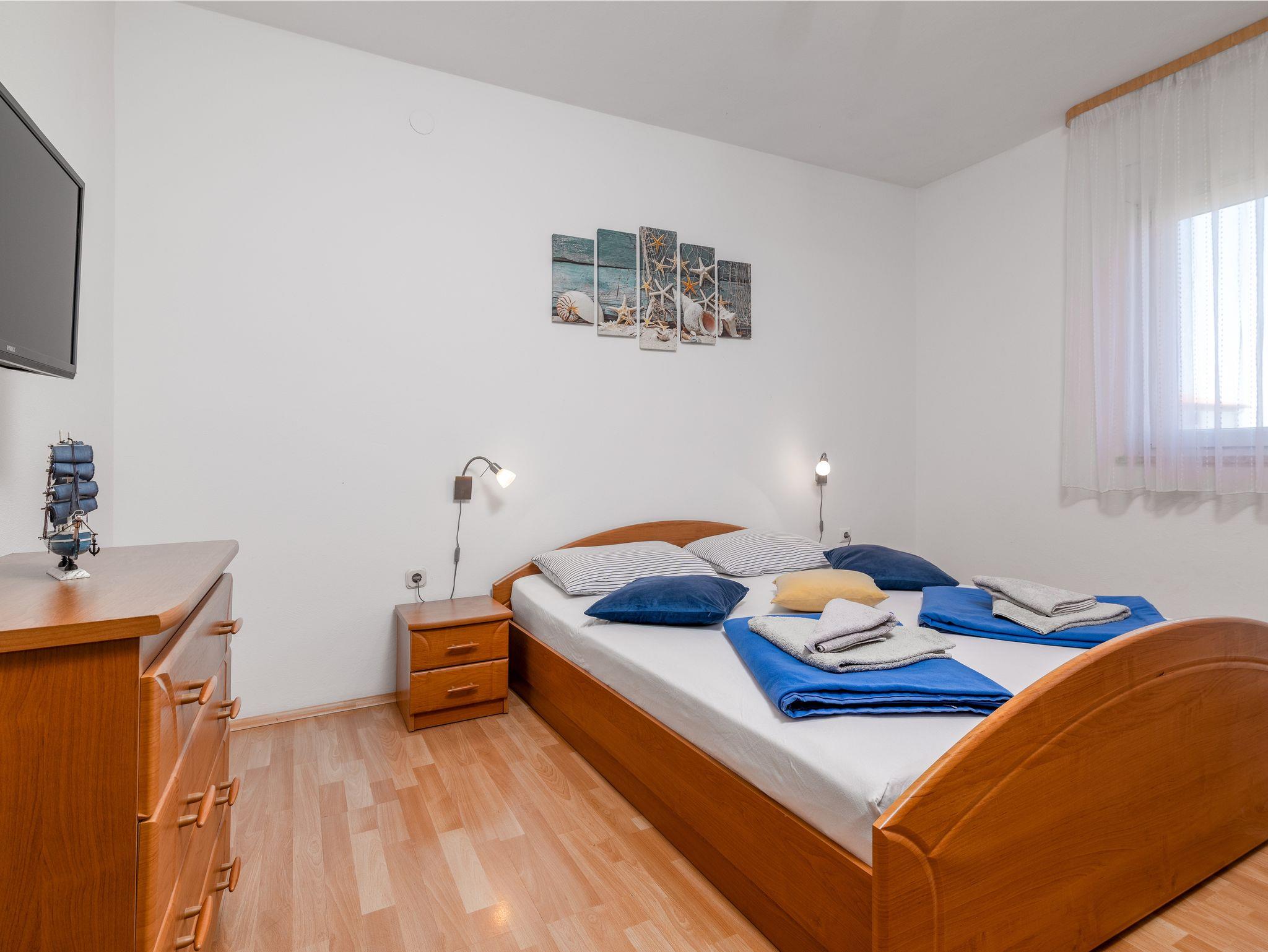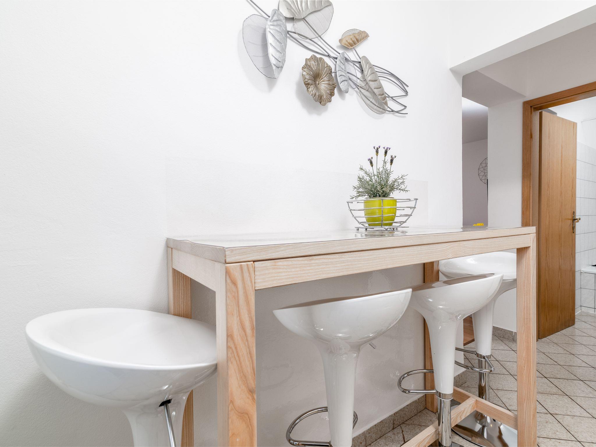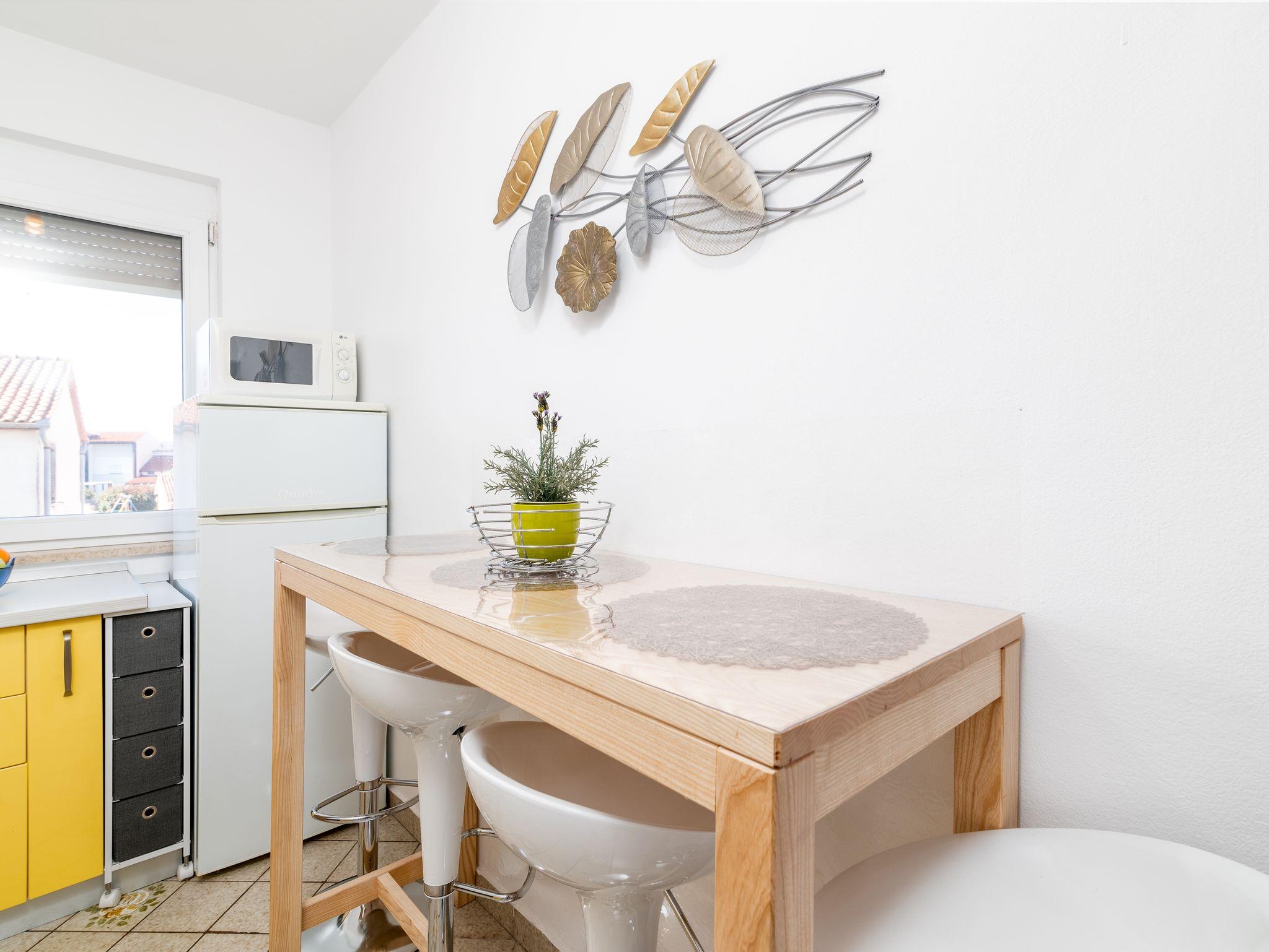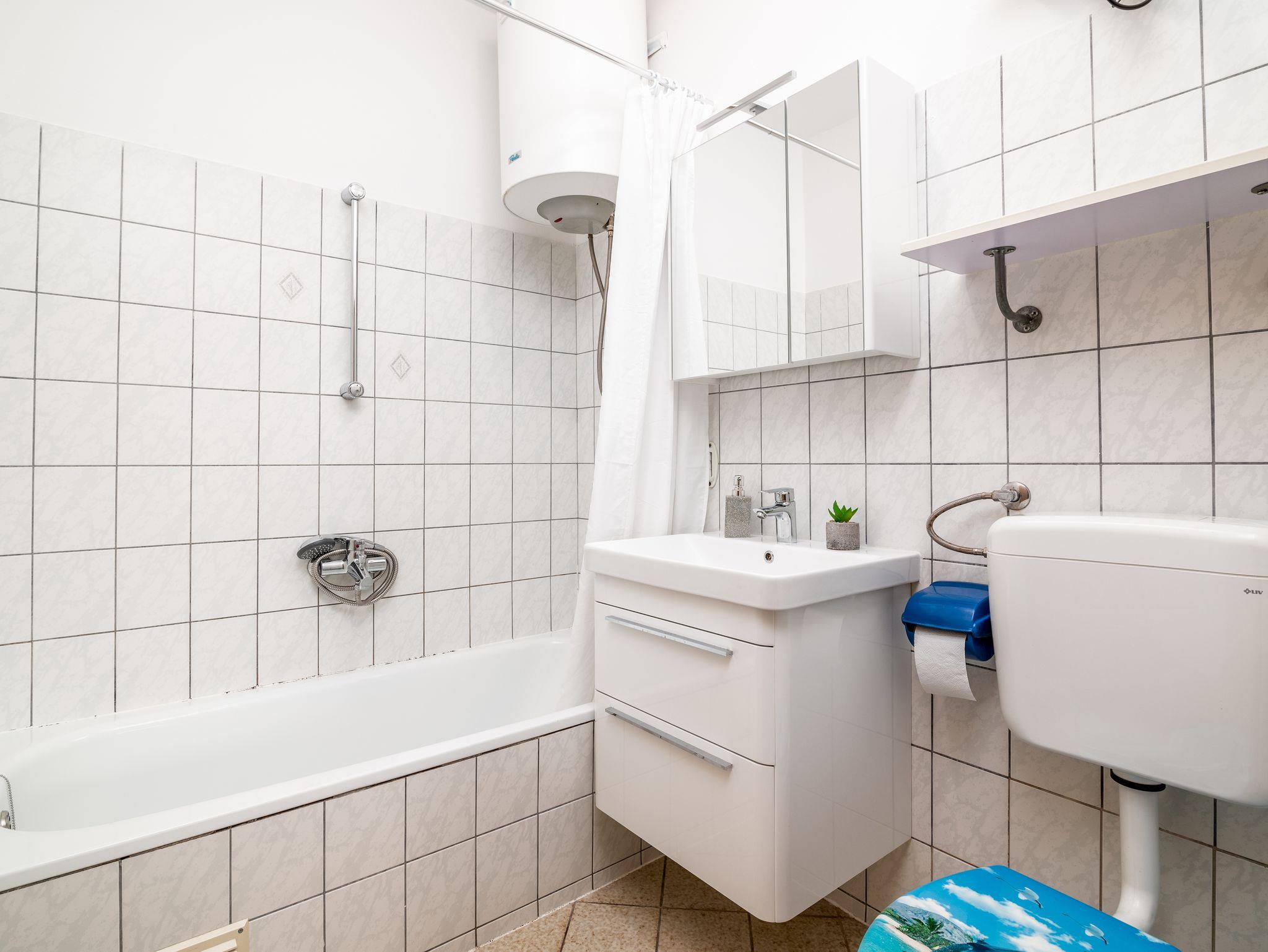 Ferienwohnung bietet Platz für 4 Gäste. Die Betten sind in Schlafzimmern, die es 1 gibt, und in Wohnzimmer, innerhalb einer Gesamtfläche von 41m2, angeordnet. Die Gäste haben eine eigene Terrasse zur Verfügung, auf der sie in warmen Sommernächten genießen können. Es ist erlaubt, Speisen auf dem Gemeinschafts-Grill vorzubereiten. IM PREIS INBEGRIFFEN: Kurtaxe, Endreinigung, Parkplatz, Internet, Kinderbett, Bügeleisen, Bügelbrett, Föhn. VERBINDLICHE ZUSÄTZLICHE KOSTEN: Aufzahlung für Kurzaufenthalte (prozentualer Zuschlag pro Nächtigungsanzahl: 30% - 1, 20% - 2, 10% - 3). UNVERBINDLICHE ZUSÄTZLICHE KOSTEN: Klimatisierung (5,00 € pro Nacht). Die Verfügbarkeit zusätzlicher Dienstleistungen in Ihrem reservierten Termin und die Preise derselben (falls nicht aufgeführt) müssen im Voraus überprüft werden. Zusätzliche Dienstleistungen die in der Zahlungsaufforderung nicht aufgeführt sind werden direkt beim Vermieter bezahlt, angenommen der Gast nutzt auch diese. Ermäßigung auf den Grundpreis: Gratistag 21=19 (bei einem Aufenthalt von 21 Tagen oder mehr erhalten Sie 2 Gratistage für den Aufenthalt bis 31.12.26), Aktion (erzielen Sie während der Buchung zusätzliche Ermäßigung von 10%).