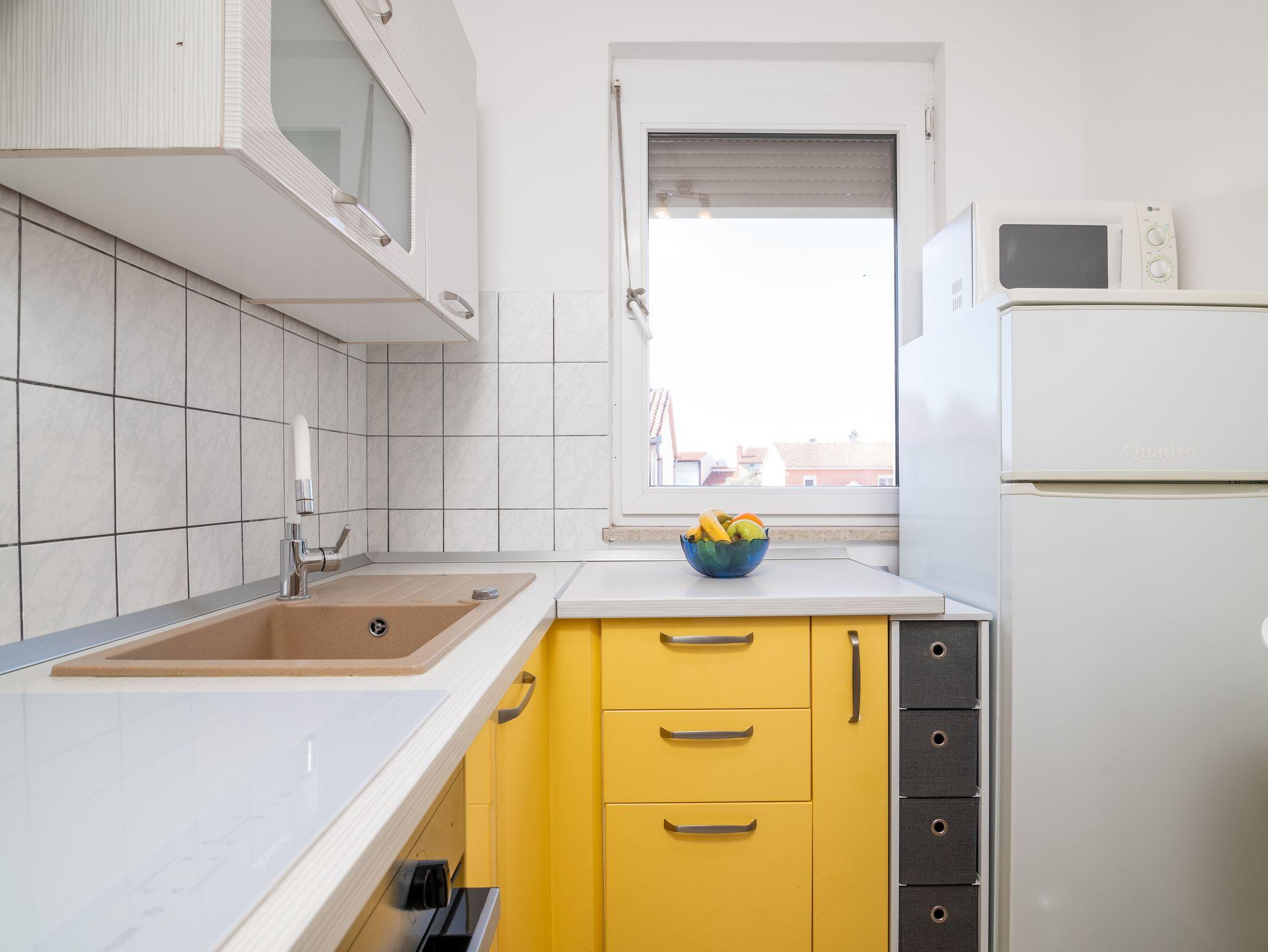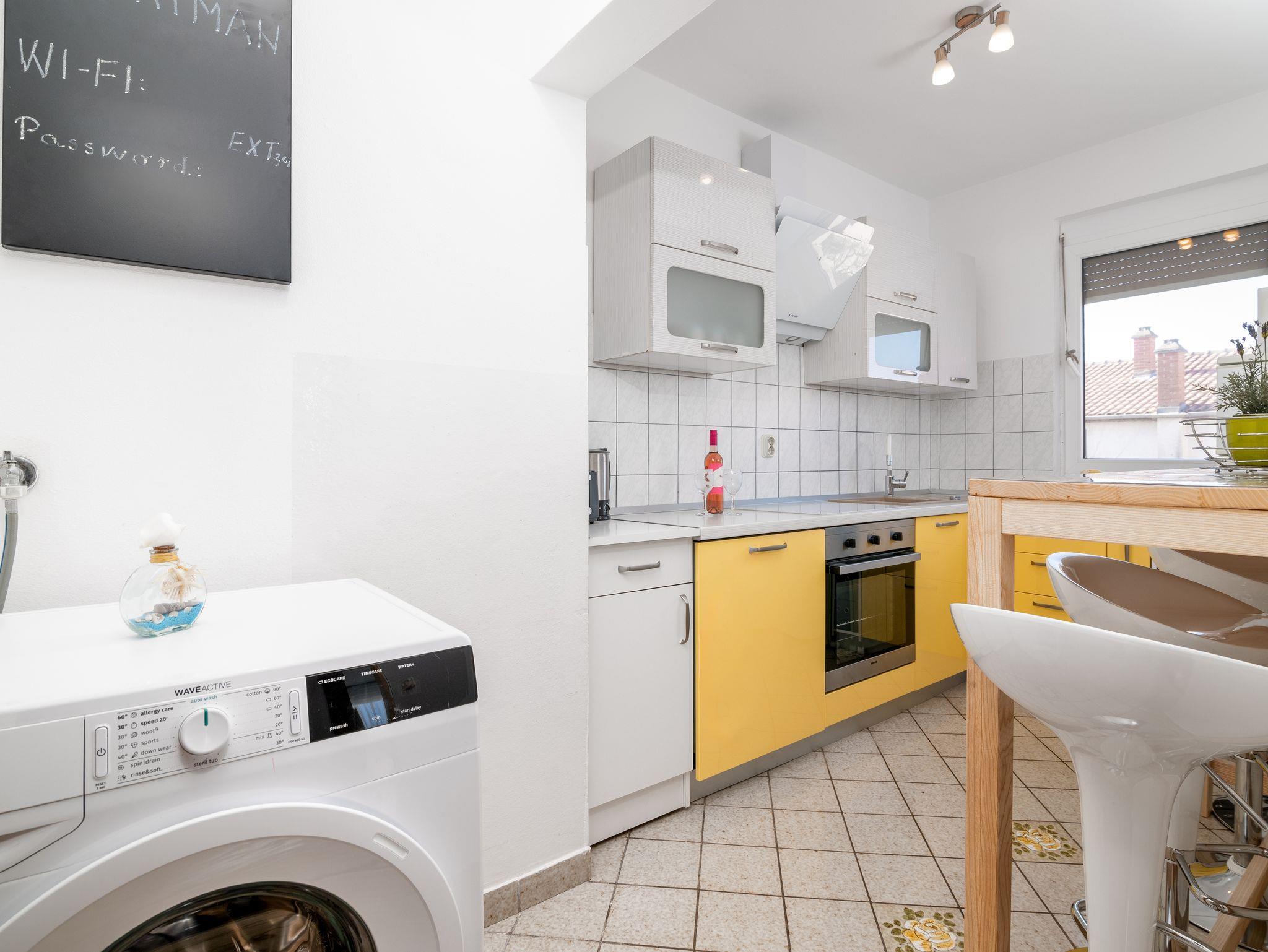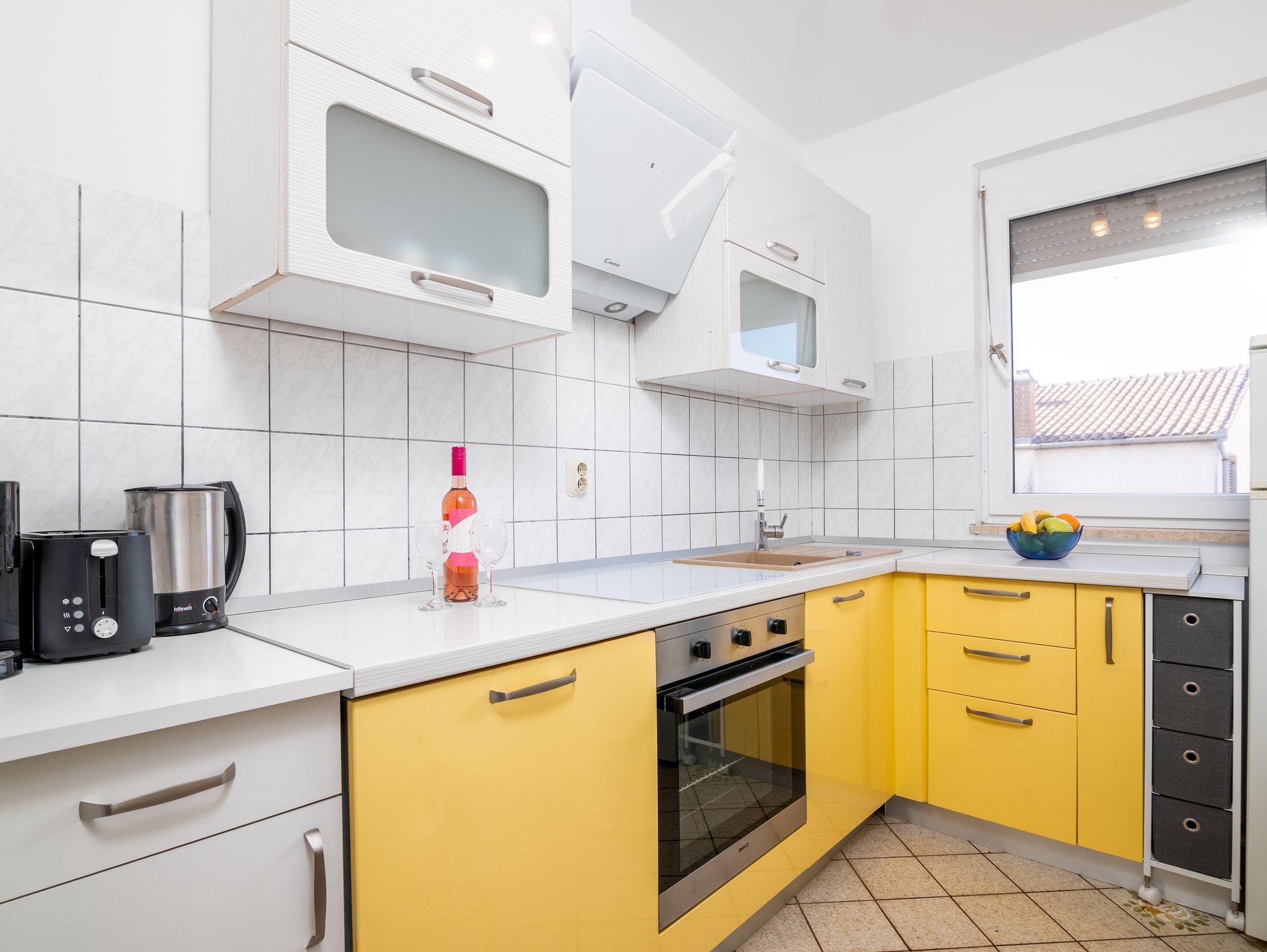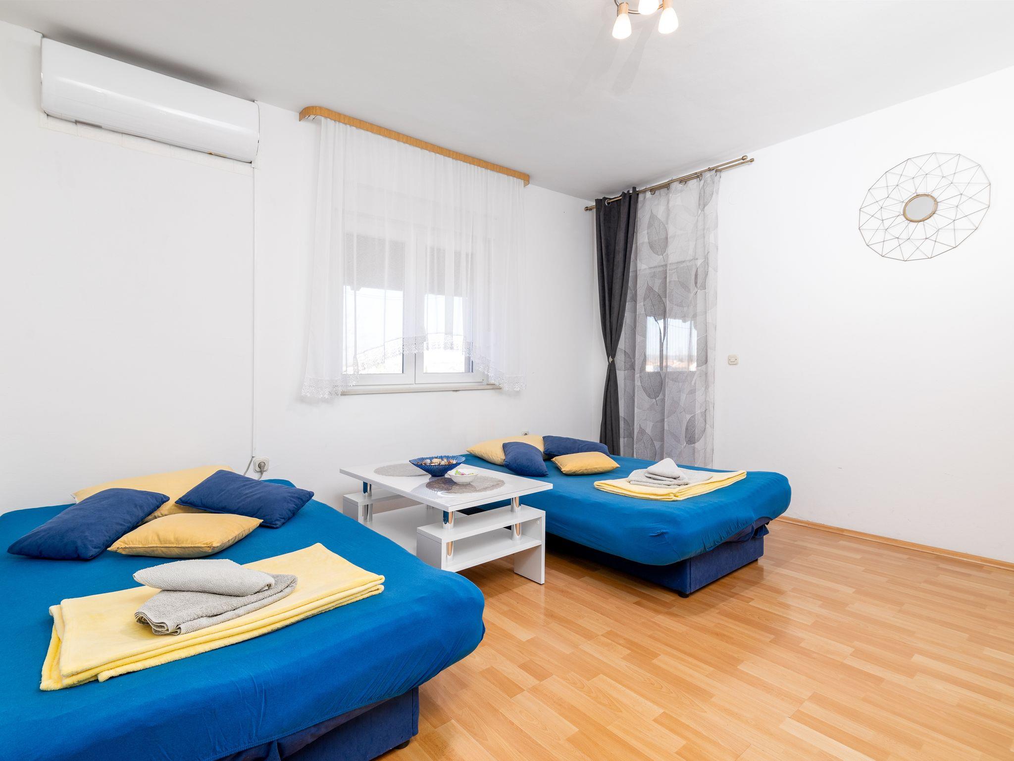 Ferienwohnung bietet Platz für 4 Gäste. Die Betten sind in Schlafzimmern, die es 1 gibt, und in Wohnzimmer, innerhalb einer Gesamtfläche von 41m2, angeordnet. Die Gäste haben eine eigene Terrasse zur Verfügung, auf der sie in warmen Sommernächten genießen können. Es ist erlaubt, Speisen auf dem Gemeinschafts-Grill vorzubereiten. IM PREIS INBEGRIFFEN: Kurtaxe, Endreinigung, Parkplatz, Internet, Kinderbett, Bügeleisen, Bügelbrett, Föhn. VERBINDLICHE ZUSÄTZLICHE KOSTEN: Aufzahlung für Kurzaufenthalte (prozentualer Zuschlag pro Nächtigungsanzahl: 30% - 1, 20% - 2, 10% - 3). UNVERBINDLICHE ZUSÄTZLICHE KOSTEN: Klimatisierung (5,00 € pro Nacht). Die Verfügbarkeit zusätzlicher Dienstleistungen in Ihrem reservierten Termin und die Preise derselben (falls nicht aufgeführt) müssen im Voraus überprüft werden. Zusätzliche Dienstleistungen die in der Zahlungsaufforderung nicht aufgeführt sind werden direkt beim Vermieter bezahlt, angenommen der Gast nutzt auch diese. Ermäßigung auf den Grundpreis: Gratistag 21=19 (bei einem Aufenthalt von 21 Tagen oder mehr erhalten Sie 2 Gratistage für den Aufenthalt bis 31.12.26), Aktion (erzielen Sie während der Buchung zusätzliche Ermäßigung von 10%).