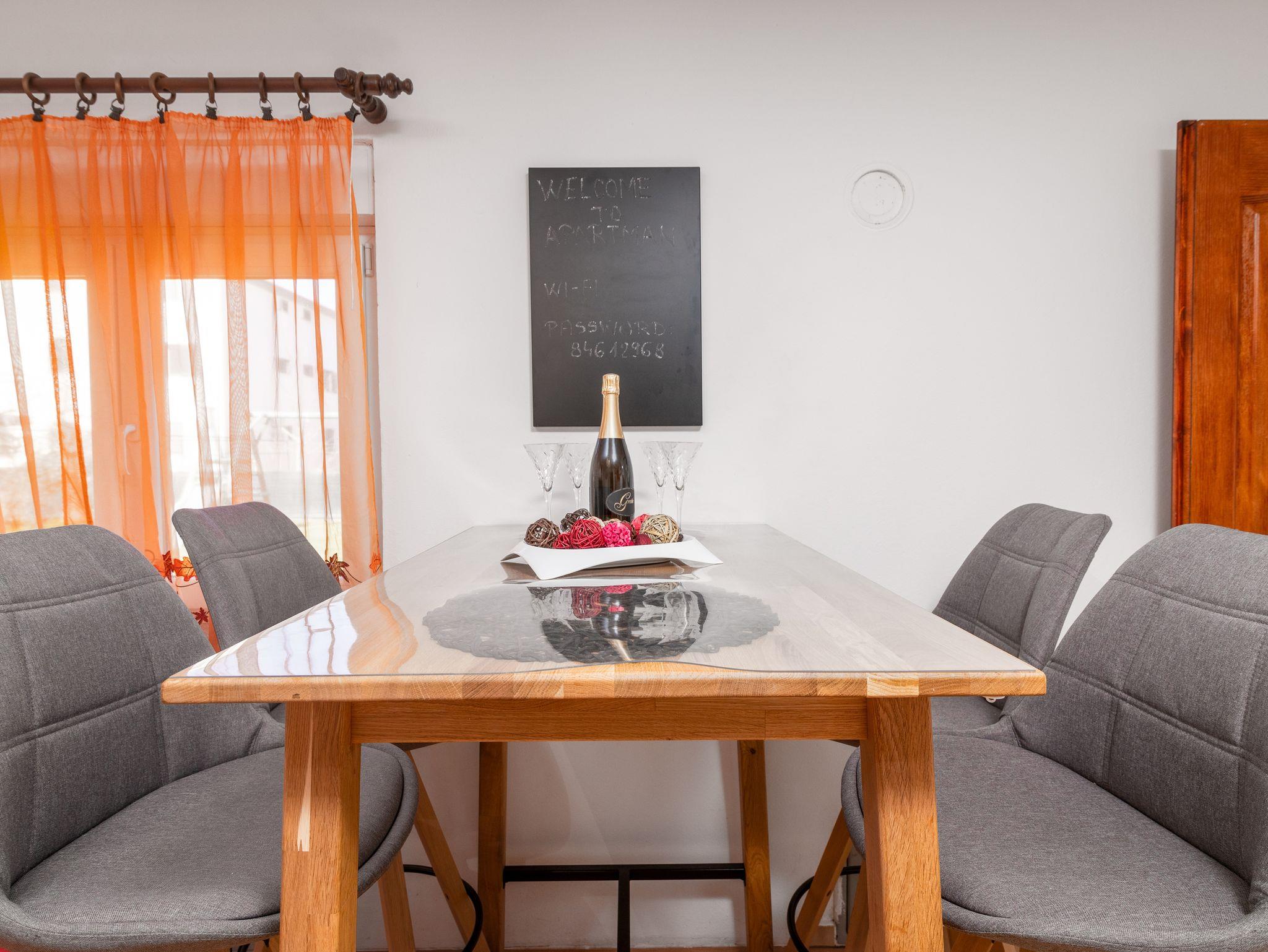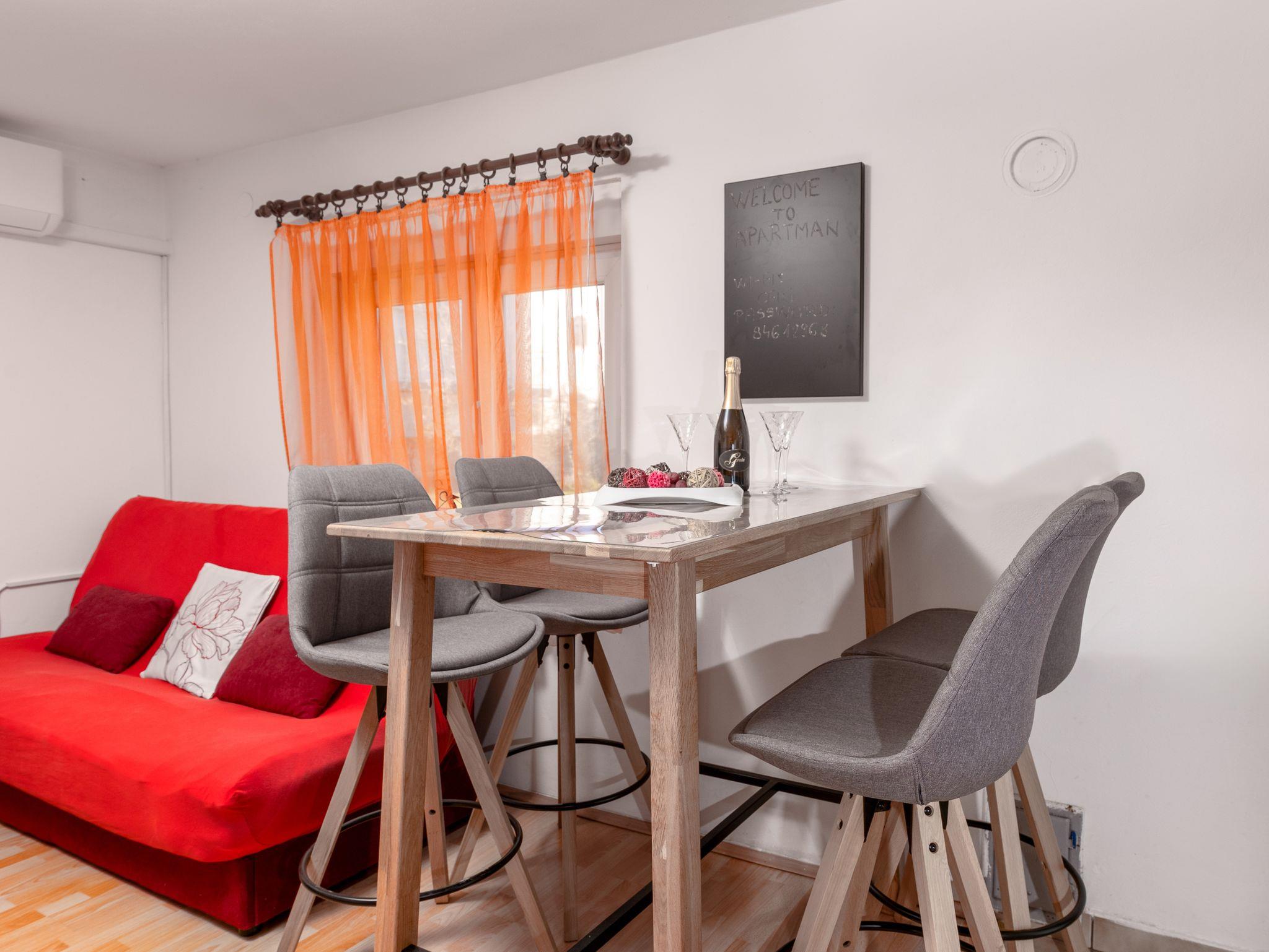 Ferienwohnung bietet Platz für 4 Gäste. Die Betten sind in Schlafzimmern, die es 1 gibt, und in Wohnzimmer, innerhalb einer Gesamtfläche von 38m2, angeordnet. Die Gäste haben eine eigene Terrasse zur Verfügung, auf der sie in warmen Sommernächten genießen können. Es ist erlaubt, Speisen auf dem Gemeinschafts-Grill vorzubereiten. IM PREIS INBEGRIFFEN: Kurtaxe, Endreinigung, Parkplatz, Internet, Kinderbett, Bügeleisen, Bügelbrett, Föhn. VERBINDLICHE ZUSÄTZLICHE KOSTEN: Aufzahlung für Kurzaufenthalte (prozentualer Zuschlag pro Nächtigungsanzahl: 30% - 1, 20% - 2, 10% - 3). UNVERBINDLICHE ZUSÄTZLICHE KOSTEN: Klimatisierung (5,00 € pro Nacht). Die Verfügbarkeit zusätzlicher Dienstleistungen in Ihrem reservierten Termin und die Preise derselben (falls nicht aufgeführt) müssen im Voraus überprüft werden. Zusätzliche Dienstleistungen die in der Zahlungsaufforderung nicht aufgeführt sind werden direkt beim Vermieter bezahlt, angenommen der Gast nutzt auch diese. Ermäßigung auf den Grundpreis: Gratistag 21=19 (bei einem Aufenthalt von 21 Tagen oder mehr erhalten Sie 2 Gratistage für den Aufenthalt bis 31.12.26), Aktion (erzielen Sie während der Buchung zusätzliche Ermäßigung von 10%).