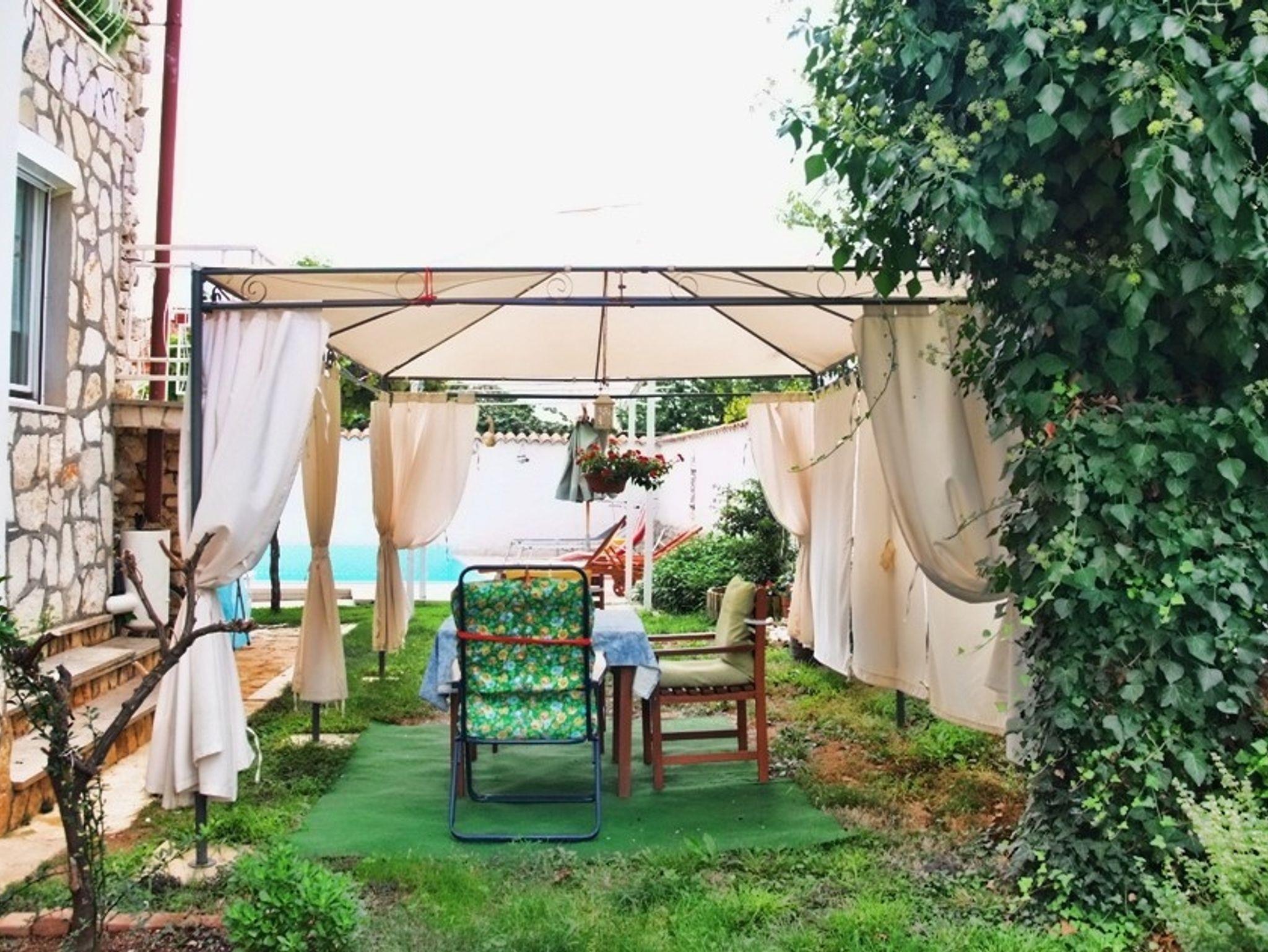 Hof (200m2, Kinderbereich, Sitzbereich), Parkplatz (Anzahl der Parkplätze: 4, Entfernung vom Objekt: im Hof), Pool: gemeinsam, Dimensionen: 9m x 3.5m x 1.5m, Wassertyp: Süßwasser, Grill: gemeinsam, WiFi Internet, Wäschewaschen, Fahrrad (Anzahl: 2), Föhn, Bügeleisen, Bügelbrett, Kinderbett