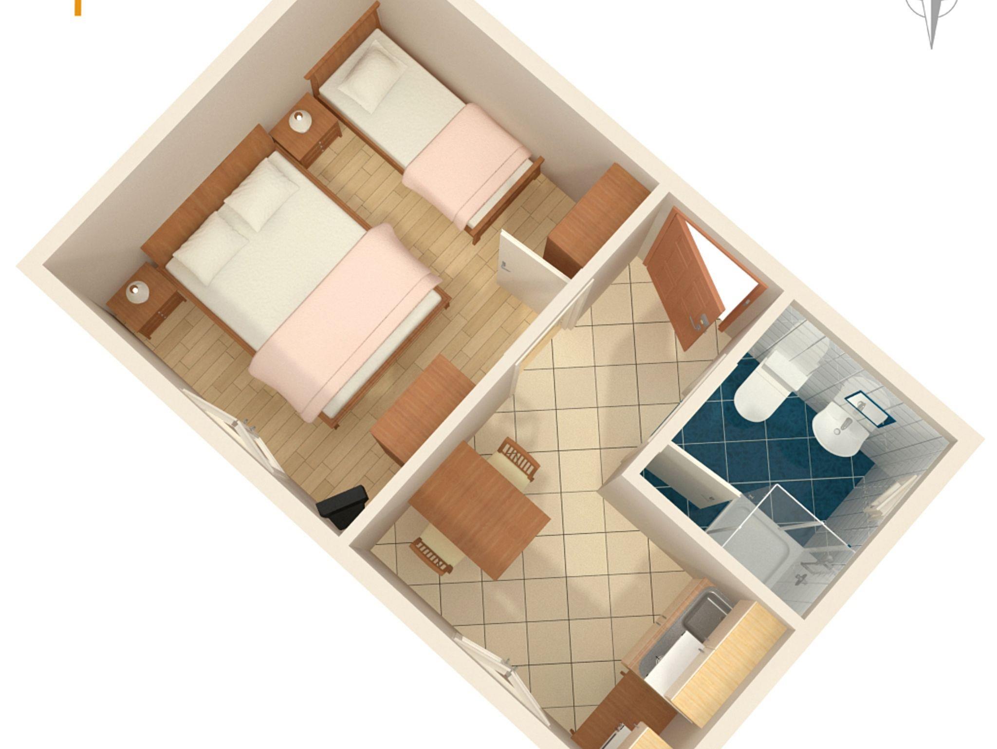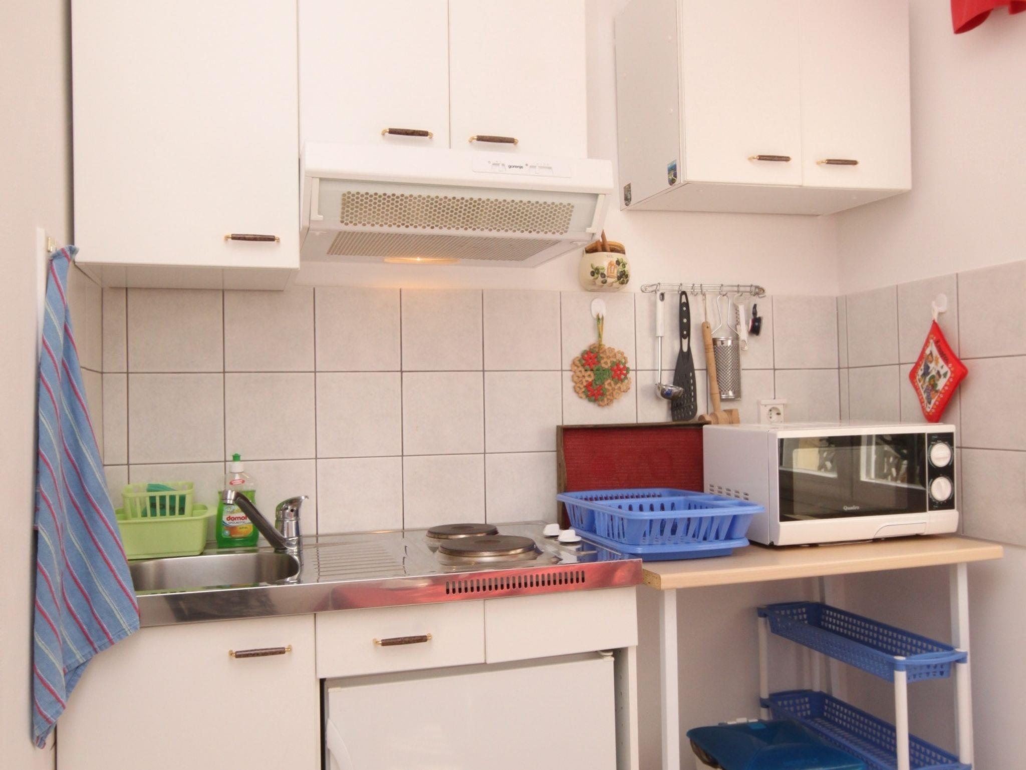 Ferienwohnung bietet Platz für 2 Gäste. Die Betten sind in Schlafzimmern, die es 1 gibt, innerhalb einer Gesamtfläche von 22m2, angeordnet. Die Gäste haben eine eigene Terrasse zur Verfügung, auf der sie in warmen Sommernächten genießen können. Es ist erlaubt, Speisen auf dem Gemeinschafts-Grill vorzubereiten. Während ihres Aufenthalts können Gäste das gemeinsam zur Nutzung stehende Schwimmbad benutzen. Unterkunftseinheit hat Räume, die von dem Rest der Einheit abgetrennt werden. In der gebuchten Unterkunftseinheit zahlt man am Ort ein Depositum ( der Preis ist an der Internetseite angeführt ). IM PREIS INBEGRIFFEN: Kurtaxe, Endreinigung, Klimatisierung, Pool, Parkplatz, Internet, Fahrrad, Kinderbett, Bügeleisen, Bügelbrett, Föhn. VERBINDLICHE ZUSÄTZLICHE KOSTEN: Kaution (100,00 € Einmalzahlung), Aufzahlung für Kurzaufenthalte (prozentualer Zuschlag pro Nächtigungsanzahl: 30% - 1, 20% - 2, 10% - 3). UNVERBINDLICHE ZUSÄTZLICHE KOSTEN: Wäschewaschen (4,00 € Waschen). Die Verfügbarkeit zusätzlicher Dienstleistungen in Ihrem reservierten Termin und die Preise derselben (falls nicht aufgeführt) müssen im Voraus überprüft werden. Zusätzliche Dienstleistungen die in der Zahlungsaufforderung nicht aufgeführt sind werden direkt beim Vermieter bezahlt, angenommen der Gast nutzt auch diese.