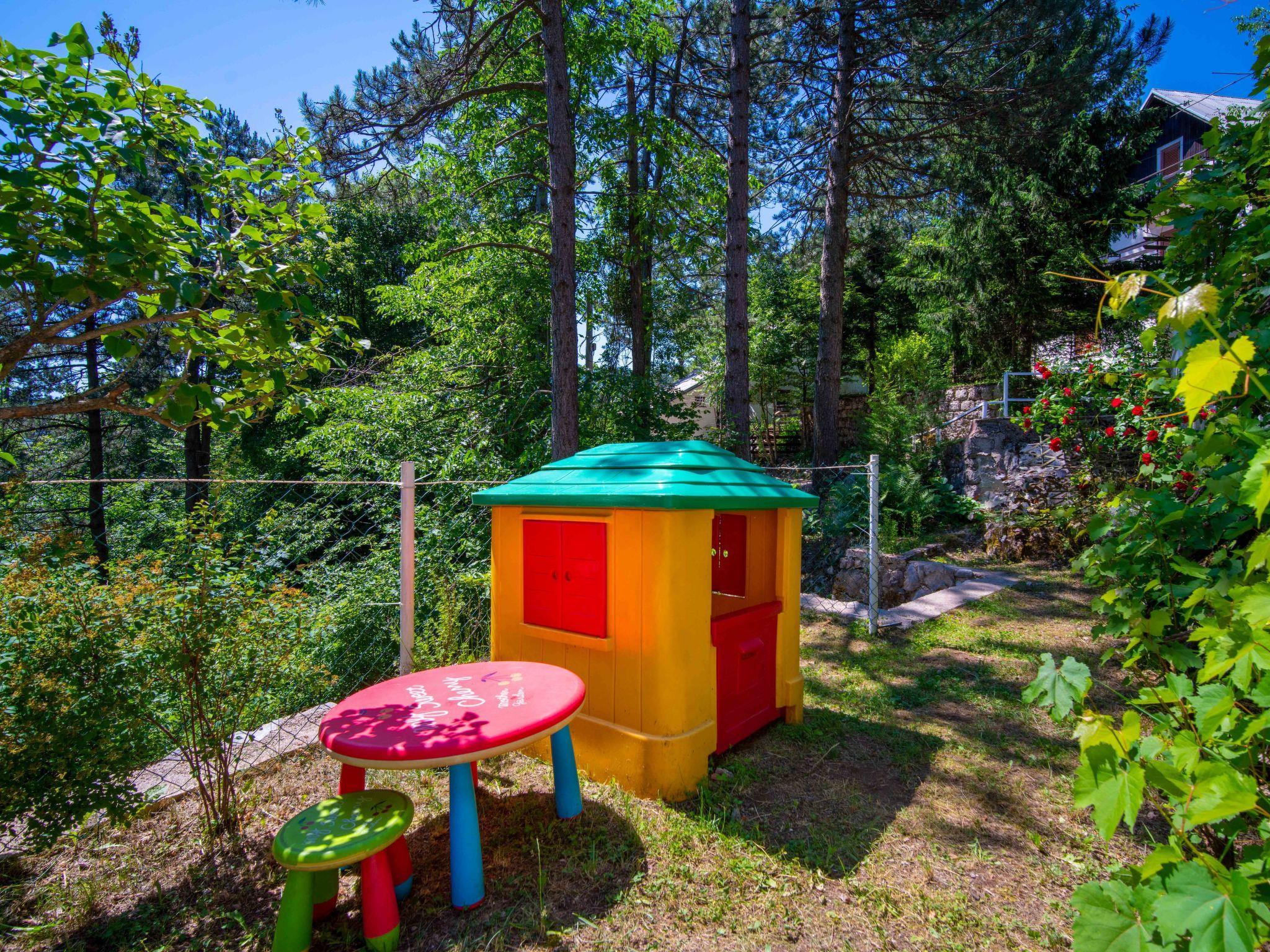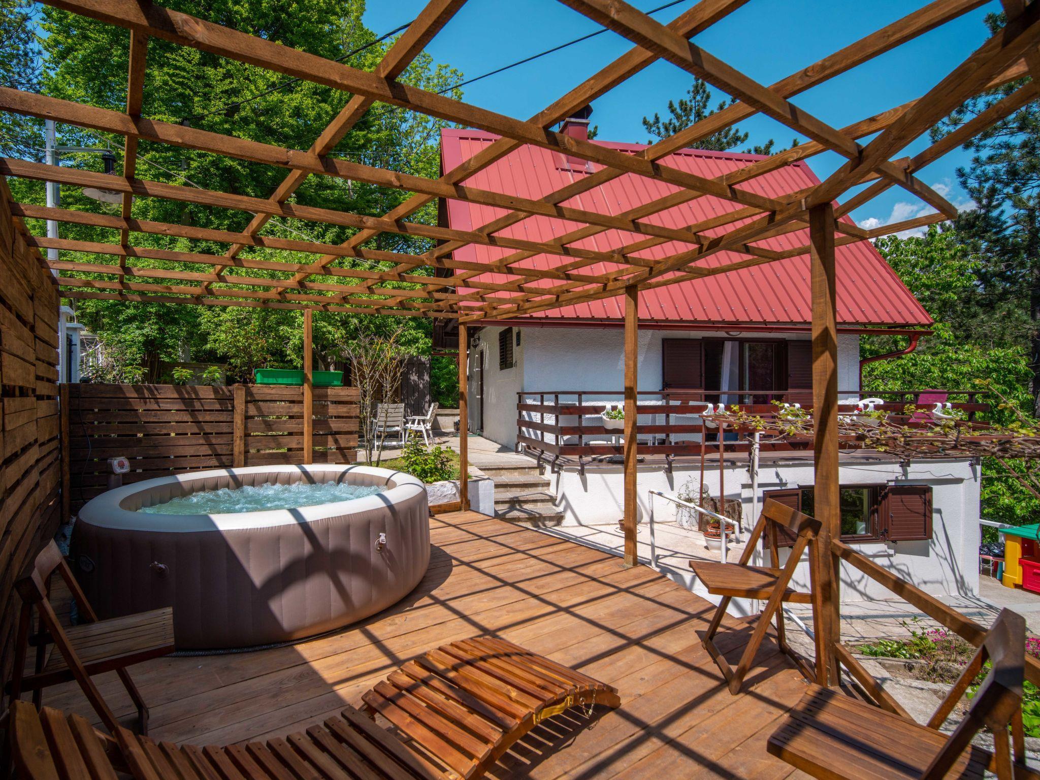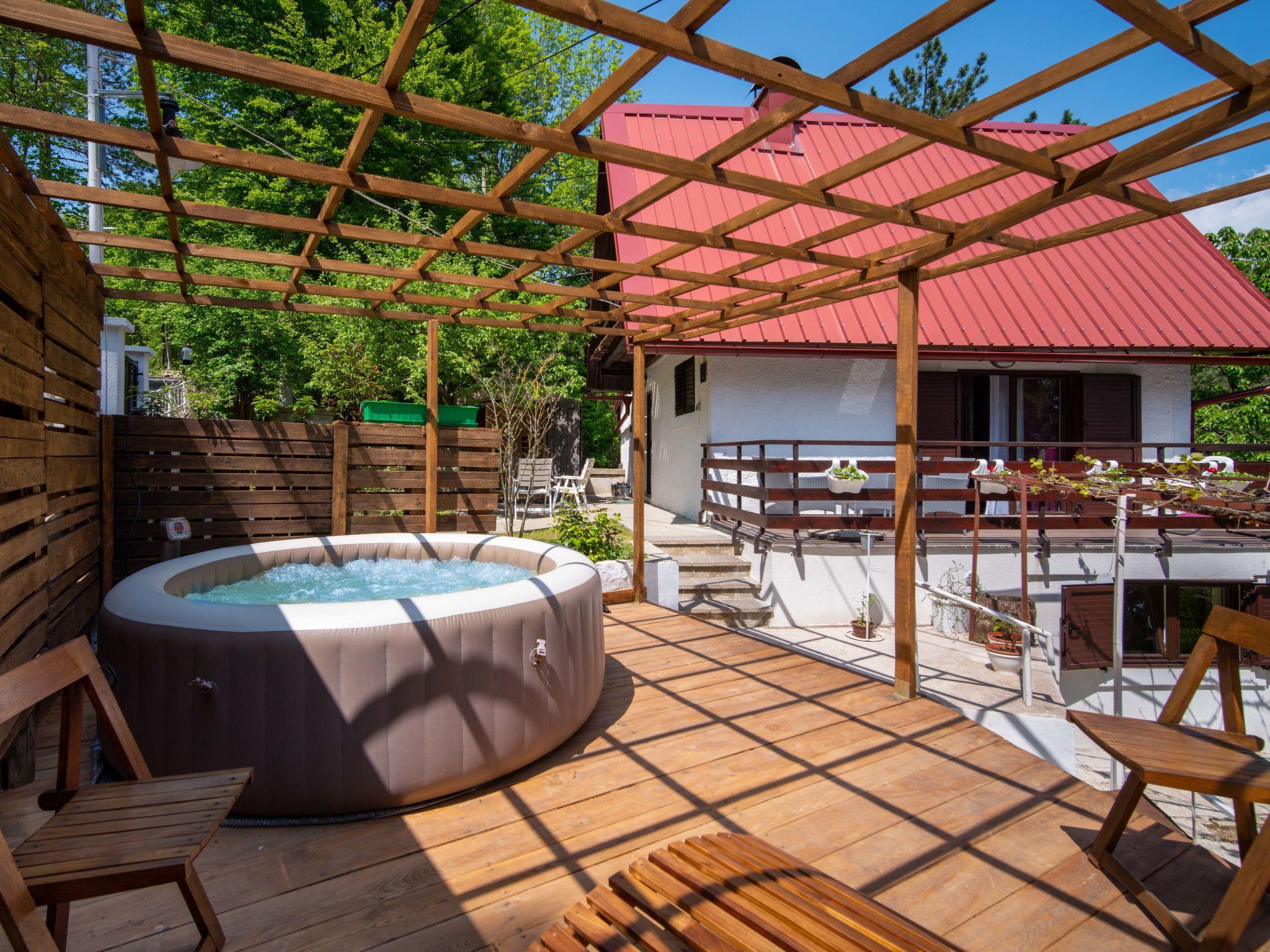 Lic 4 km from Fužine: Chalet "Nina", 3 storeys. 550 m from the centre of Lic, in a quiet, elevated position, 27 km from the sea, 3 km from the lake, in the countryside. Private: property 420 m2, wildlife garden and trees. Hot tub, barbecue. In the house: internet access, infrared sauna, central heating system. Parking (for 2 cars) at the house on the premises. Shop 550 m, restaurant 4.2 km, bus stop 4 km, railway station 4 km, pebble beach 27 km, concrete beach 27 km. Walking paths from the house, cycle lane 300 m, ice rink 17 km. Nearby attractions: špilja Vrelo 6 km. Well-known lakes can easily be reached: Bajer 3 km.