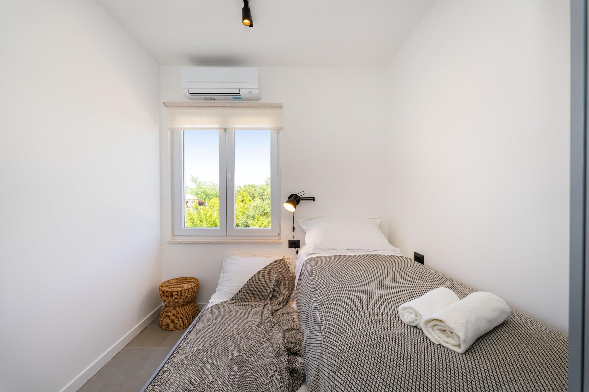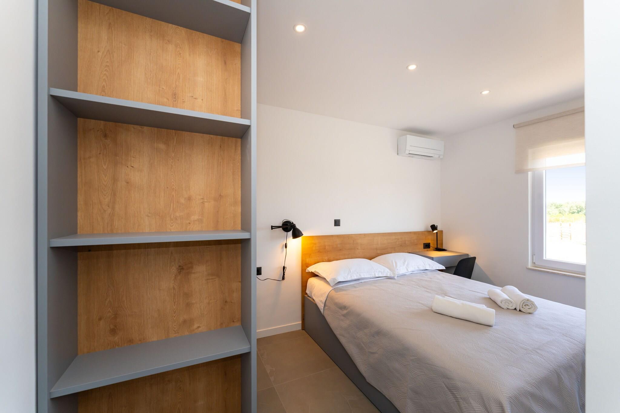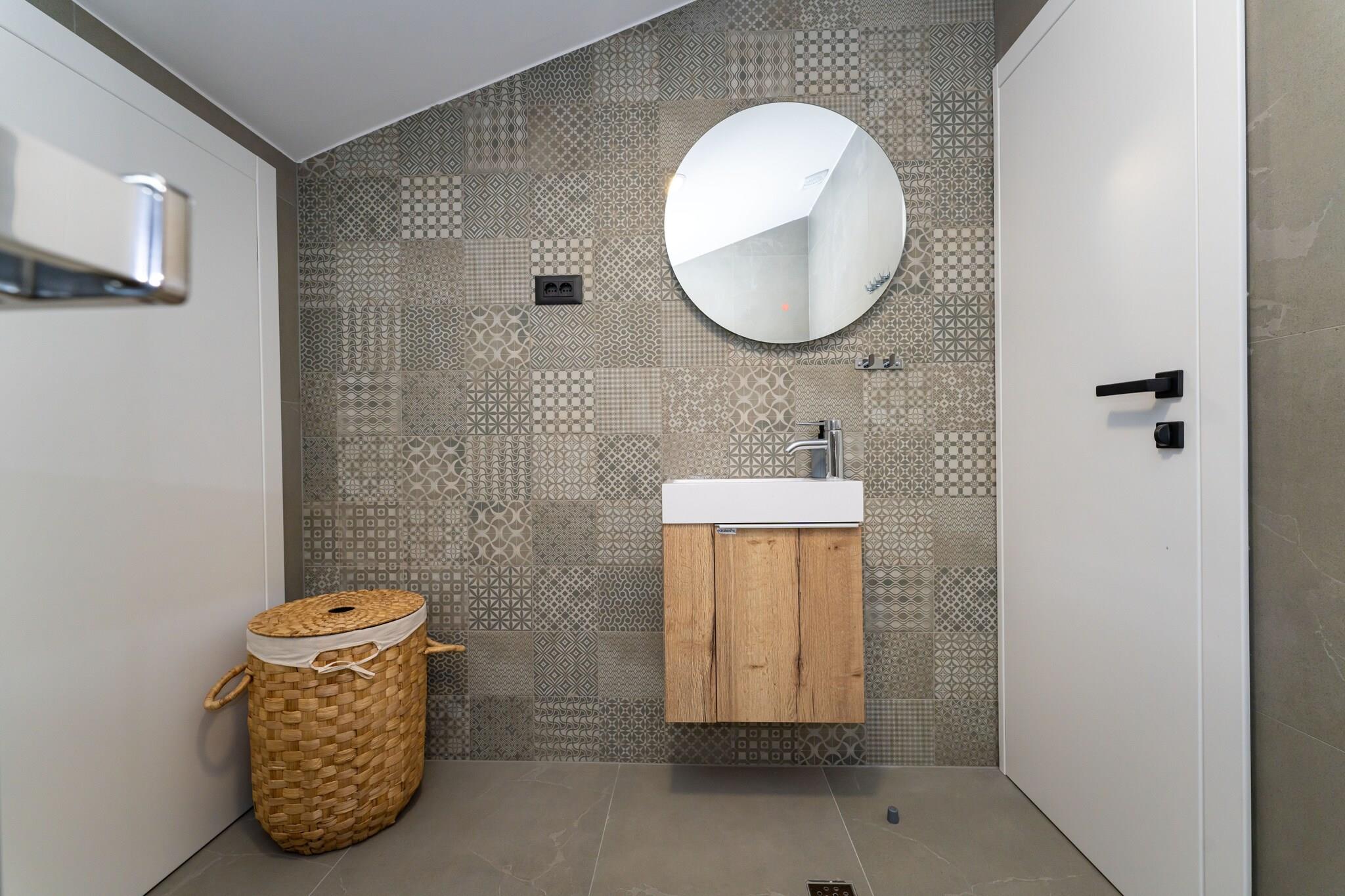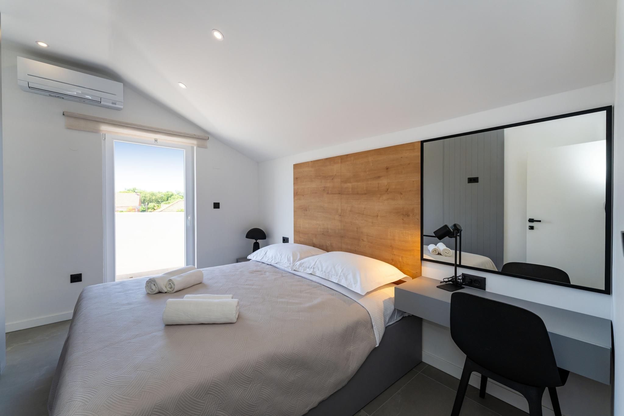 Denne elegante feriebolig i Galovac tilbyder en fredelig ferie tæt på Adriaterhavets kyst. Den rummelige ejendom er designet med komfort og privatliv for øje og kan rumme op til 10 personer. Den har en moderne, åben planløsning på to etager. De vigtigste attraktioner er en opvarmet pool, en afslappende sauna og en charmerende stenkælder, der er perfekt til sammenkomster med familie og venner. Indvendigt, på et areal på 280 m², findes der fem klimatiserede soveværelser med badeværelser, et fuldt udstyret køkken og en stilfuld stue med spiseplads og direkte adgang til haven. Gæsterne kan benytte sig af en lang række udendørs faciliteter, såsom bordtennis, dart, bordfodbold, cykler og en legeplads for børn omgivet af oliventræer. Villaens store terrasse med liggestole og parasoller er det perfekte sted at nyde solrige dage og afslappende aftener ved poolen. Villen ligger kun 7 km fra den nærmeste strand og tilbyder nem adgang til restauranter og caféer ved havet i Sukosan på kun 10 minutter, mens den historiske by Zadar – med romerske ruiner, en livlig havnefront og lokale markeder – ligger kun 20 minutter væk. Med sin kombination af ro, luksus og komfort er denne villa det perfekte udgangspunkt for at udforske Dalmiens naturlige og kulturelle skatte.