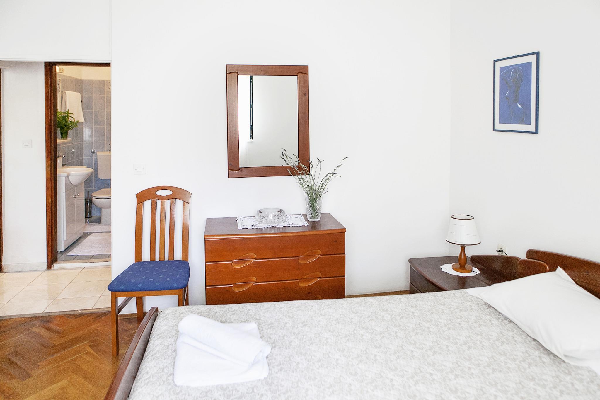 Beliggende i den rolige landsby Gata, er denne maleriske 2-værelses lejlighed perfekt til en afslappende ferie for op til 4 gæster. Uanset om du er en lille familie eller en gruppe venner, vil du finde komfort og enkelhed i dette hyggelige hjem. Lejligheden byder på en fælles, indhegnet have, ideel til at slappe af efter en dag med udforskning. En lokal købmand ligger kun 300 m væk, mens den nærmeste restaurant ligger 2 km, hvis du vil nyde det lokale dalmatiske køkken. Hvis du har lyst til en dag ved havet, ligger stranden kun 6 km fra lejligheden. Efter dine udflugter kan du slappe af med en varm drink i haven eller fyre op i den fælles grill for at nyde et afslappet aftensmåltid udendørs. Hjemmet er kæledyrsvenligt (1 kæledyr tilladt), og parkering på stedet gør dit ophold endnu mere bekvemt. Med Split Lufthavn kun 38 km væk, er det nemt at nå dette fredelige sted.