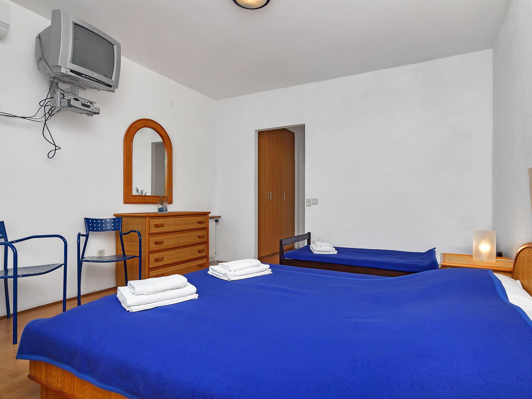 Zimmer bietet Platz für 3 Gäste. Die Betten sind in Schlafzimmern, die es 1 gibt, innerhalb einer Gesamtfläche von 15m2, angeordnet. Die Gäste haben einen eigenen Balkon zur Verfügung, auf der sie in warmen Sommernächten genießen können. Das Zimmer bietet Meerblick. In der Unterkunftseinheit besteht die Möglichkeit des Mitbringens von Haustieren gegen Aufpreis. Die reservierte Unterkunftseinheit ist ein Zimmer mit eigenem Badezimmer ohne die Möglichkeit der Nutzung einer Küche. IM PREIS INBEGRIFFEN: Halbpension, Endreinigung, Klimatisierung, Parkplatz, Internet, Kinderbett, Föhn. VERBINDLICHE ZUSÄTZLICHE KOSTEN: Kurtaxe (Erwachsene 0,93 € - 1,80 € Nacht/Person, Kinderermäßigung 12 - 17 Jahre). UNVERBINDLICHE ZUSÄTZLICHE KOSTEN: Boot (65,00 € pro Nacht), Haustiere (13,00 € pro Nacht). Die Verfügbarkeit zusätzlicher Dienstleistungen in Ihrem reservierten Termin und die Preise derselben (falls nicht aufgeführt) müssen im Voraus überprüft werden. Zusätzliche Dienstleistungen die in der Zahlungsaufforderung nicht aufgeführt sind werden direkt beim Vermieter bezahlt, angenommen der Gast nutzt auch diese.