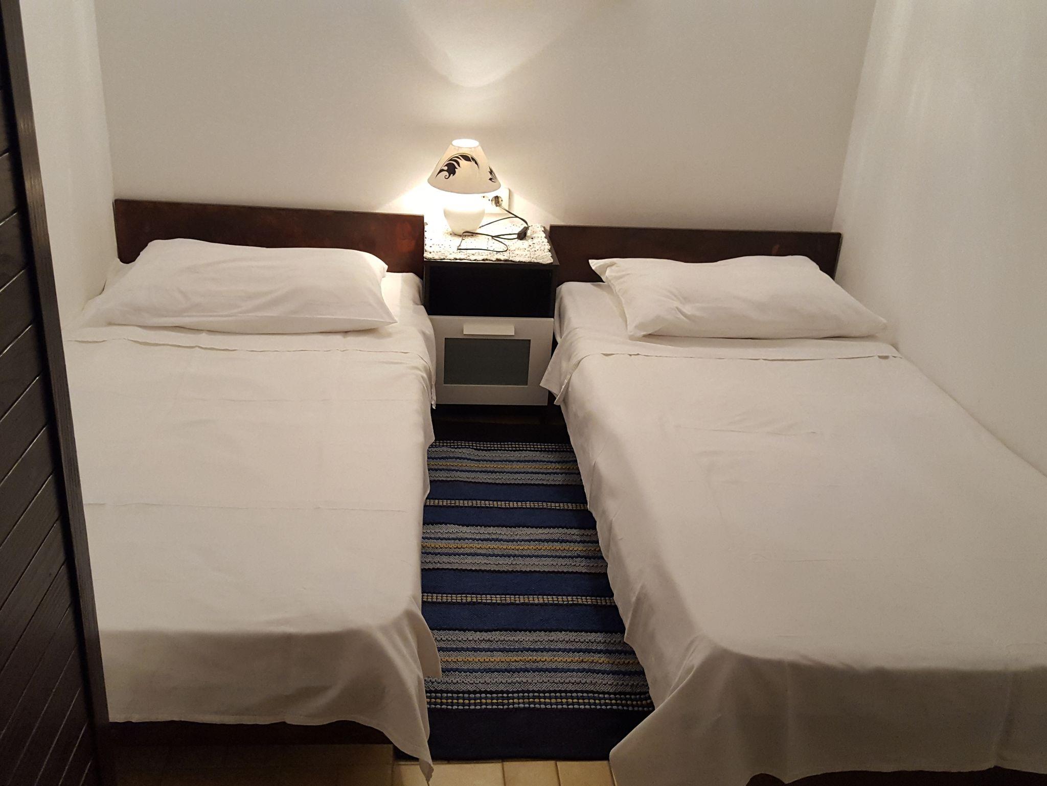 Ferienwohnung bietet Platz für 5 Gäste. Die Betten sind in Schlafzimmern, die es 2 gibt, und in Wohnzimmer, innerhalb einer Gesamtfläche von 34m2, angeordnet. Die Gäste haben eine eigene Terrasse zur Verfügung, auf der sie in warmen Sommernächten genießen können. Das Apartment bietet Meerblick. Es ist erlaubt, Speisen auf dem Gemeinschafts-Grill vorzubereiten. IM PREIS INBEGRIFFEN: Kurtaxe, Endreinigung, Parkplatz, Internet. VERBINDLICHE ZUSÄTZLICHE KOSTEN: Aufzahlung für Kurzaufenthalte (prozentualer Zuschlag pro Nächtigungsanzahl: 30% - 1, 20% - 2, 10% - 3). UNVERBINDLICHE ZUSÄTZLICHE KOSTEN: Klimatisierung (7,00 € pro Nacht). Die Verfügbarkeit zusätzlicher Dienstleistungen in Ihrem reservierten Termin und die Preise derselben (falls nicht aufgeführt) müssen im Voraus überprüft werden. Zusätzliche Dienstleistungen die in der Zahlungsaufforderung nicht aufgeführt sind werden direkt beim Vermieter bezahlt, angenommen der Gast nutzt auch diese.