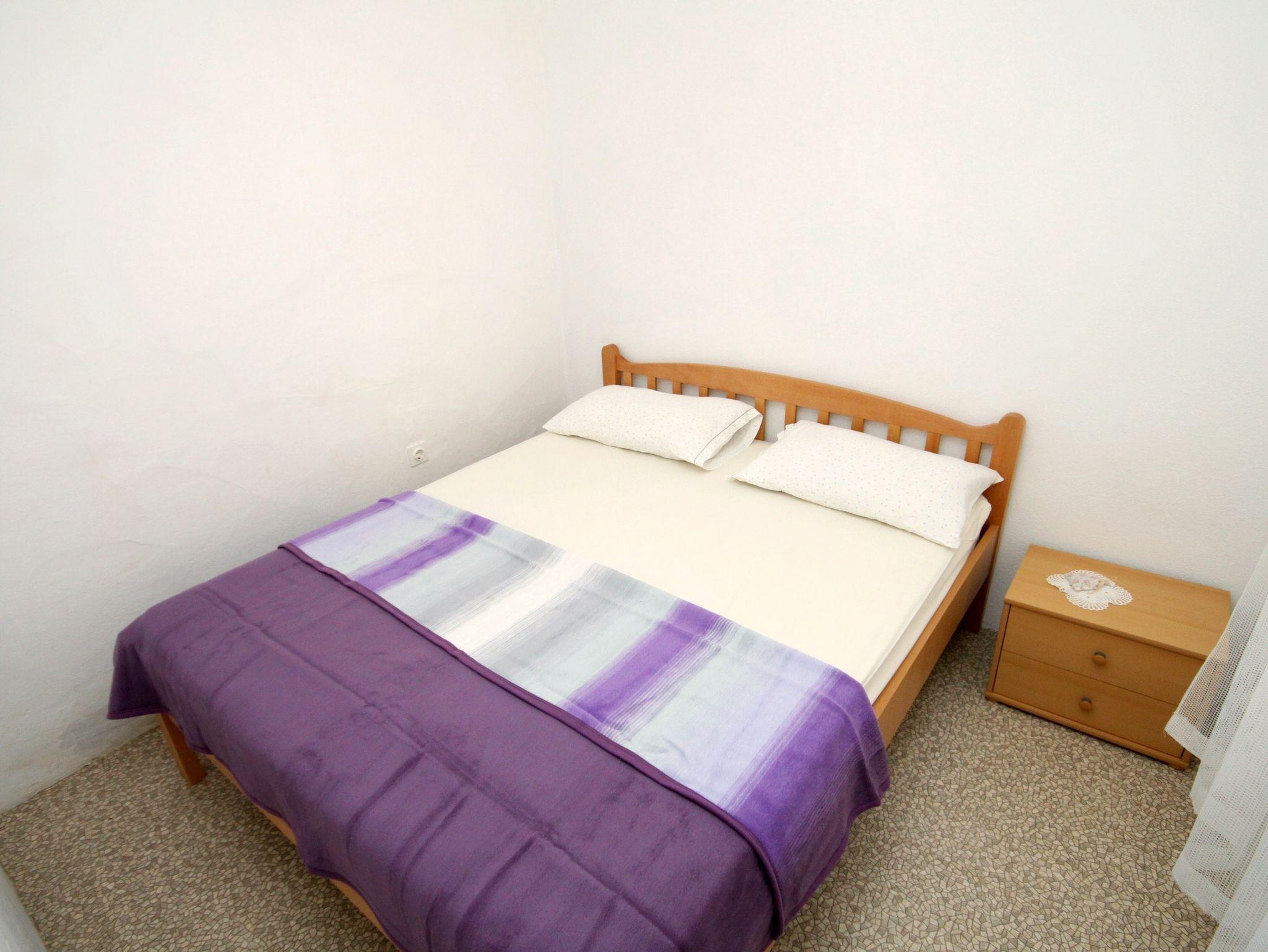 Ferienwohnung bietet Platz für 5 Gäste. Die Betten sind in Schlafzimmern, die es 2 gibt, und in Esszimmer, innerhalb einer Gesamtfläche von 42m2, angeordnet. Die Gäste haben eine eigene Terrasse zur Verfügung, auf der sie in warmen Sommernächten genießen können. Das Apartment bietet Meerblick. Es ist erlaubt, Speisen auf dem Gemeinschafts-Grill vorzubereiten. Räume der gebuchten Unterkunftseinheit werden nicht in eine Ganze verbunden. IM PREIS INBEGRIFFEN: Kurtaxe, Endreinigung, Parkplatz. VERBINDLICHE ZUSÄTZLICHE KOSTEN: Aufzahlung für Kurzaufenthalte (prozentualer Zuschlag pro Nächtigungsanzahl: 30% - 1, 20% - 2, 10% - 3). Die Verfügbarkeit zusätzlicher Dienstleistungen in Ihrem reservierten Termin und die Preise derselben (falls nicht aufgeführt) müssen im Voraus überprüft werden. Zusätzliche Dienstleistungen die in der Zahlungsaufforderung nicht aufgeführt sind werden direkt beim Vermieter bezahlt, angenommen der Gast nutzt auch diese. Ermäßigung auf den Grundpreis: Gratistag 28=25 (bei einem Aufenthalt von 28 oder mehr Tagen erhalten Sie 3 kostenlose Tage für den Aufenthalt bis 31.12.26).