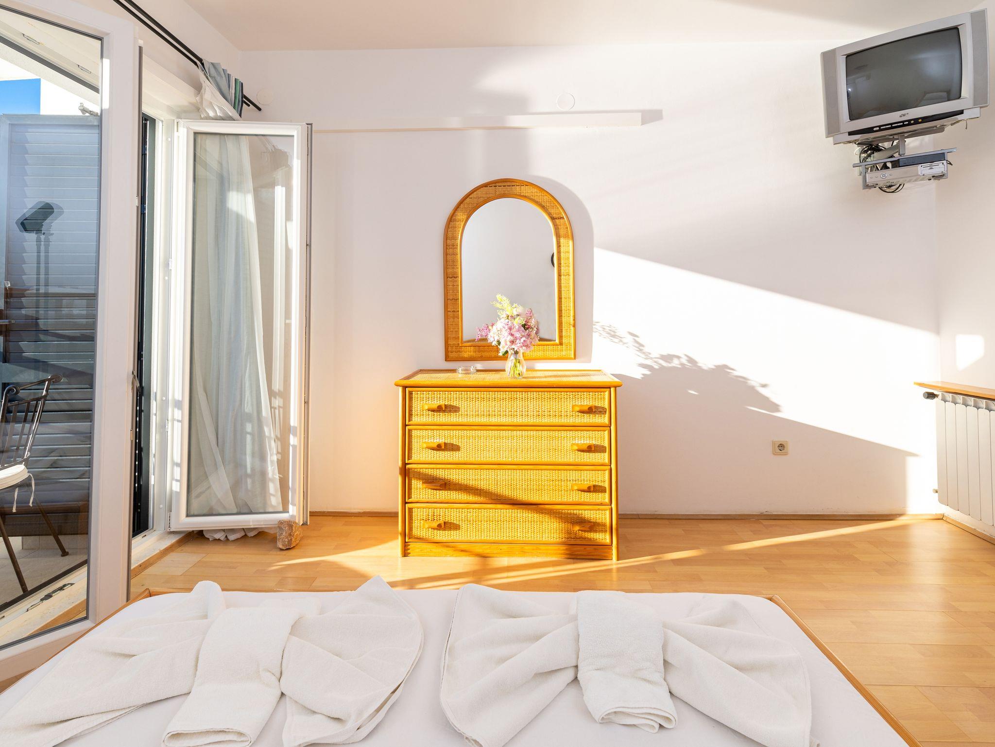Zimmer bietet Platz für 4 Gäste. Die Betten sind in Schlafzimmern, die es 1 gibt, innerhalb einer Gesamtfläche von 17m2, angeordnet. Die Gäste haben einen eigenen Balkon zur Verfügung, auf der sie in warmen Sommernächten genießen können. Das Zimmer bietet Meerblick. In der Unterkunftseinheit besteht die Möglichkeit des Mitbringens von Haustieren gegen Aufpreis. Die reservierte Unterkunftseinheit ist ein Zimmer mit eigenem Badezimmer ohne die Möglichkeit der Nutzung einer Küche. IM PREIS INBEGRIFFEN: Halbpension, Endreinigung, Klimatisierung, Parkplatz, Internet, Kinderbett, Föhn. VERBINDLICHE ZUSÄTZLICHE KOSTEN: Kurtaxe (Erwachsene 0,93 € - 1,80 € Nacht/Person, Kinderermäßigung 12 - 17 Jahre). UNVERBINDLICHE ZUSÄTZLICHE KOSTEN: Boot (65,00 € pro Nacht), Haustiere (13,00 € pro Nacht). Die Verfügbarkeit zusätzlicher Dienstleistungen in Ihrem reservierten Termin und die Preise derselben (falls nicht aufgeführt) müssen im Voraus überprüft werden. Zusätzliche Dienstleistungen die in der Zahlungsaufforderung nicht aufgeführt sind werden direkt beim Vermieter bezahlt, angenommen der Gast nutzt auch diese.