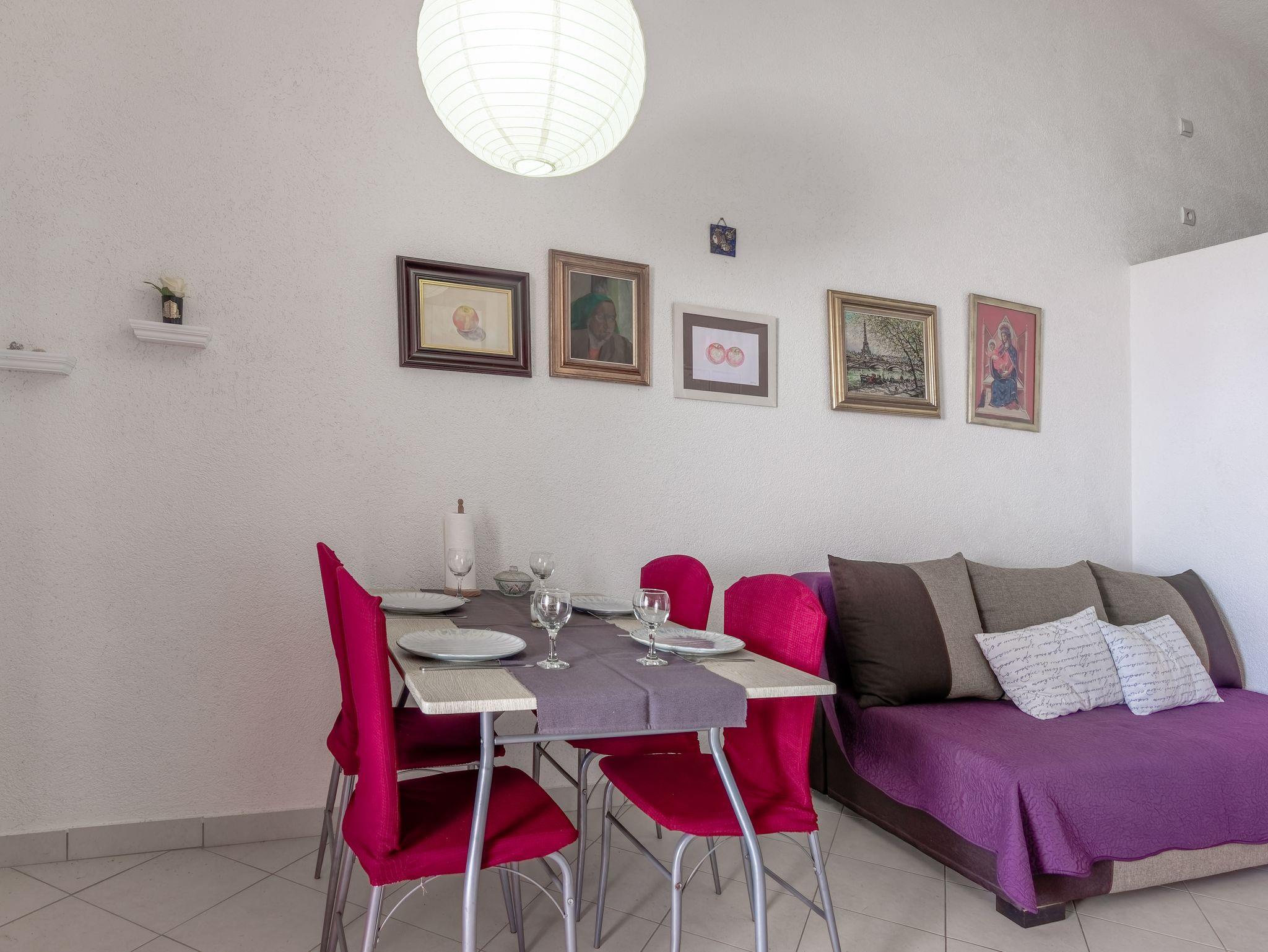Ferienwohnung bietet Platz für 4 Gäste. Die Betten sind in Schlafzimmern, die es 1 gibt, und in Esszimmer, innerhalb einer Gesamtfläche von 41m2, angeordnet. Die Gäste haben eine eigene Terrasse zur Verfügung, auf der sie in warmen Sommernächten genießen können. Das Apartment bietet Meerblick. Es ist erlaubt, Speisen auf dem Gemeinschafts-Grill vorzubereiten. In der Unterkunftseinheit besteht die Möglichkeit des Mitbringens von Haustieren, und die Dienstleistung ist im Preis der Unterkunft enthalten. IM PREIS INBEGRIFFEN: Kurtaxe, Endreinigung, Parkplatz, Internet, Bootsanlegeplatz, Haustiere, Kinderbett, Föhn. Die Verfügbarkeit zusätzlicher Dienstleistungen in Ihrem reservierten Termin und die Preise derselben (falls nicht aufgeführt) müssen im Voraus überprüft werden. Zusätzliche Dienstleistungen die in der Zahlungsaufforderung nicht aufgeführt sind werden direkt beim Vermieter bezahlt, angenommen der Gast nutzt auch diese.