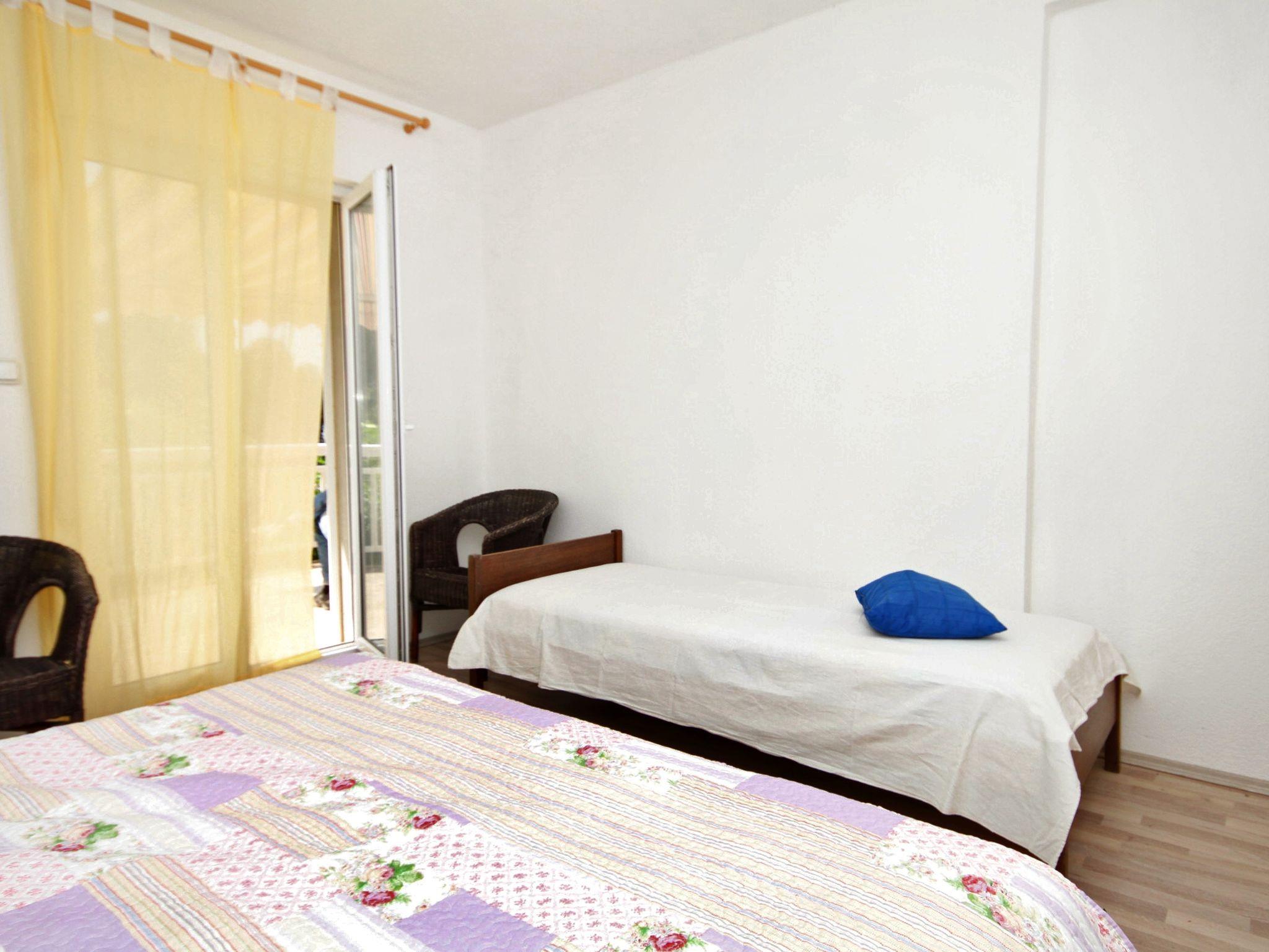 Ferienwohnung bietet Platz für 5 Gäste. Die Betten sind in Schlafzimmern, die es 2 gibt, und in Wohnzimmer, innerhalb einer Gesamtfläche von 57m2, angeordnet. Die Gäste haben eine eigene Terrasse zur Verfügung, auf der sie in warmen Sommernächten genießen können. Das Apartment bietet Meerblick. Es ist erlaubt, Speisen auf dem Gemeinschafts-Grill vorzubereiten. IM PREIS INBEGRIFFEN: Kurtaxe, Endreinigung, Parkplatz. VERBINDLICHE ZUSÄTZLICHE KOSTEN: Aufzahlung für Kurzaufenthalte (prozentualer Zuschlag pro Nächtigungsanzahl: 30% - 1, 20% - 2, 10% - 3). UNVERBINDLICHE ZUSÄTZLICHE KOSTEN: Zusatzbett (15,00 € pro Nacht). Die Verfügbarkeit zusätzlicher Dienstleistungen in Ihrem reservierten Termin und die Preise derselben (falls nicht aufgeführt) müssen im Voraus überprüft werden. Zusätzliche Dienstleistungen die in der Zahlungsaufforderung nicht aufgeführt sind werden direkt beim Vermieter bezahlt, angenommen der Gast nutzt auch diese. Ermäßigung auf den Grundpreis: Gratistag 28=25 (bei einem Aufenthalt von 28 oder mehr Tagen erhalten Sie 3 kostenlose Tage für den Aufenthalt bis 31.12.26).