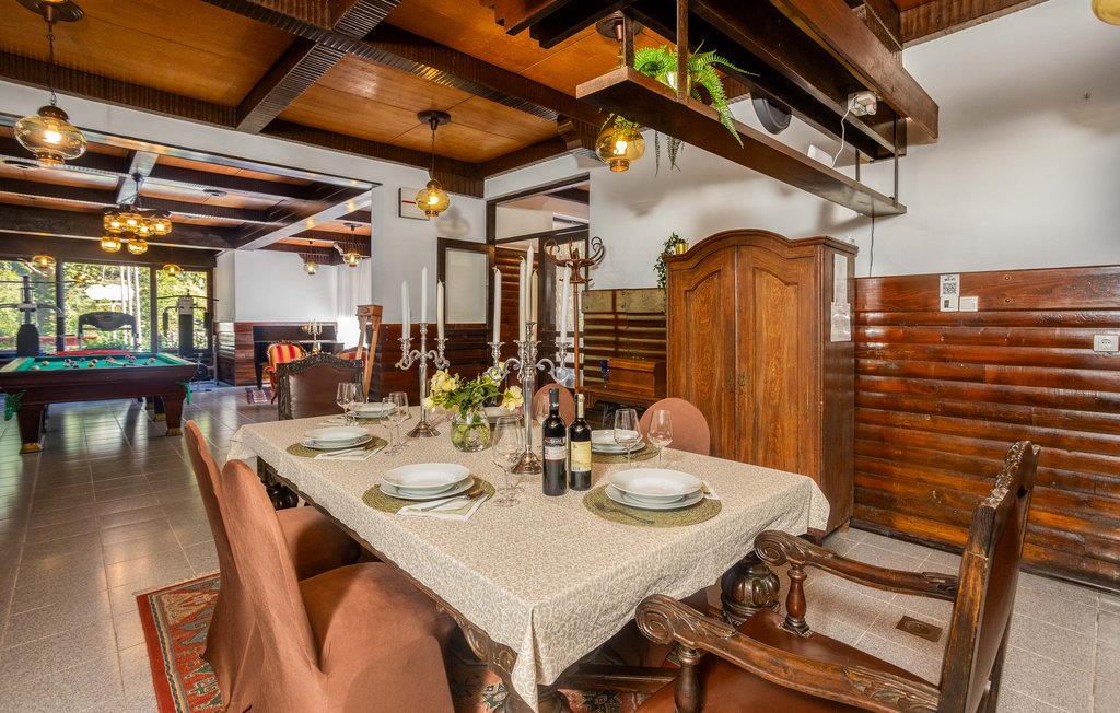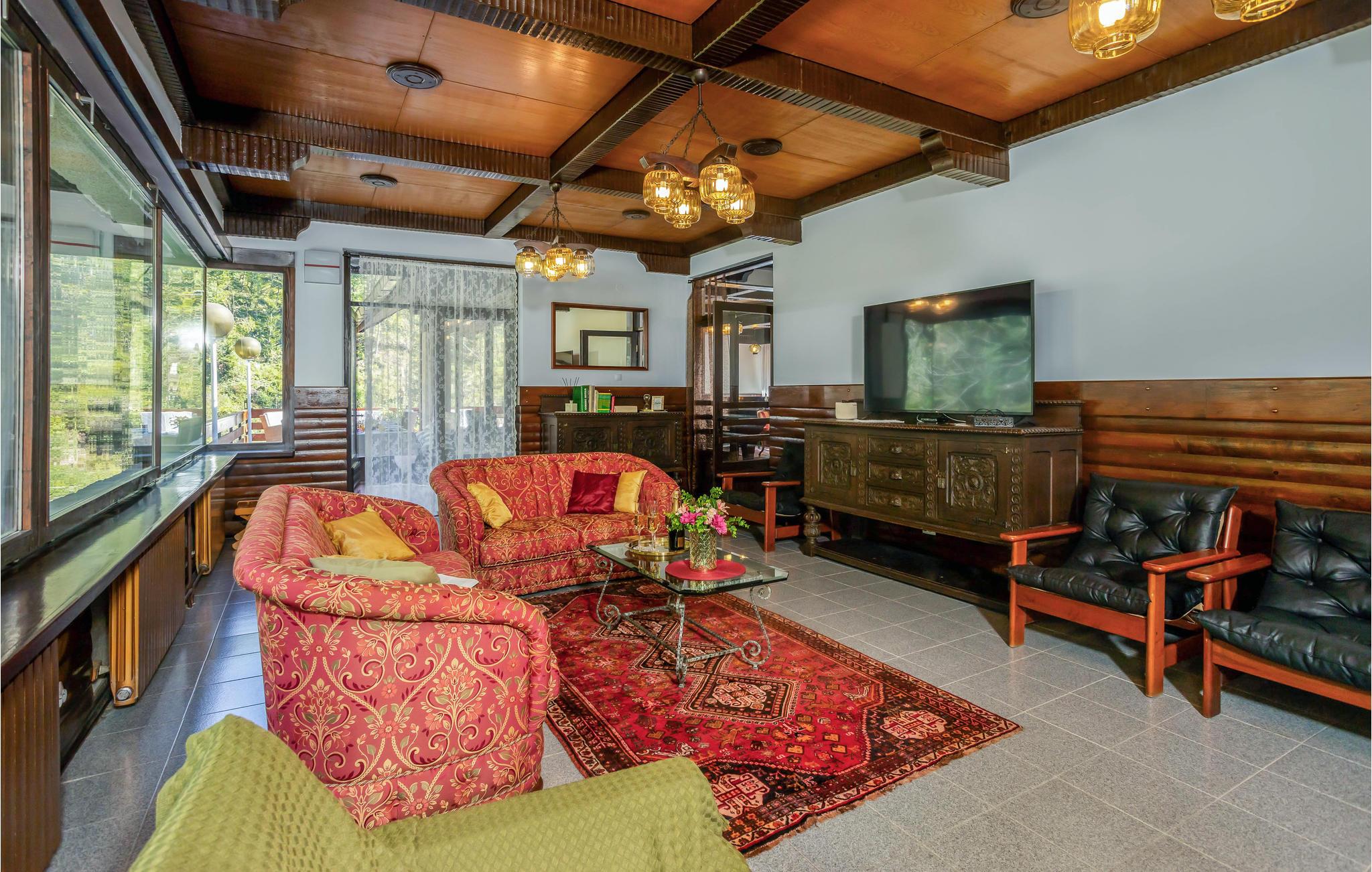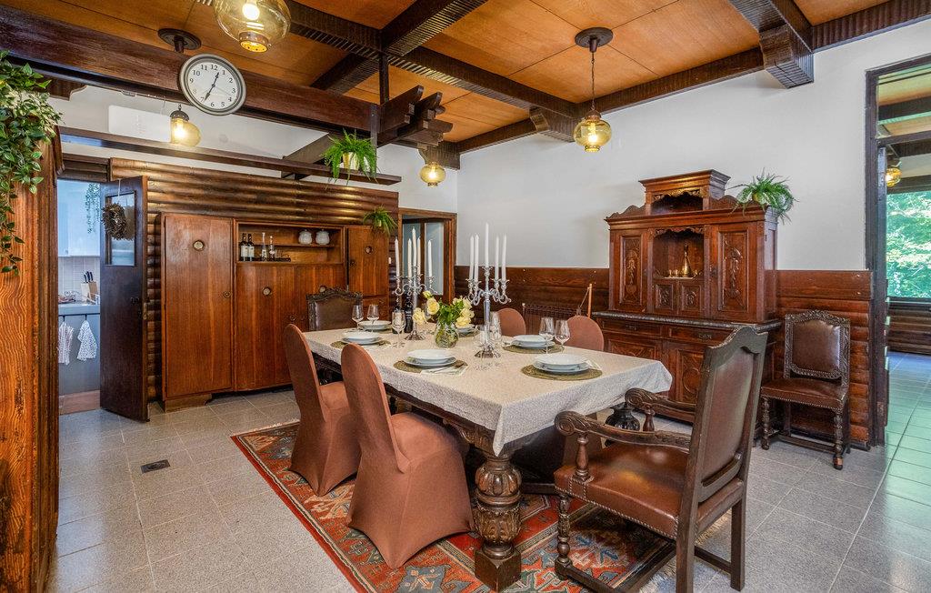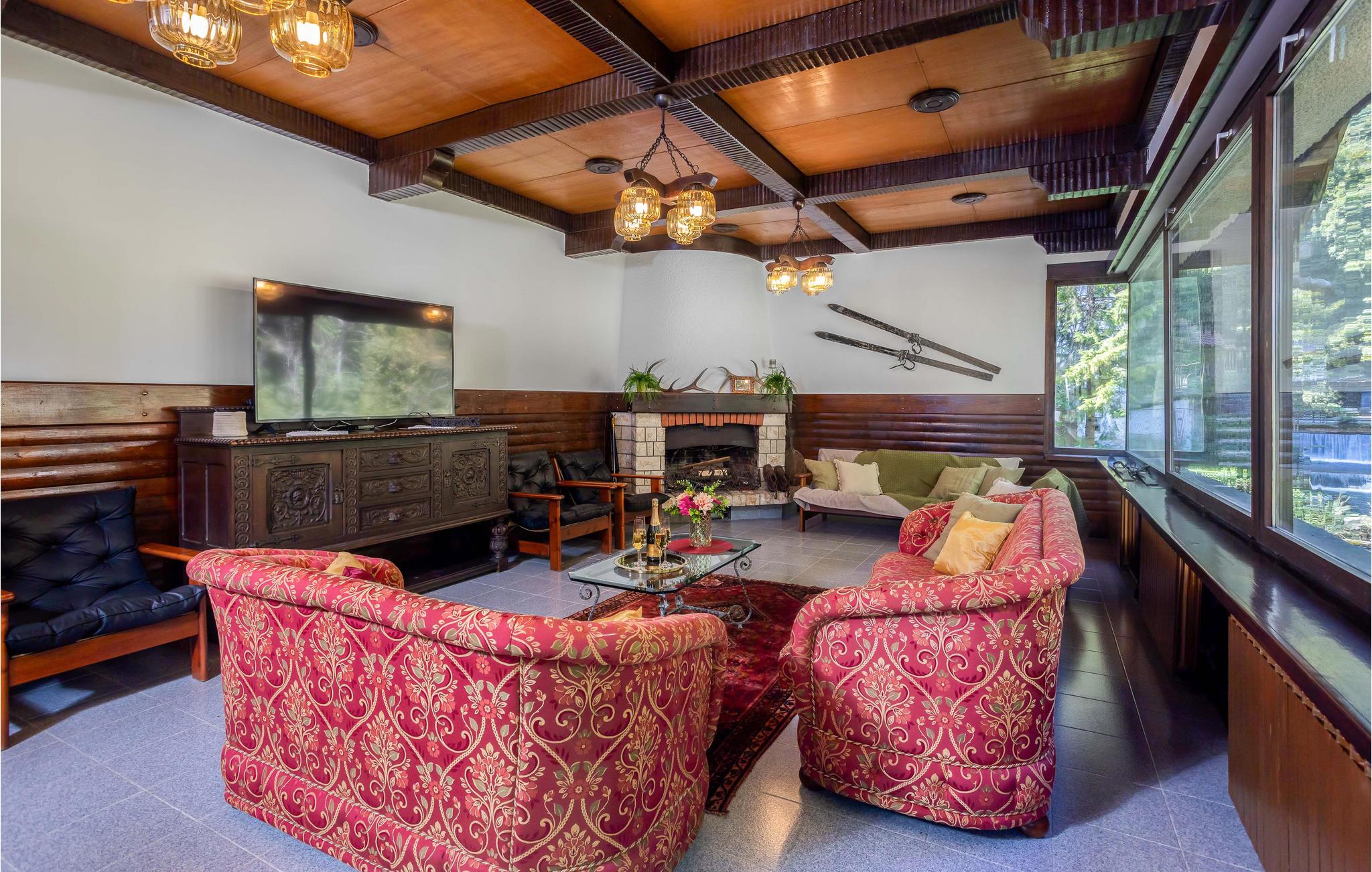 Beliggende på flodbredden i smukke naturomgivelser lover dette særlige feriehus en uforglemmelig ferie, og med sine trælofter, solide træmøbler og mange faciliteter og goder vil alle familiemedlemmer blive begejstrede for dette sted. De store rum er flot badet i naturligt lys gennem de mange store vinduer, som også bringer naturen helt tæt på. Uanset om I vil træne, spille billard eller bare hygge jer i sofaerne, finder I den rette plads til jer og dem, I holder af. I kan også nyde tiden udenfor med solbadning, dejlige familiemåltider, eftermiddagskaffe og aftendrinks, og I kan vælge mellem to terrasser. Lyt til de små, brusende vandfald, som udspringer kun få meter væk.